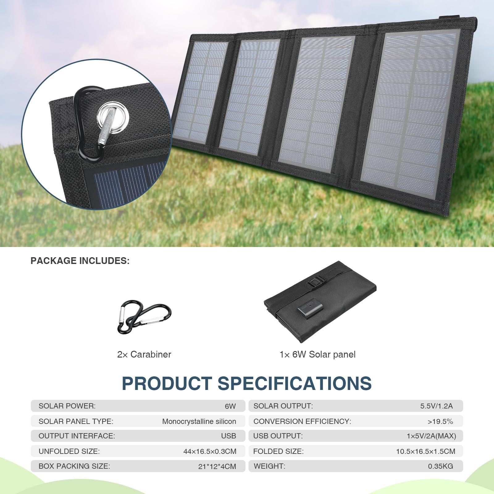 Panel Solar Portátil de Cristal Único Transfronterizo de 6W 60% de descuento Adecuado para Viajes al Aire Libre Bolsa Solar Plegable