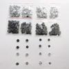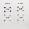 Contenido: 50 juegos de 8,5 mm de plata y negro de cañón, 50 juegos de 10 mm de plata y negro de cañón, un total de 200 juegos
