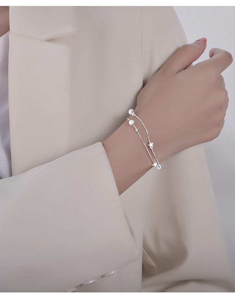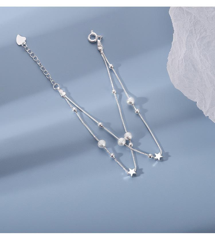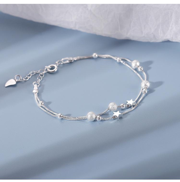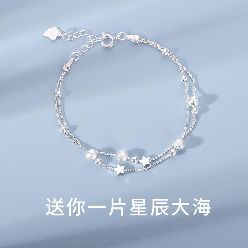 Pulsera Nueva Sansheng III de Doble Capa Mar de Estrellas Estilo Coreano Estudiante Mujer Personalidad Lujo Ligero Plata
