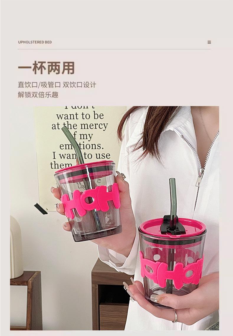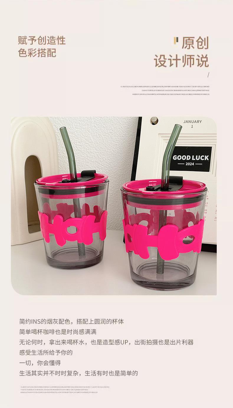 Taza de bambú con forma de letra, vaso de agua portátil para estudiantes, vaso con pajita, creativo, aislado, para café, vaso de vidrio doble para bebidas