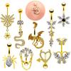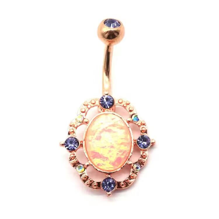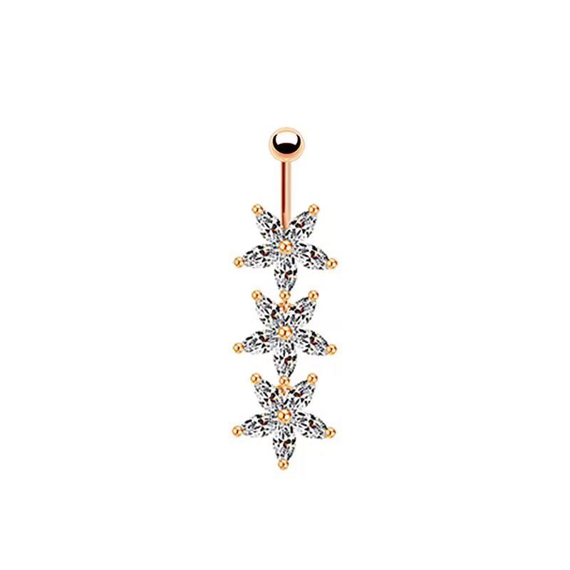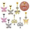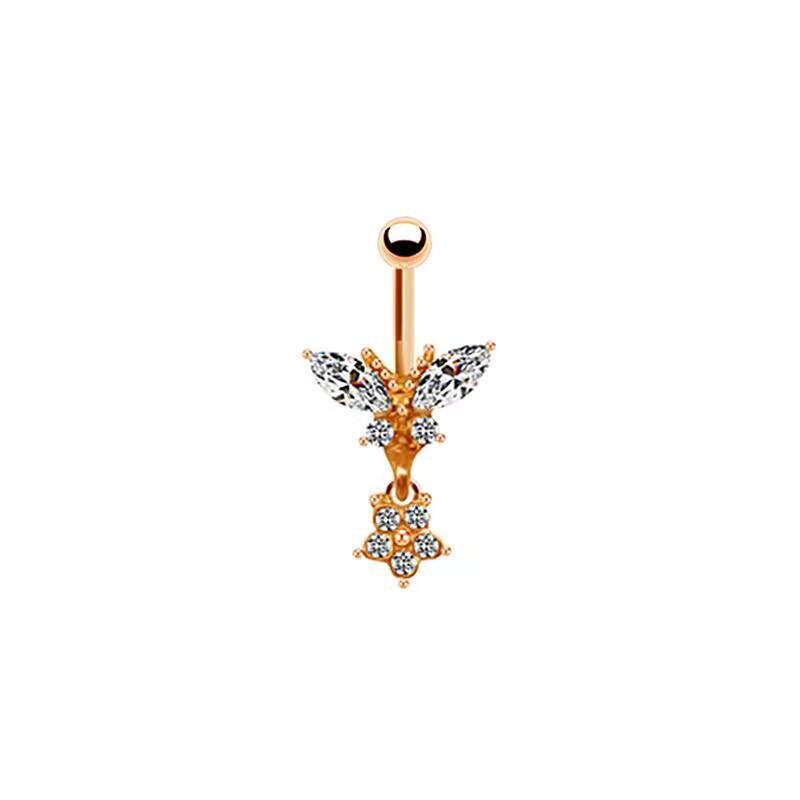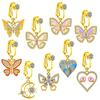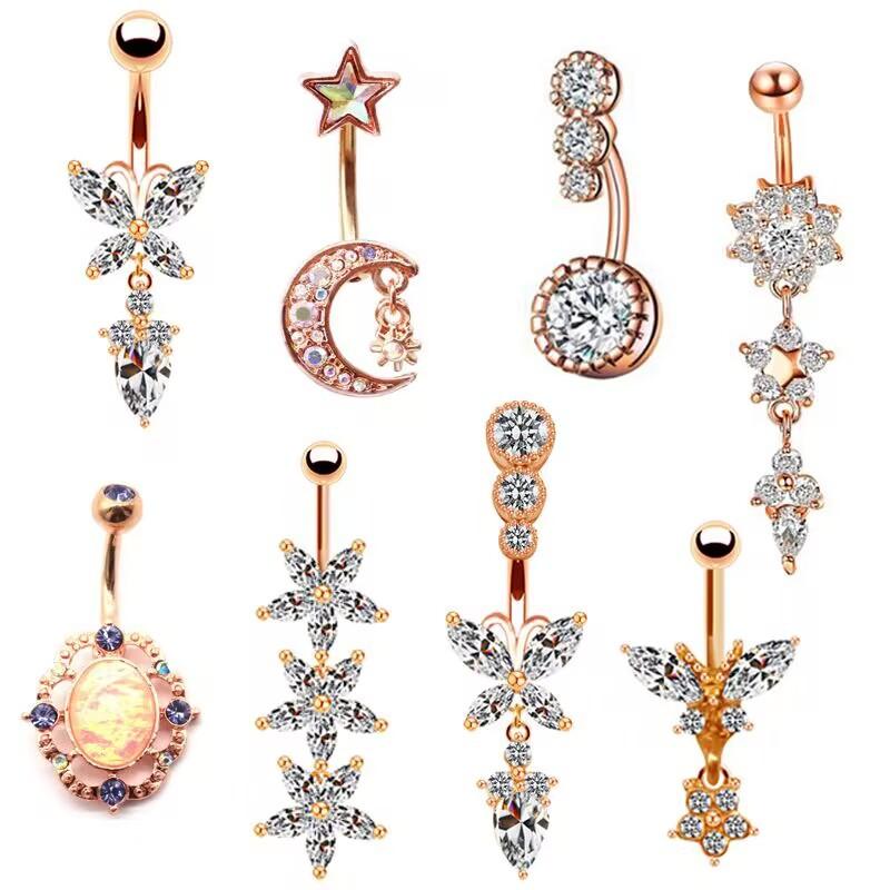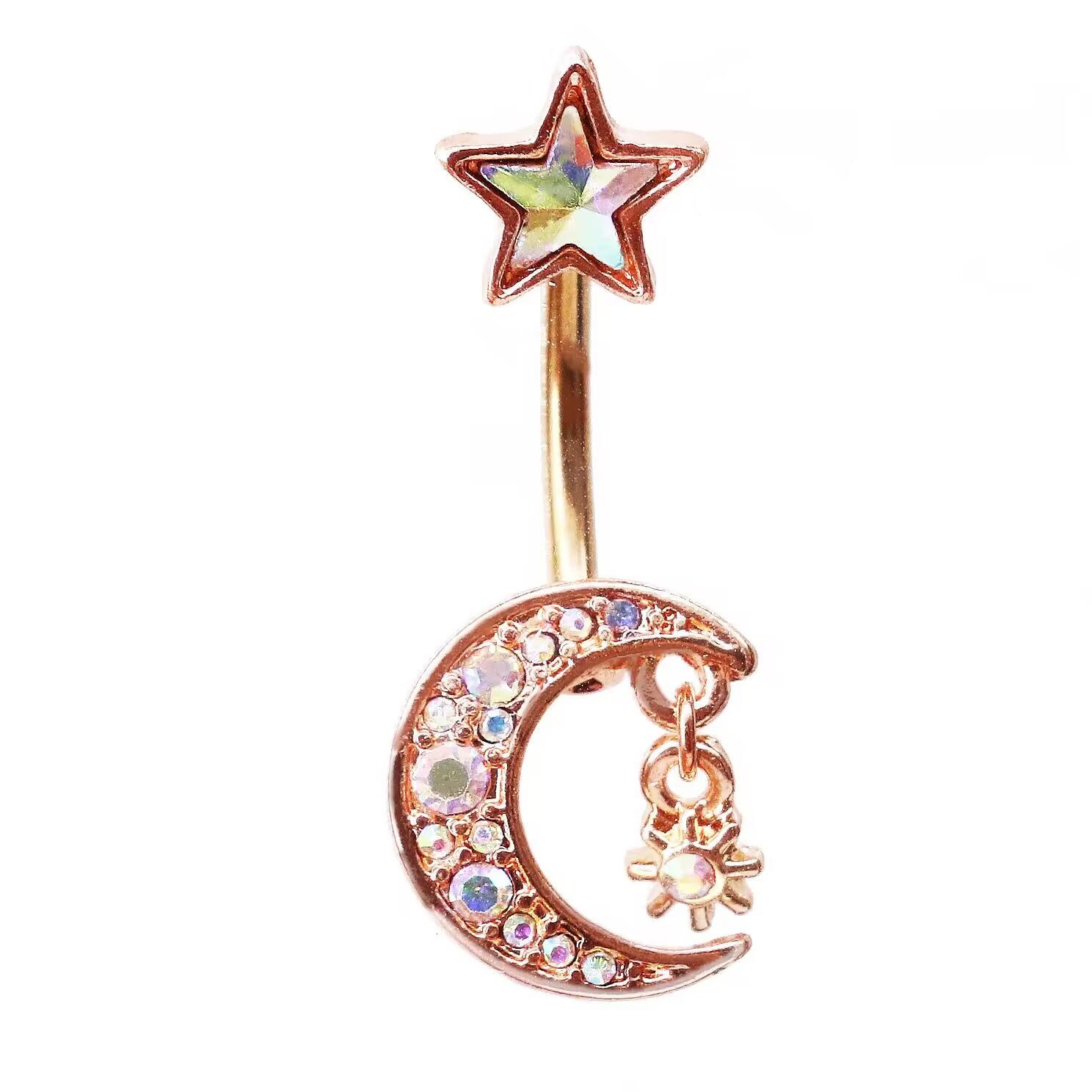 Anillo de ombligo con colgante de mariposa transfronterizo europeo y americano de Gaibei, anillo de ombligo con circonita, adorno de ombligo con estrella de oro rosa y luna, joyería para punción de uñas de ombligo
