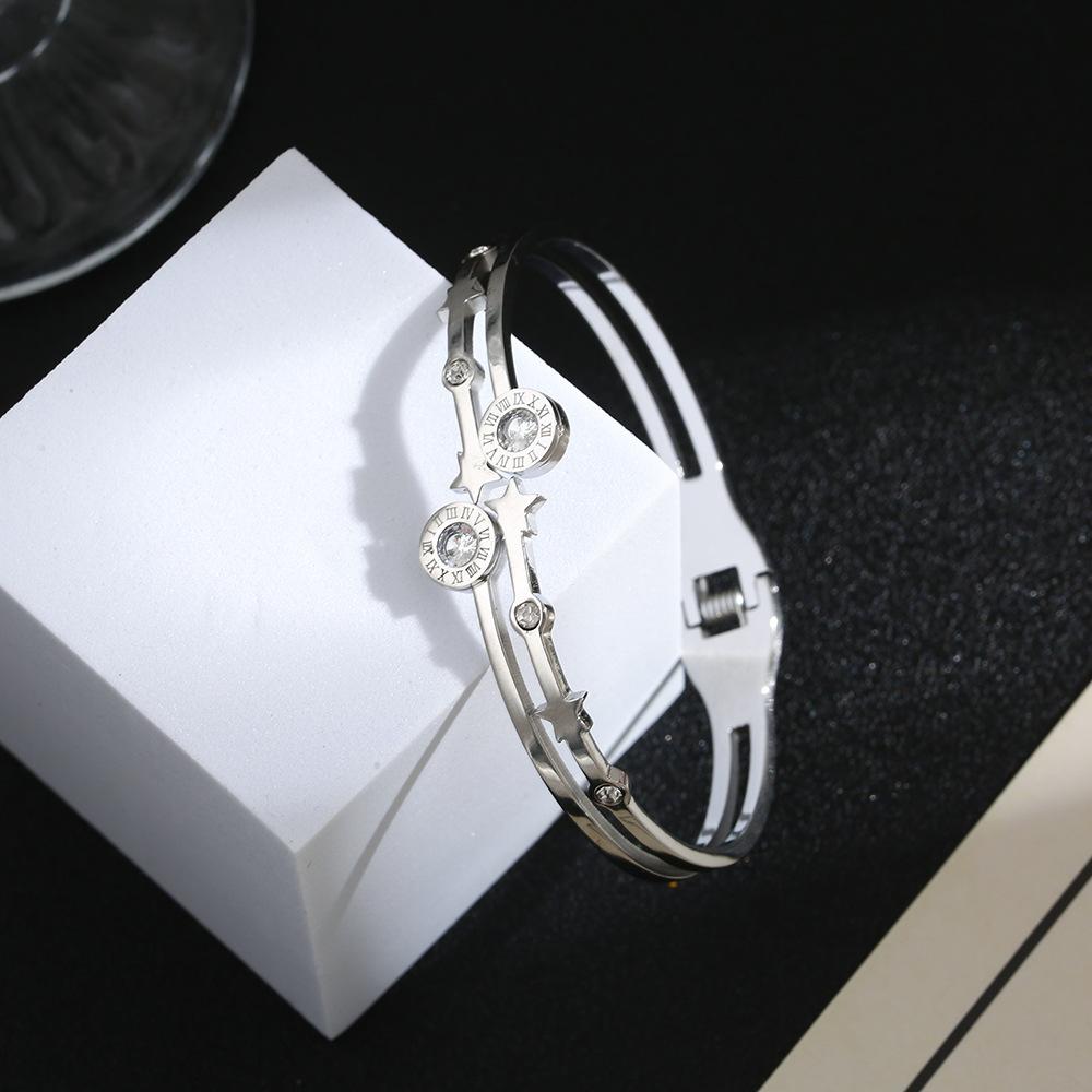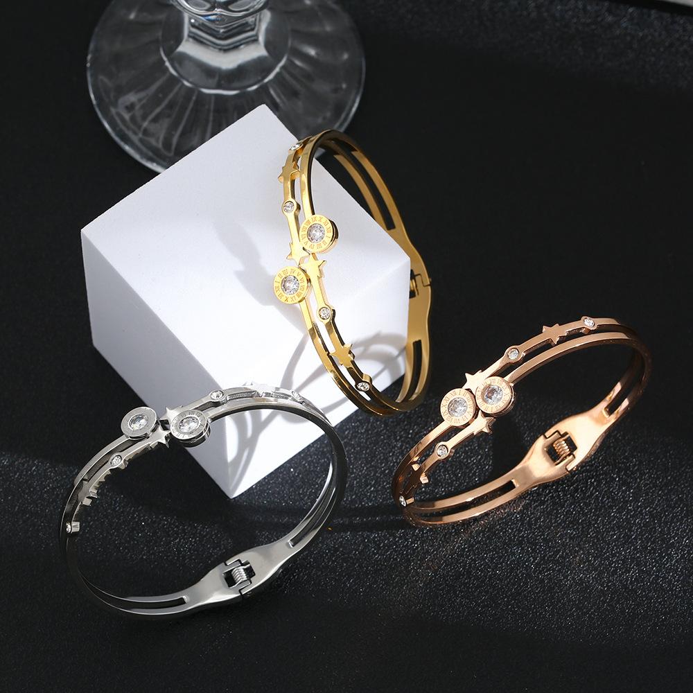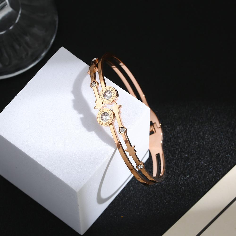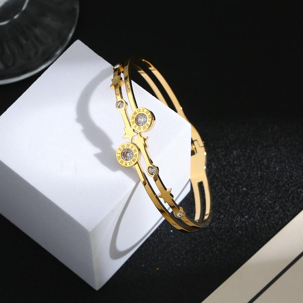 Pulsera de acero de titanio nueva 2023 Roma doble anillo Doble Diamante circonio oro rosa red de moda creativa accesorios de mujer