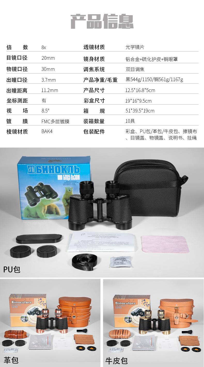 8X30 black binocular (with standard) PU bag, 8X30 fan binocular adjustment (with label) PU bag, 8X30 copper bi...