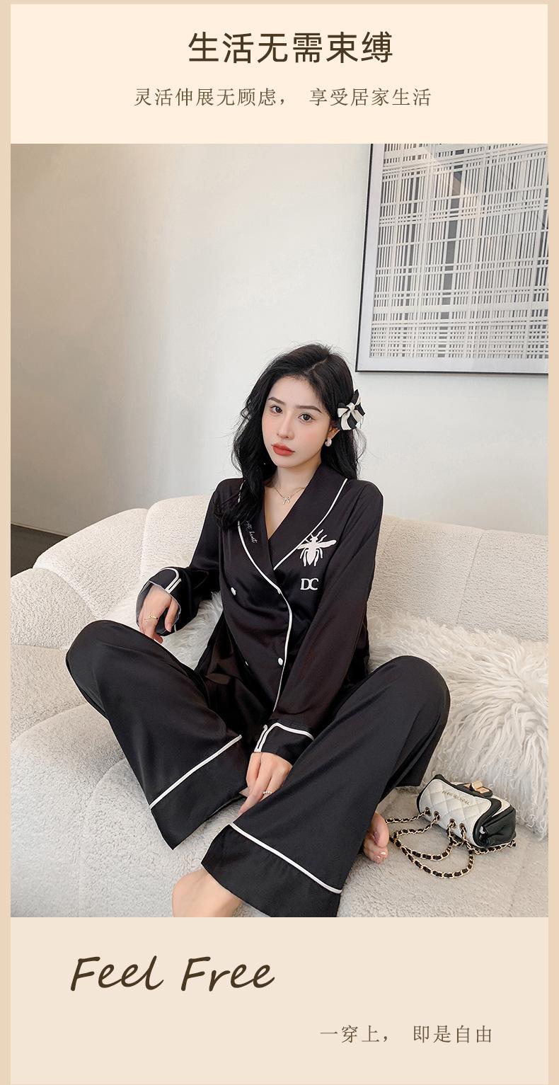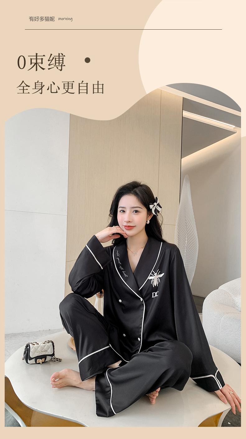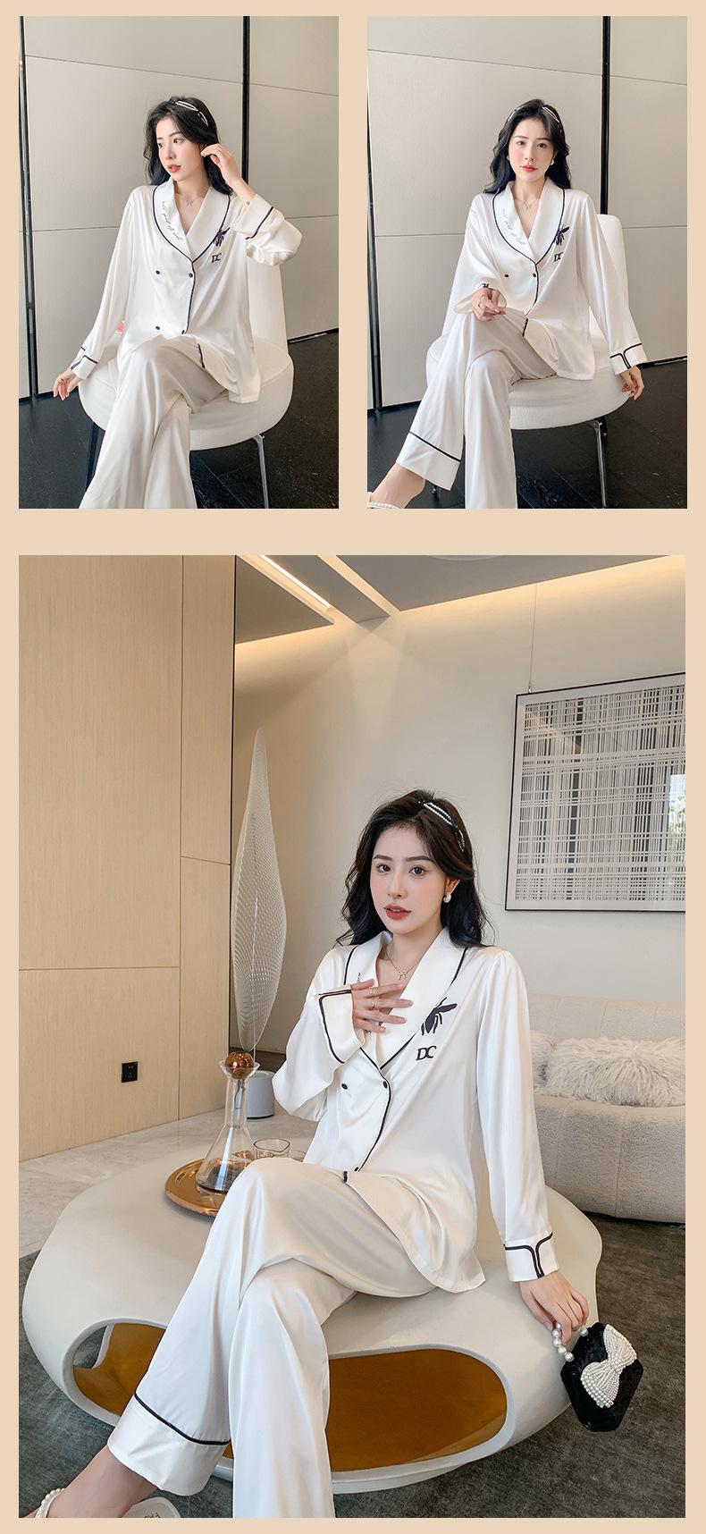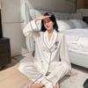 Pijamas para Mujer Primavera y Otoño 2023 Nuevo Traje de Pantalón de Manga Larga de Seda de Hielo Fino Seda Imitación Ropa para el Hogar Estilo Perezoso Lujo Accesible