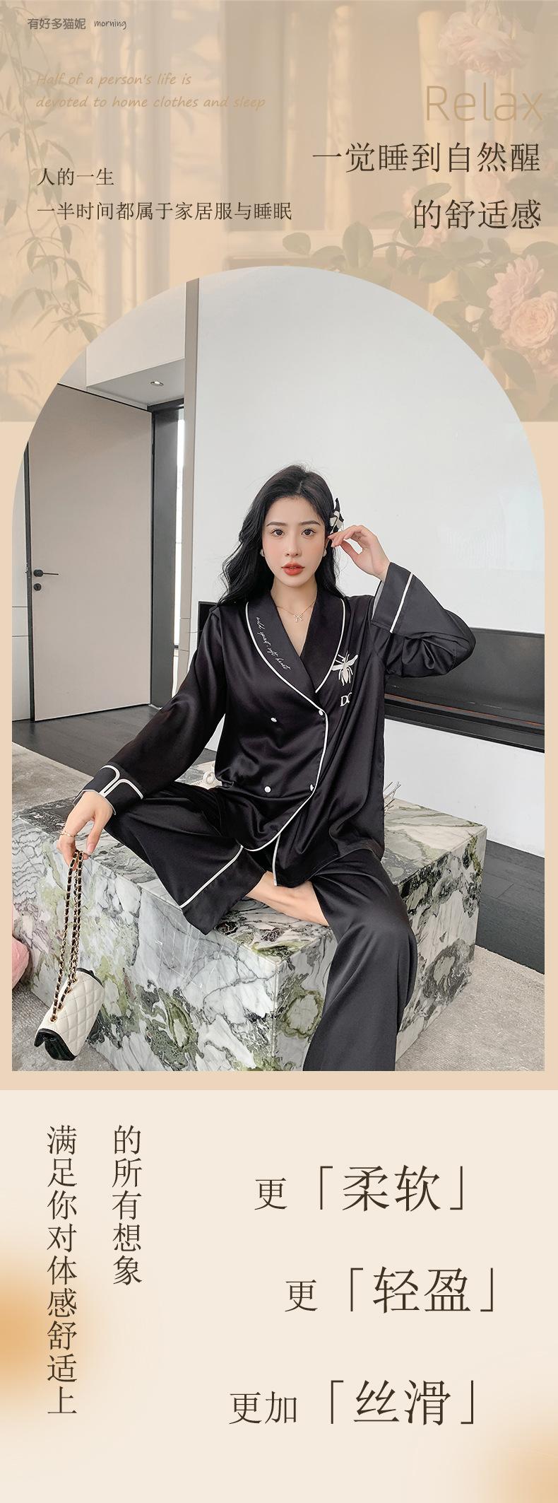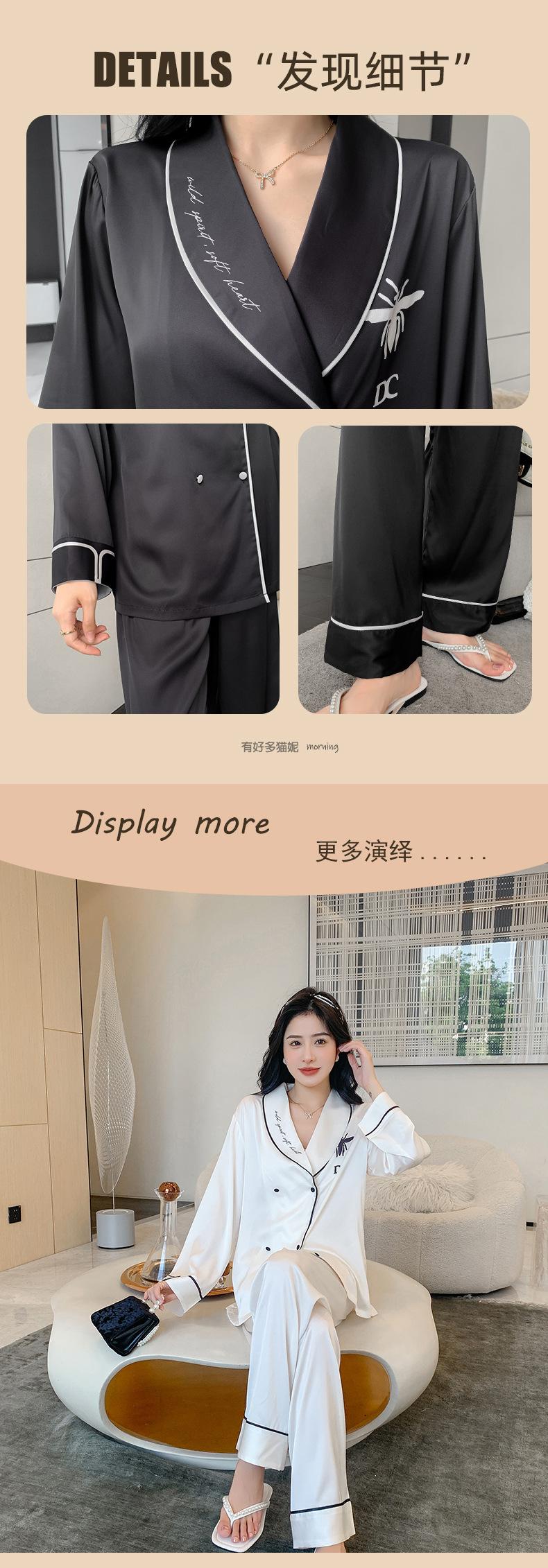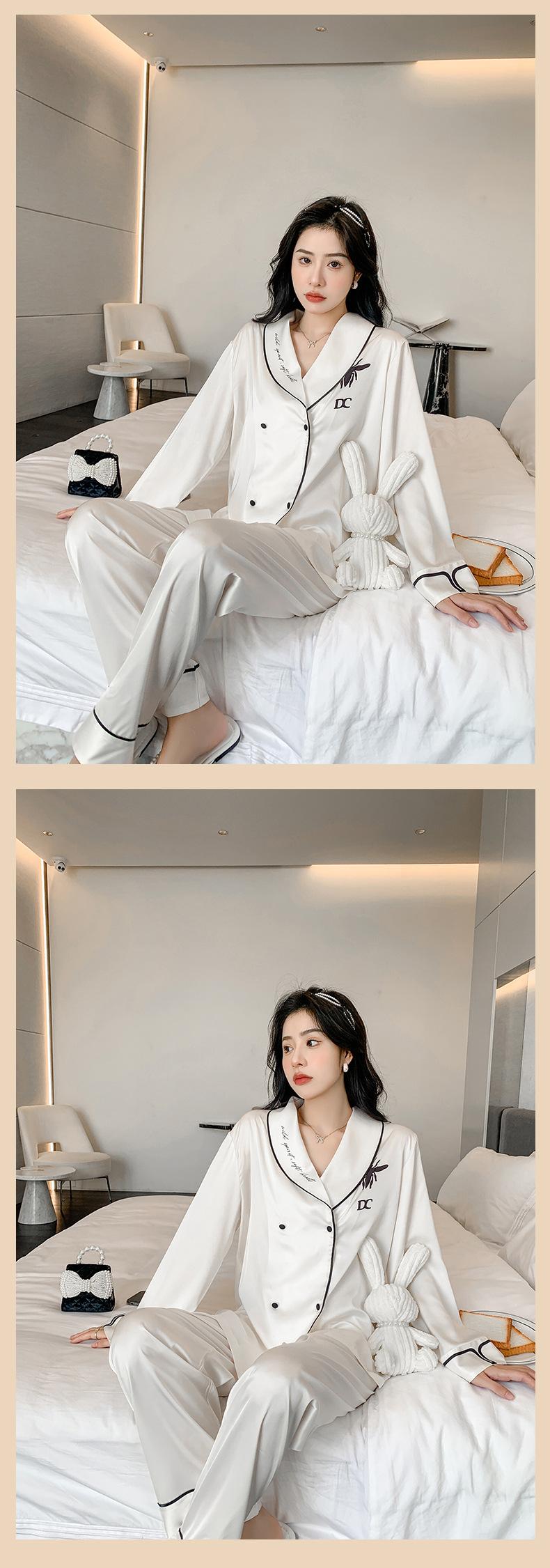 Pijamas para Mujer Primavera y Otoño 2023 Nuevo Traje de Pantalón de Manga Larga de Seda de Hielo Fino Seda Imitación Ropa para el Hogar Estilo Perezoso Lujo Accesible