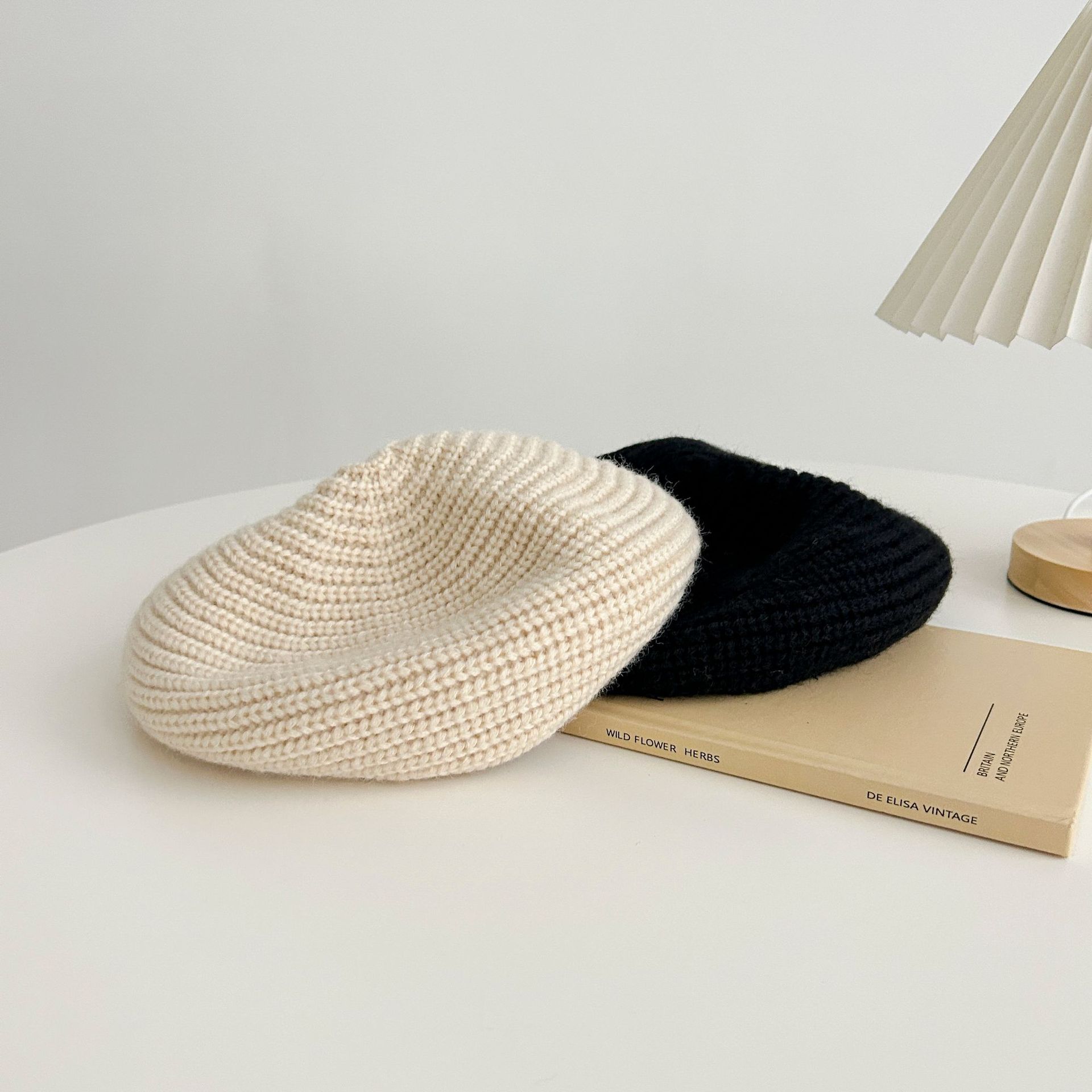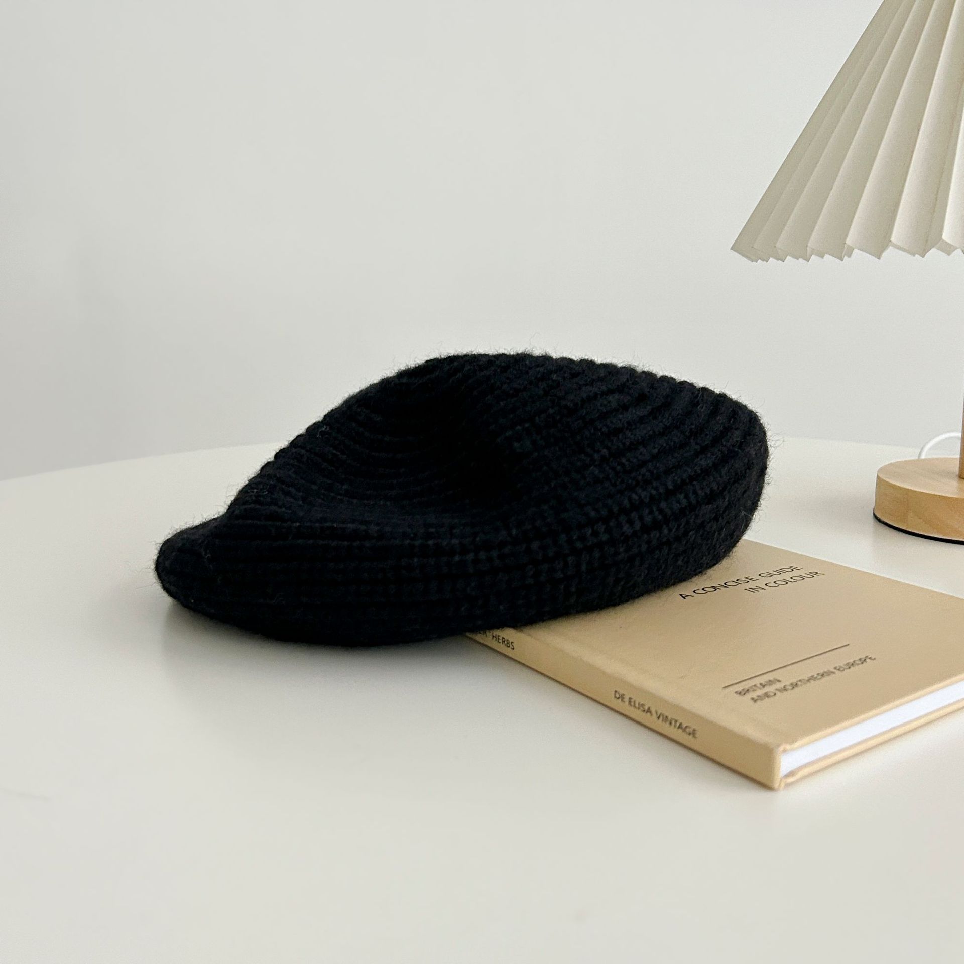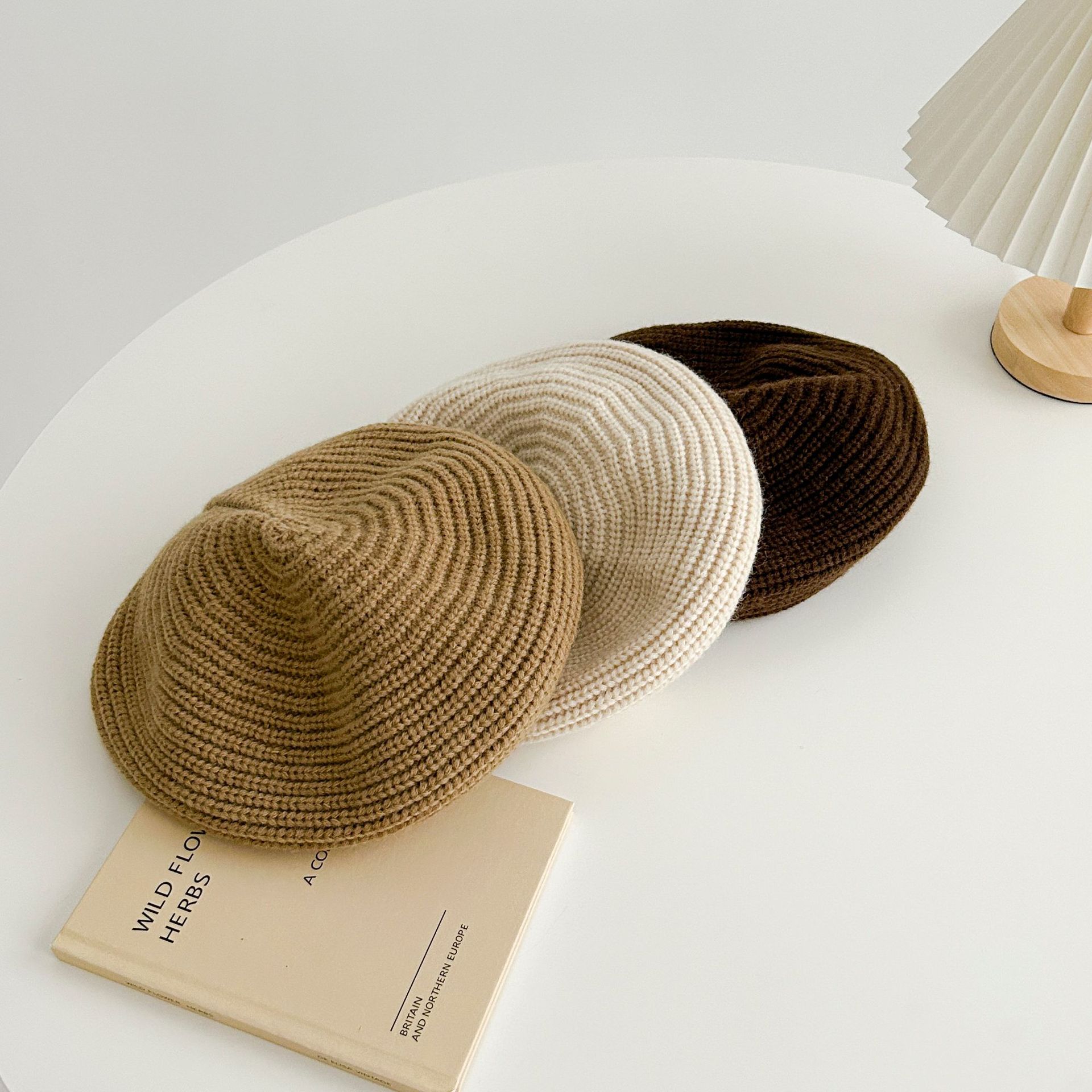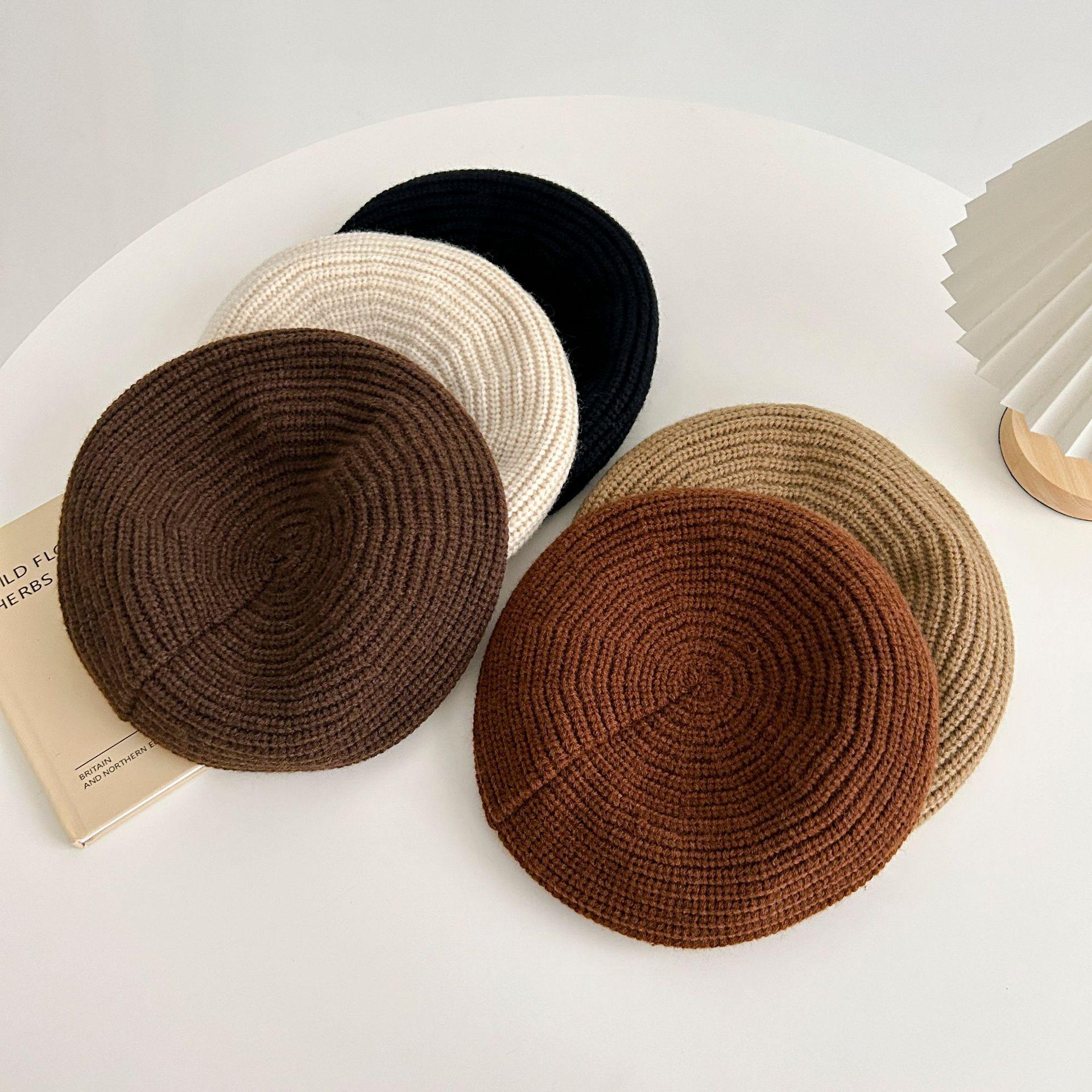 Boina de Punto de Color Sólido Estilo Coreano a la Moda Combinable para Mostrar el Rostro Gorro Pequeño para Mujer Japonés Combinable para Cabeza Grande Gorro de Arte Moderno