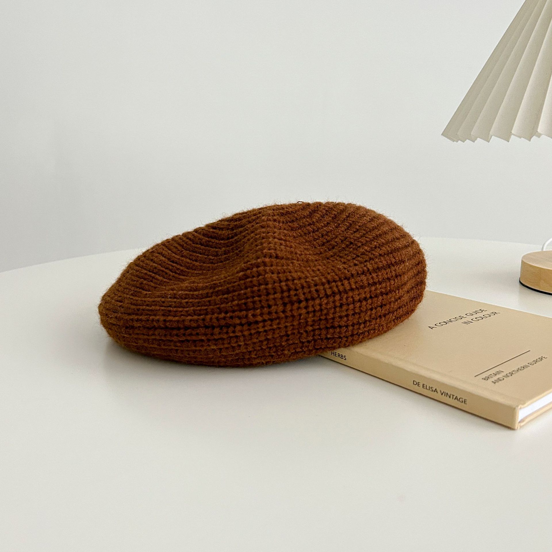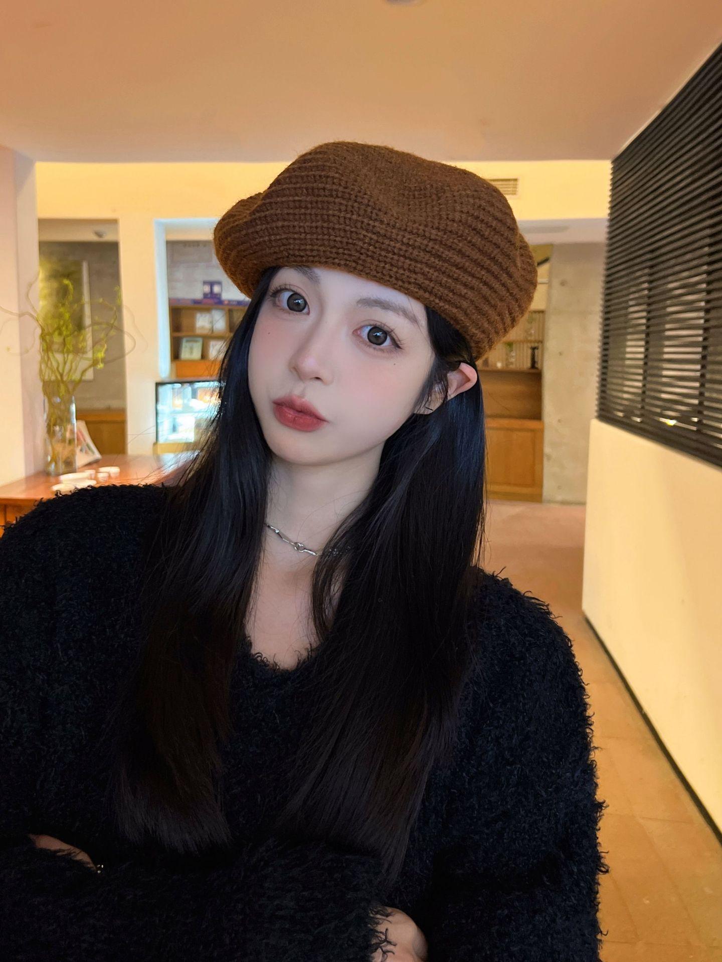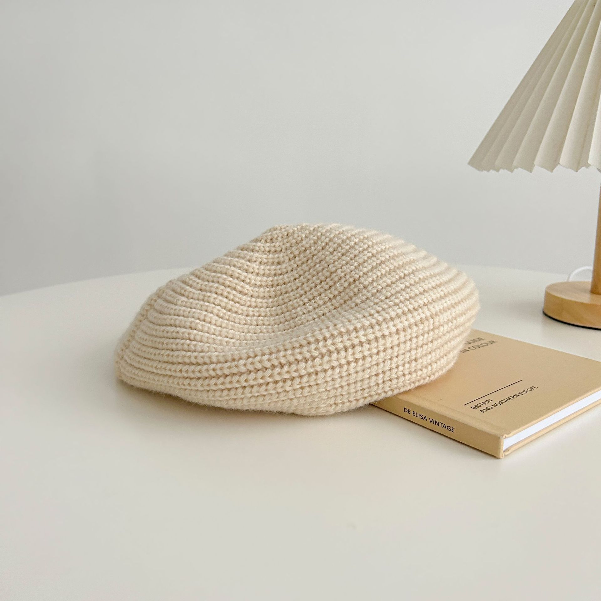 Boina de Punto de Color Sólido Estilo Coreano a la Moda Combinable para Mostrar el Rostro Gorro Pequeño para Mujer Japonés Combinable para Cabeza Grande Gorro de Arte Moderno
