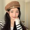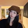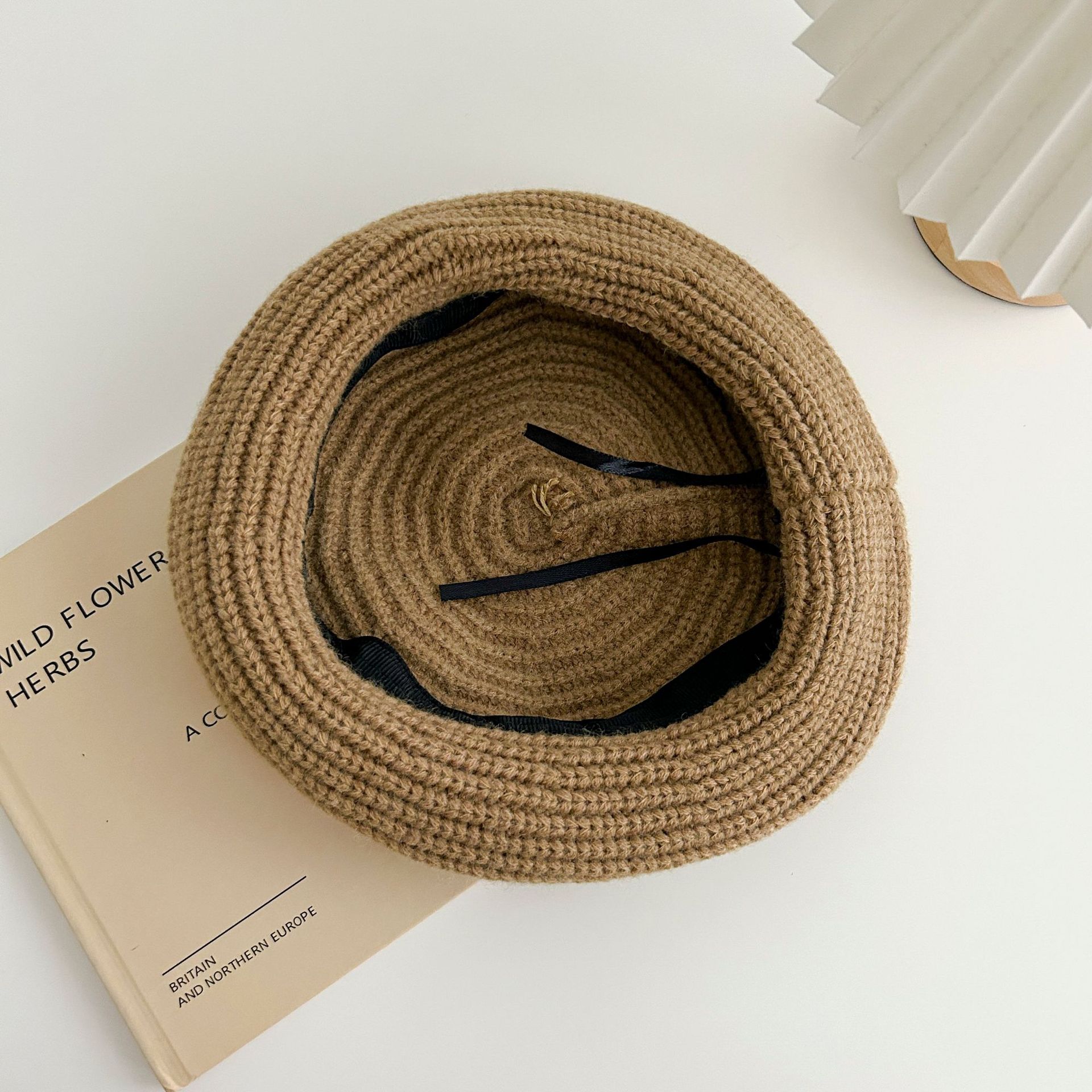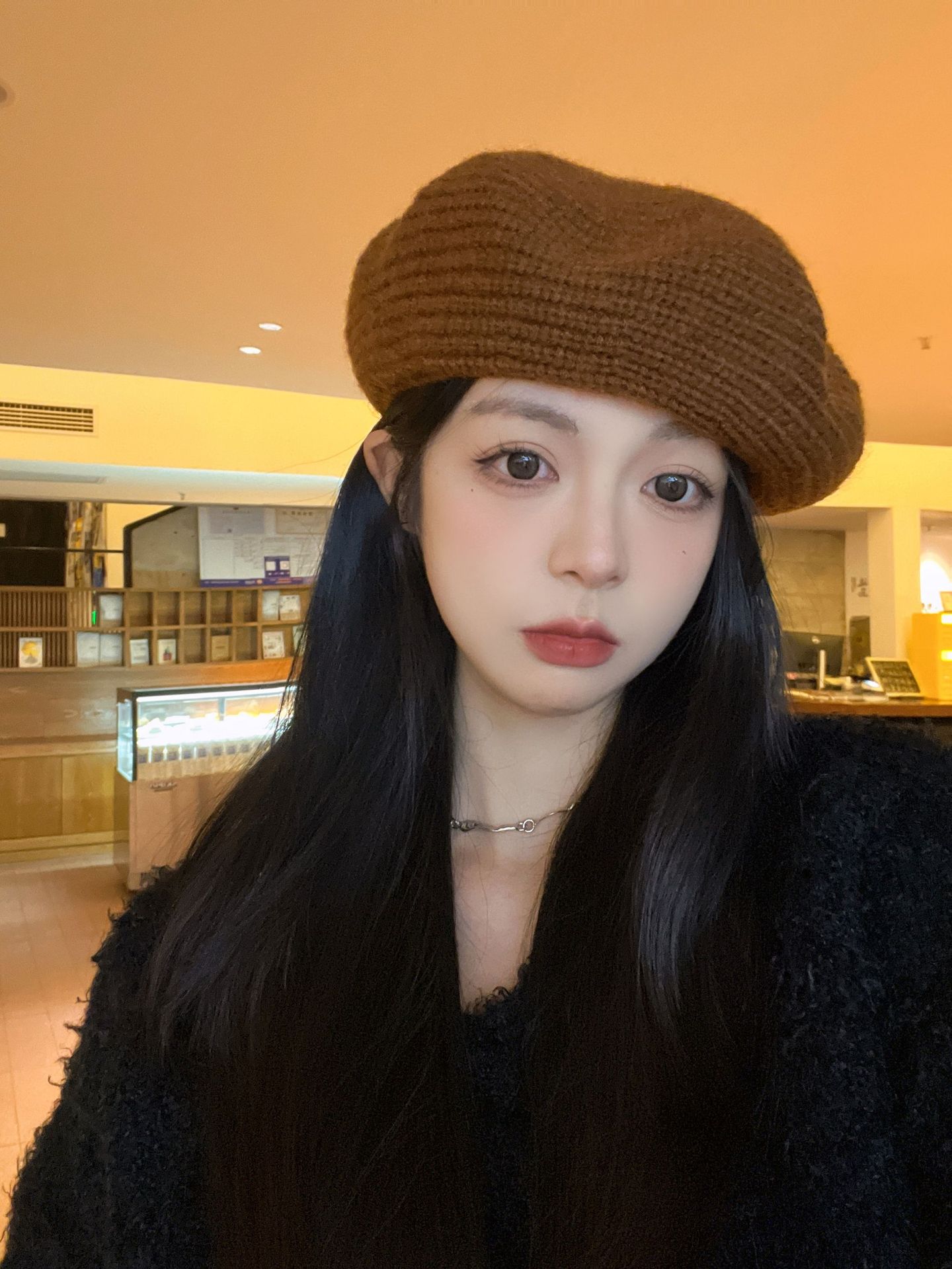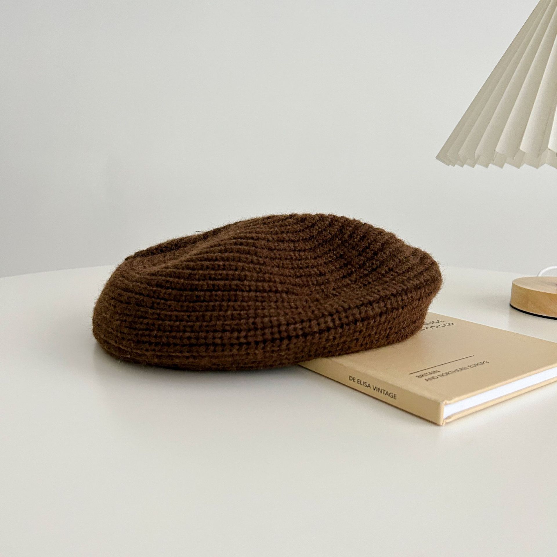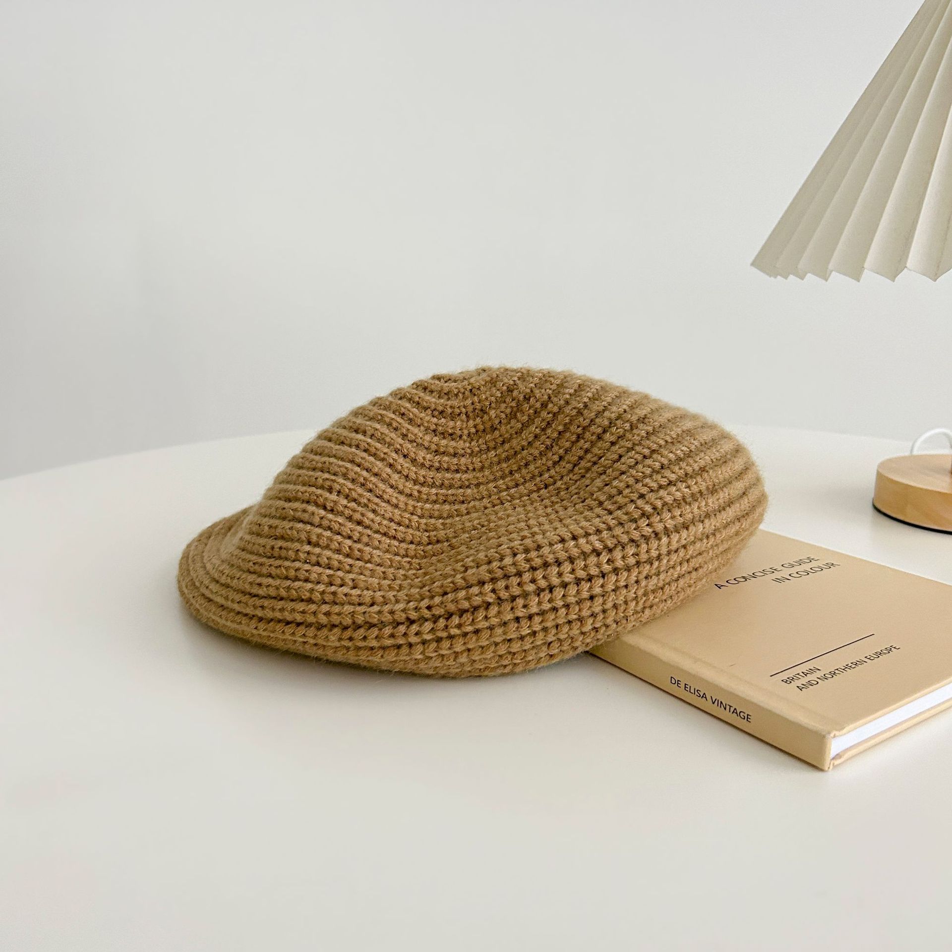 Boina de Punto de Color Sólido Estilo Coreano a la Moda Combinable para Mostrar el Rostro Gorro Pequeño para Mujer Japonés Combinable para Cabeza Grande Gorro de Arte Moderno