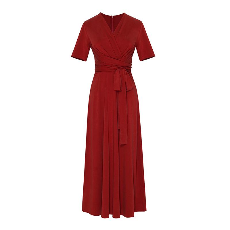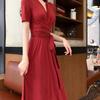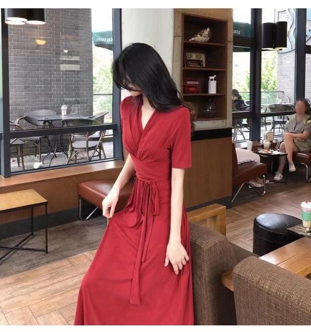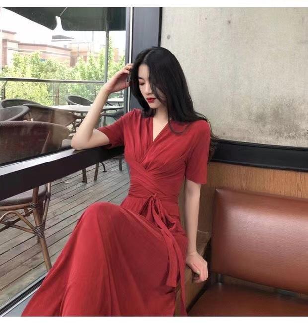 Vestido Rojo Dulce Súper Hada Retro Francés Verano 2023 Tirantes Cintura Adelgazante Temperamento Sobre la Rodilla Vestido Largo