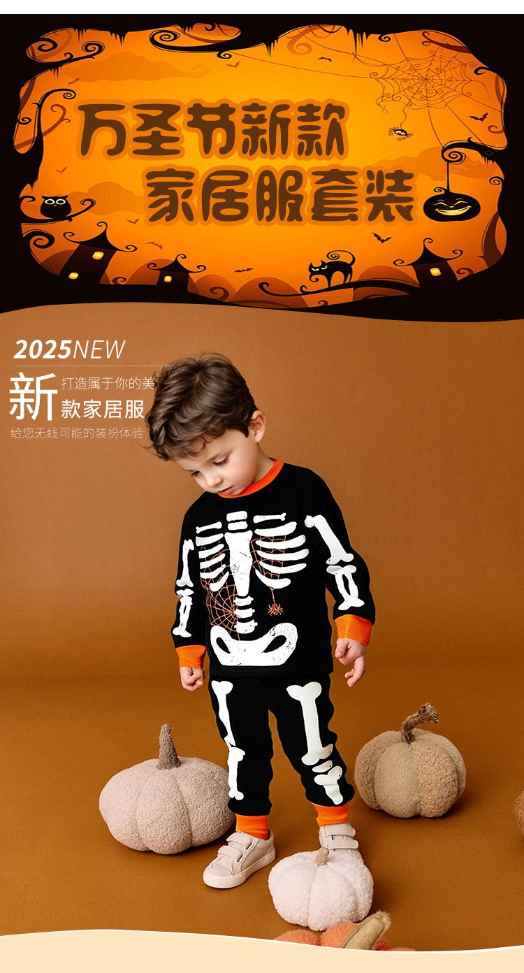Ropa de Otoño e Invierno para Niños Transfronteriza 2025 Trajes de Halloween para Niños Pantalones para Niños Pequeños y Medianos Ropa para el Hogar Pijamas Estampados Luminosos Ropa