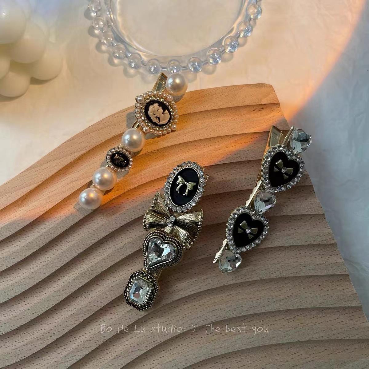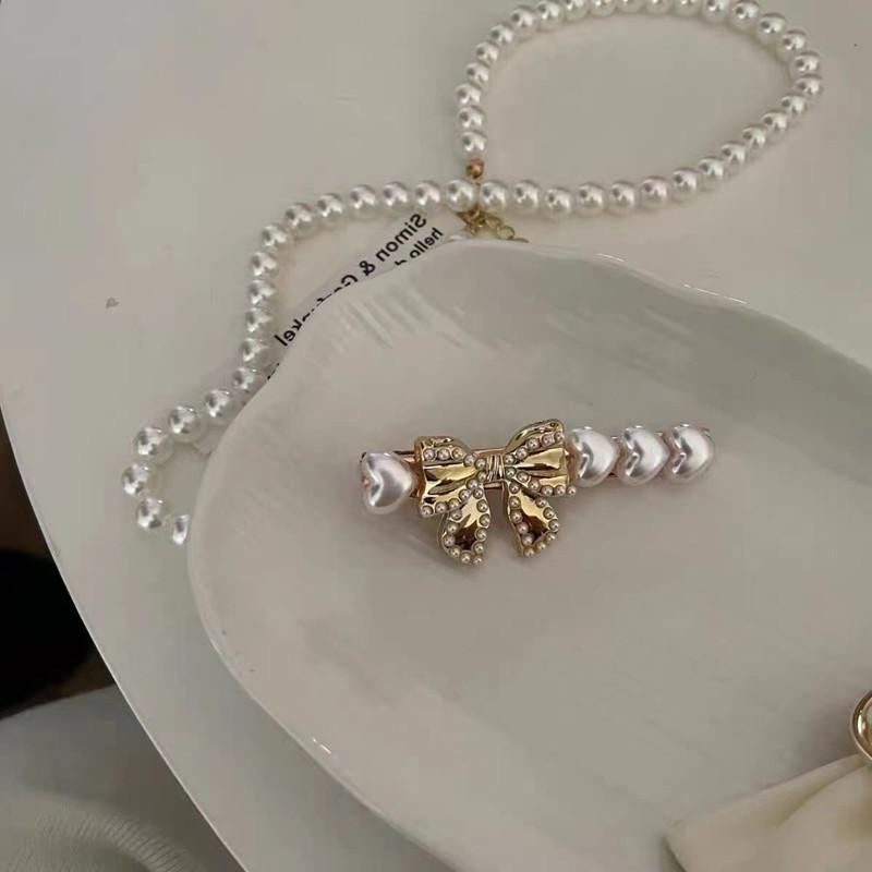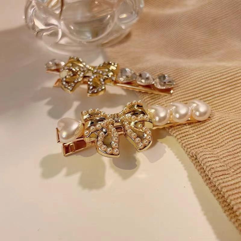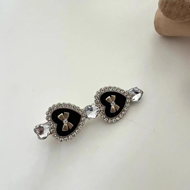 Horquilla francesa con lazo de amor y diamantes de imitación, con textura metálica y forma de pico de pato, para flequillo lateral, combina con todo, nueva, accesorio para el cabello
