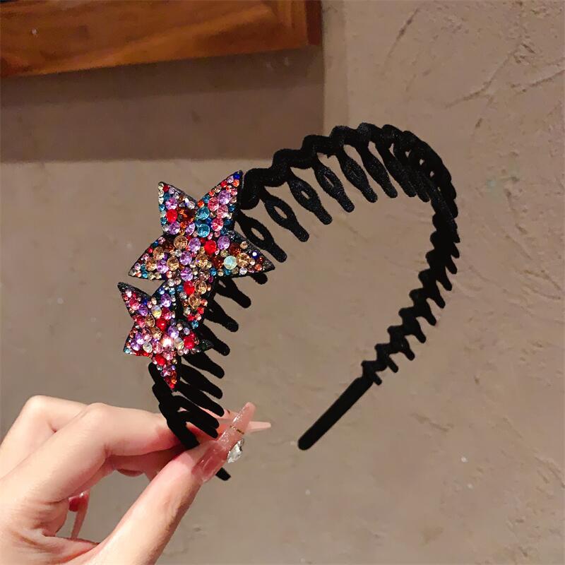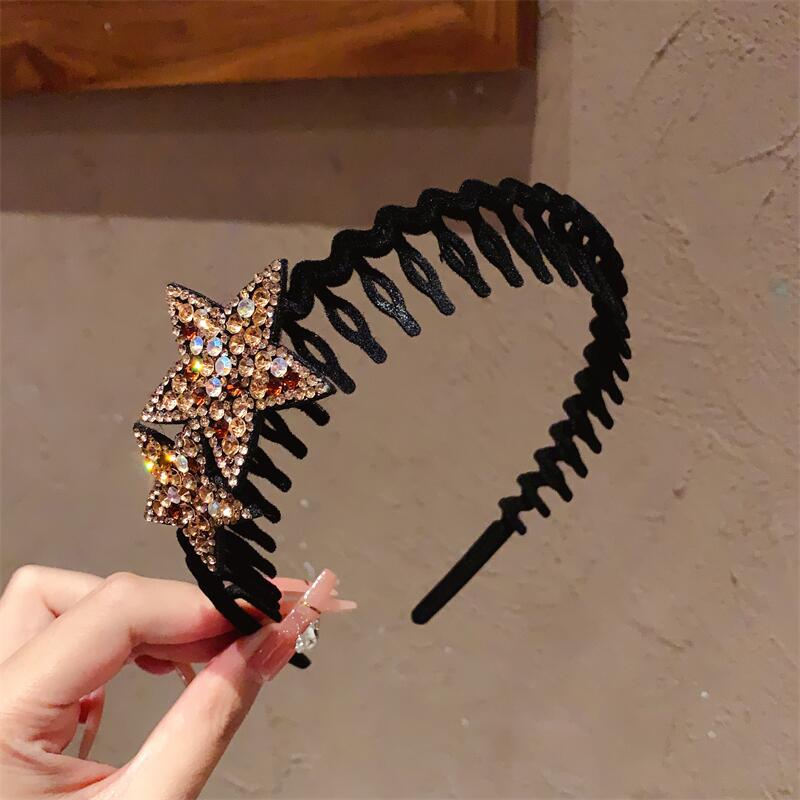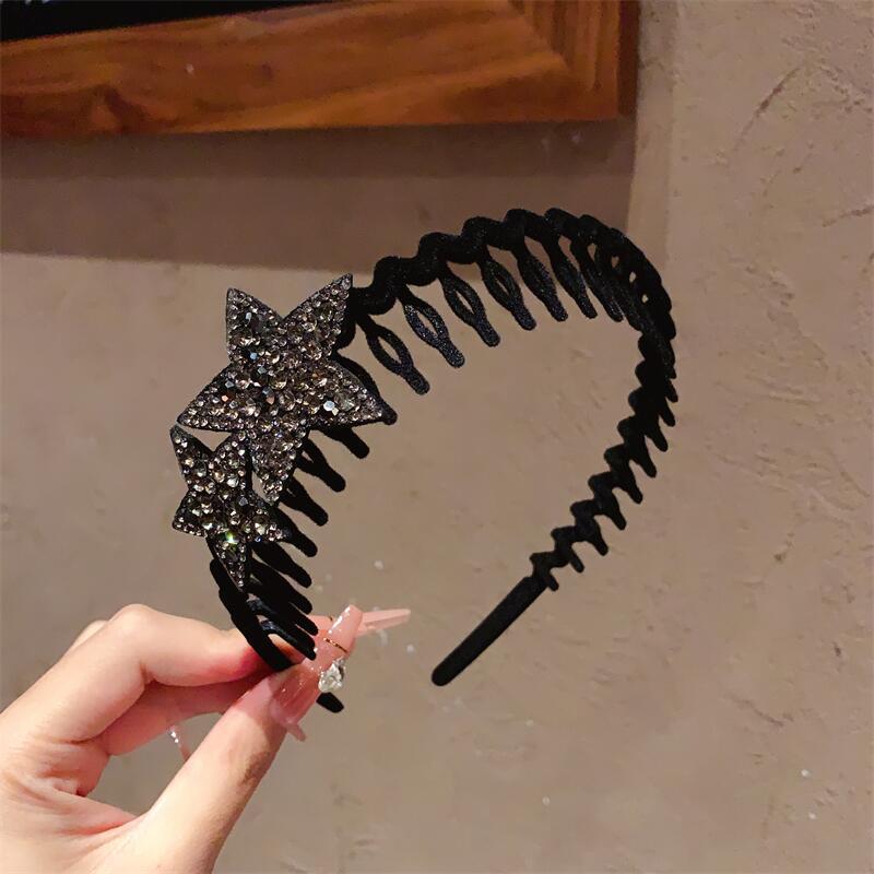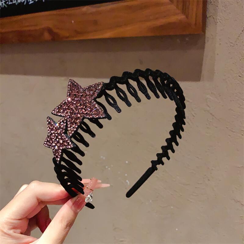 Yiwu Shixian E-Commerce Co., Ltd. es una empresa especializada en la producción, procesamiento y venta al por mayor de diversos accesorios de moda para el cabello. Sus principales productos incluyen horquillas, cintas, bandas para el cabello, cintas para el pelo y diversos accesorios populares. Cuenta con un sistema de gestión de calidad completo y eficiente. La empresa se adhiere a la filosofía empresarial de "el cliente primero, avanzando hacia adelante" y se adhiere al principio de "el cliente primero" para brindar servicios de calidad a nuestros clientes. La integridad, solidez y calidad de nuestros productos han sido reconocidas por la industria. Un modelo de negocio diversificado que combina ventas en línea y fuera de línea para impulsar grandes ventas, cuenta con una sólida red de ventas y contactos comerciales en las principales ciudades y departamentos. Nos hemos fijado el objetivo de "alta calidad a bajo precio, estabilidad y grandes cantidades", y nuestros empleados tienen un fuerte sentido de la responsabilidad. Le garantizamos que sus necesidades son nuestra prioridad. ¡Bienvenido a hacer su pedido!Nuevo artefacto para peinar cabellos sueltos de estrella de cinco puntas, diadema de terciopelo con pedrería para lavar la cara para mujer, con dientes, antideslizante, pasador, orificio para el cabello