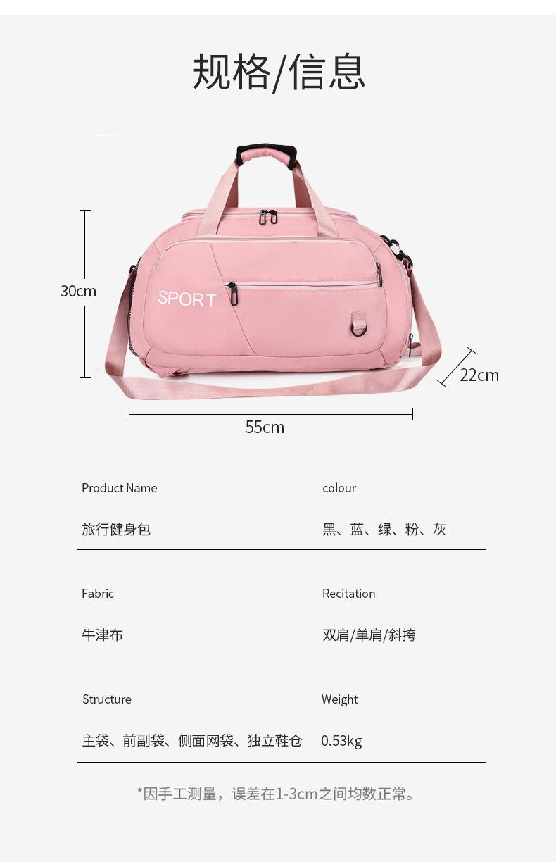 Mochila de viaje de gran capacidad, bolsa de fitness, bolsa de equipaje multifuncional, bolsa de viaje para viajes de corta distancia al aire libre.