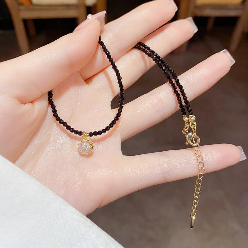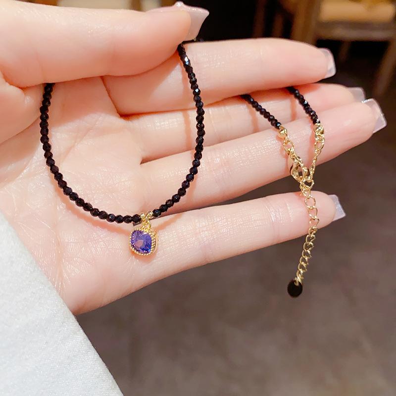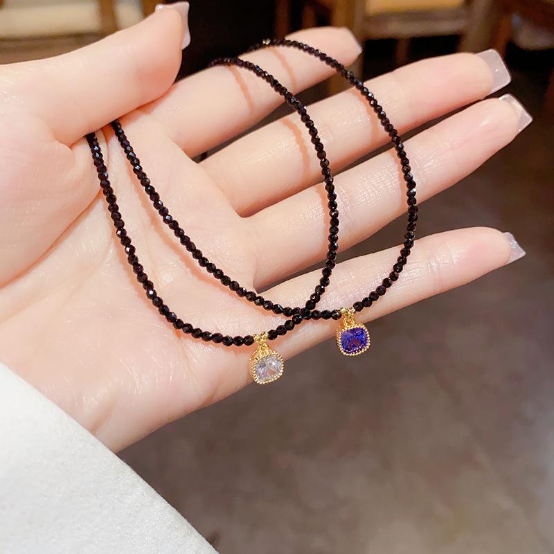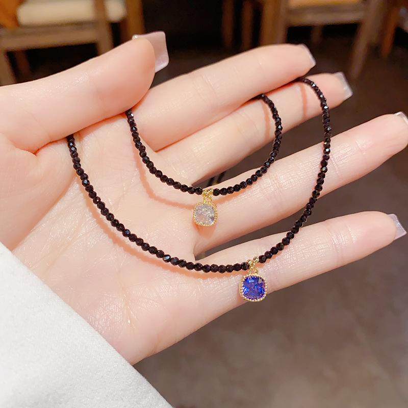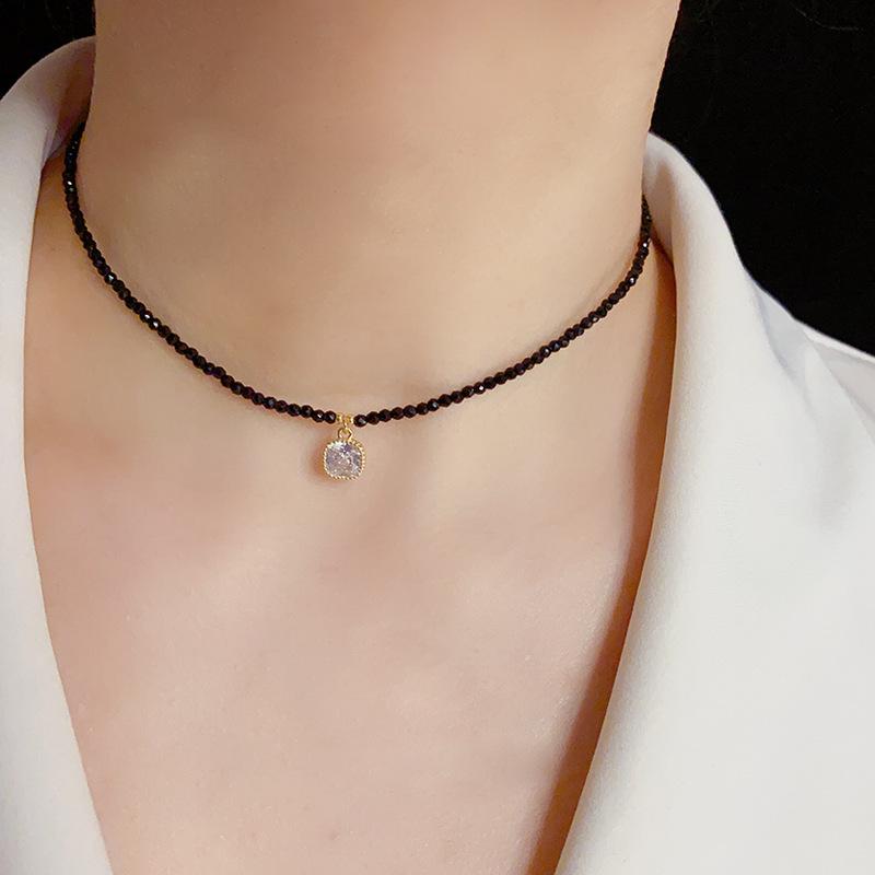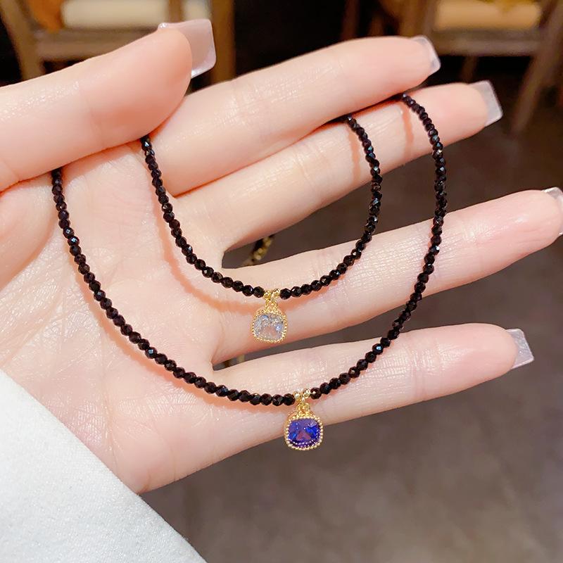Collar de cadena de clavícula de cristal negro de lujo con diseño de nicho de celebridades de Internet, cadena de collar elegante y de moda simple de alto sentido