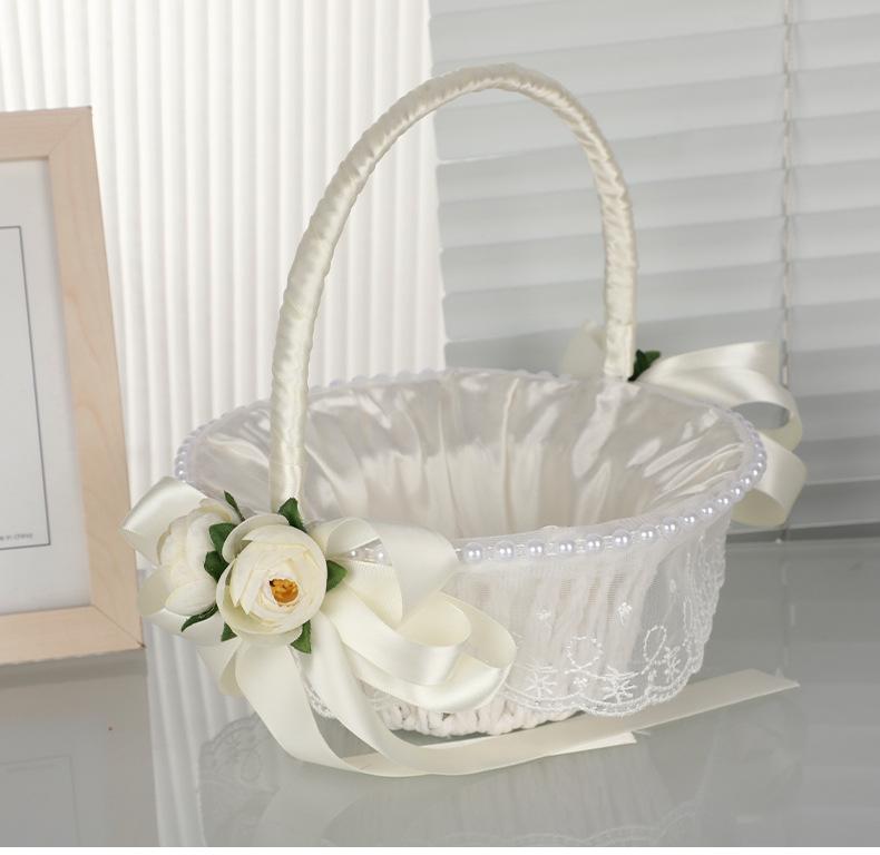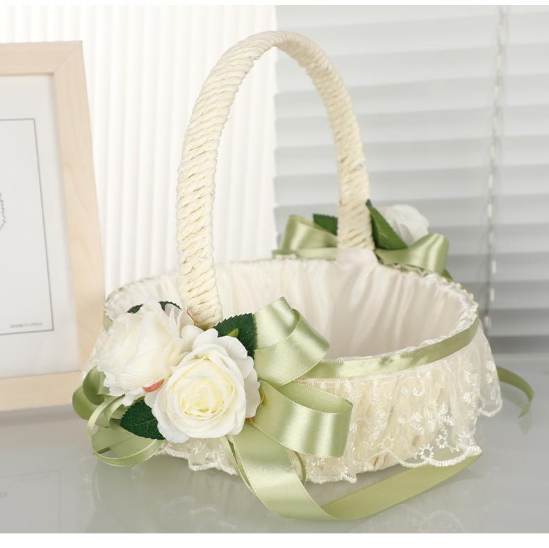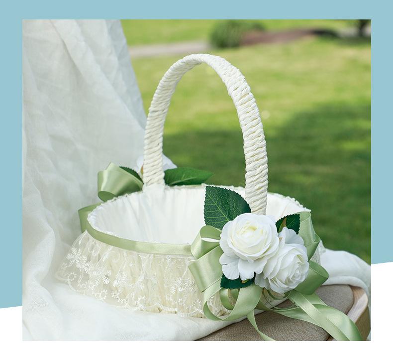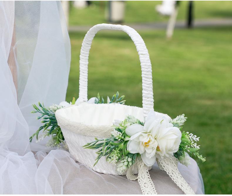 Suministros de boda de estilo occidental, cesta de flores para niña de las flores, pétalos, decoración de boda azul, cesta de mano para dama de honor