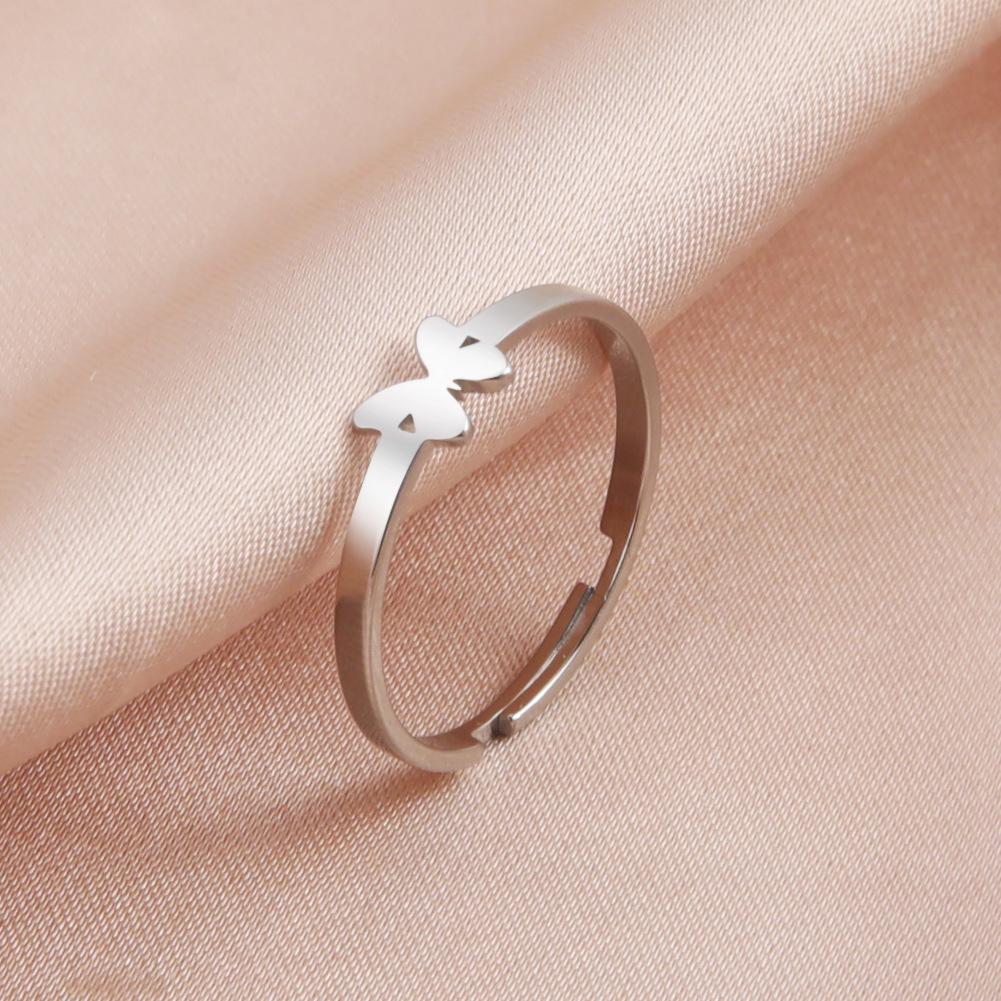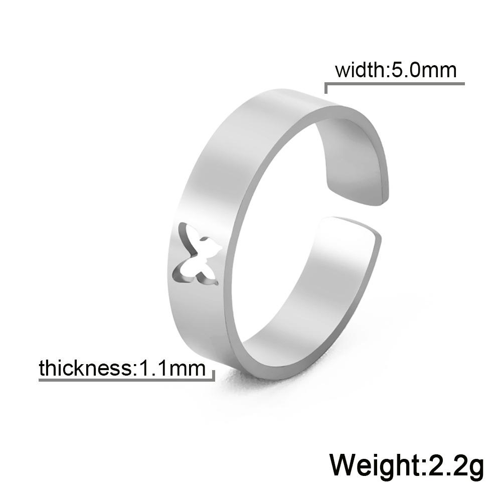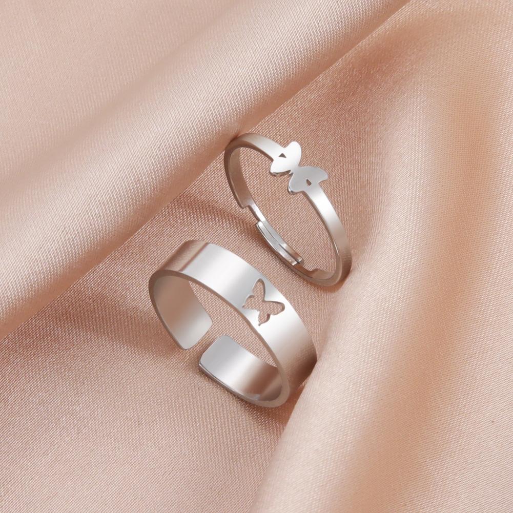 Lindo set de anillos de 2 piezas ajustables de mariposa sólida hueca, traje de amor, anillo para mujer, joyería, regalo para fiesta