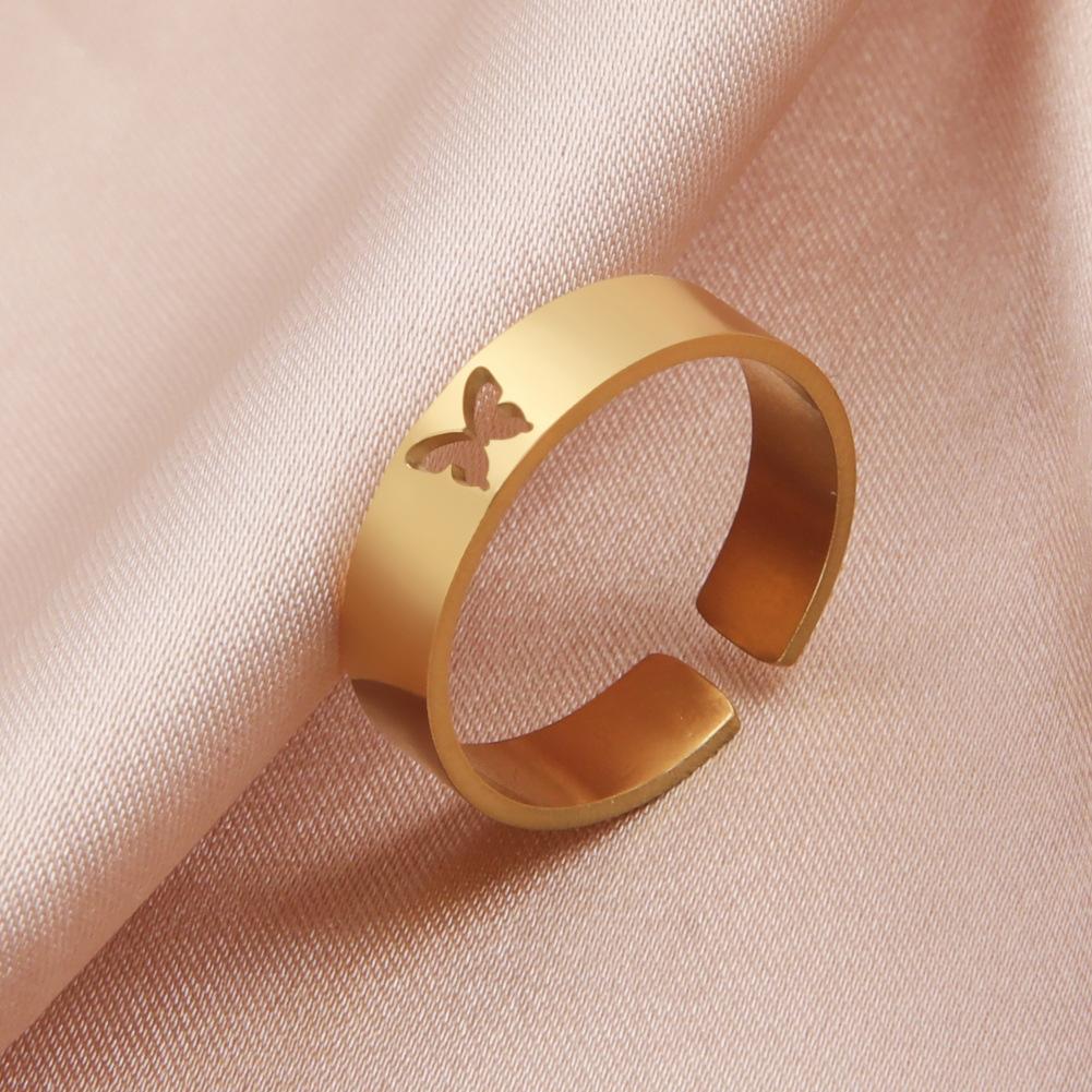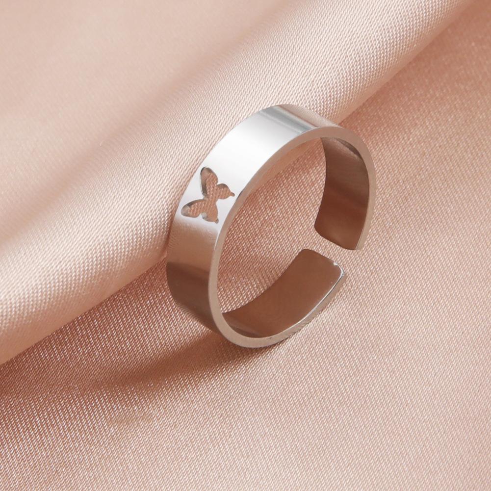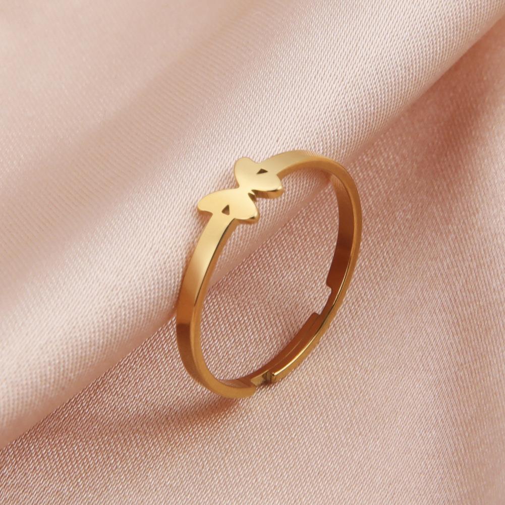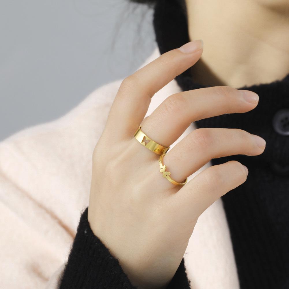 Lindo set de anillos de 2 piezas ajustables de mariposa sólida hueca, traje de amor, anillo para mujer, joyería, regalo para fiesta