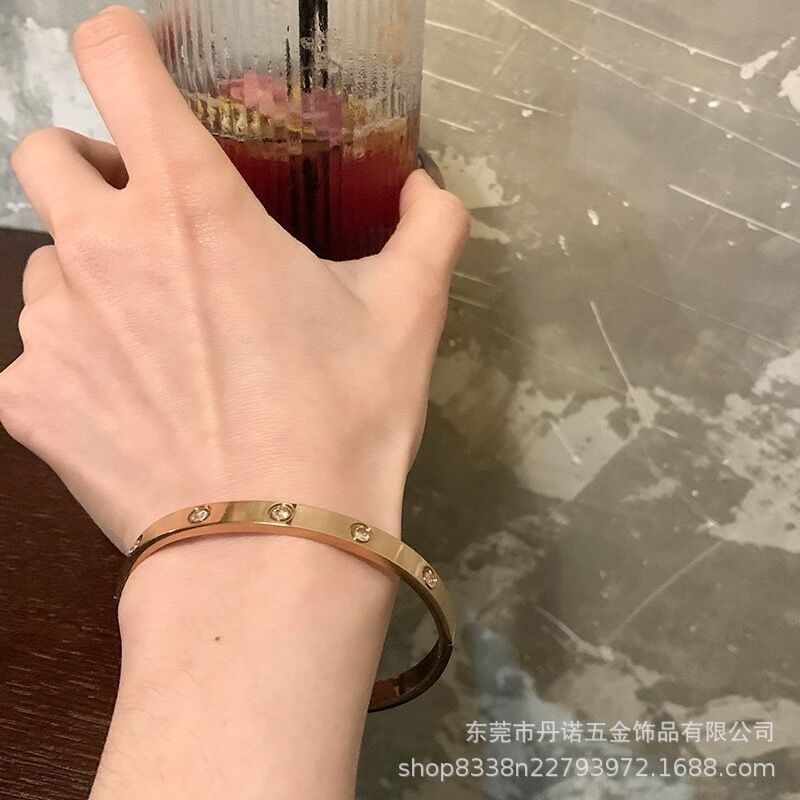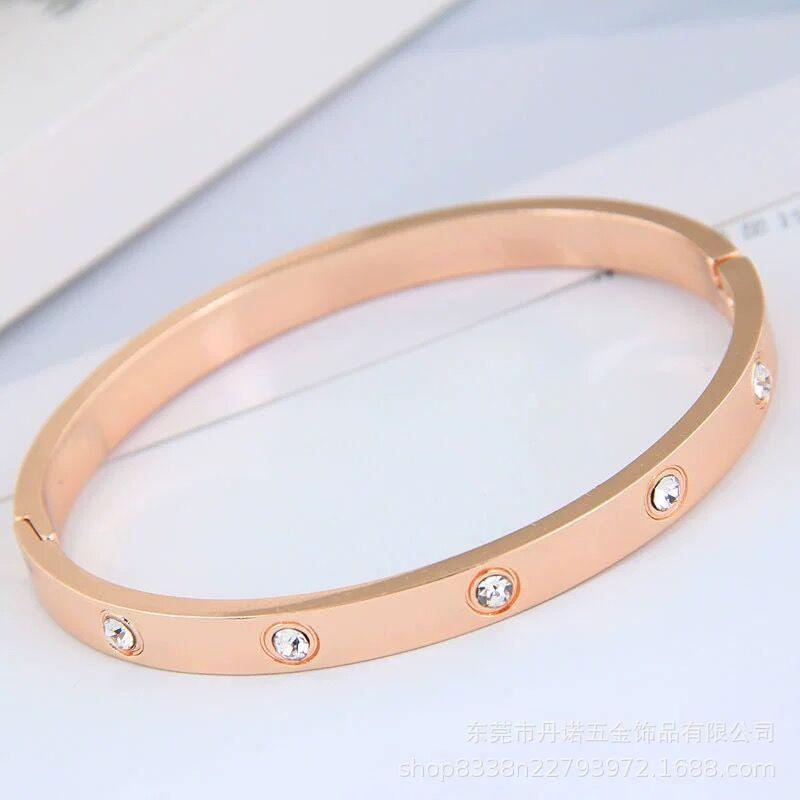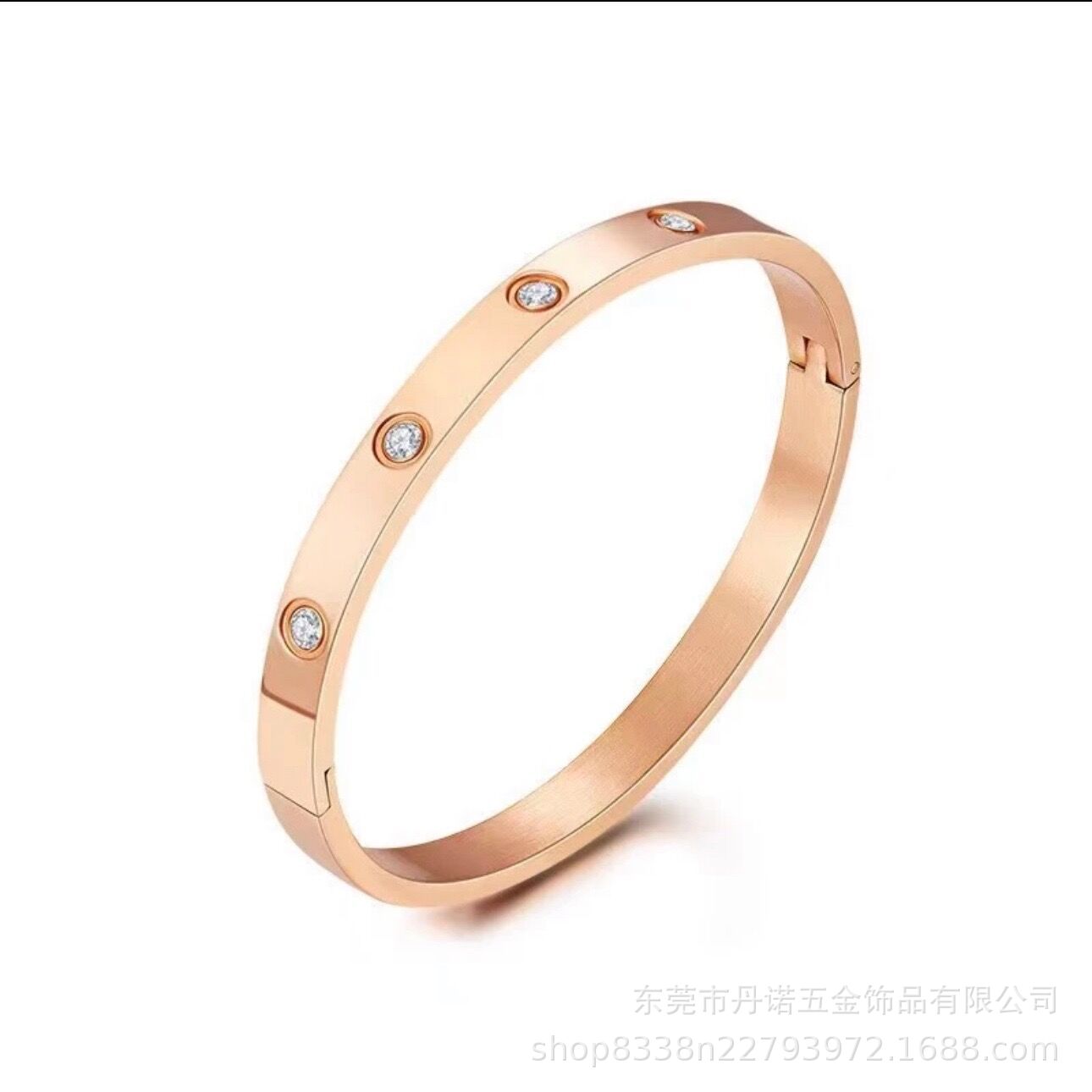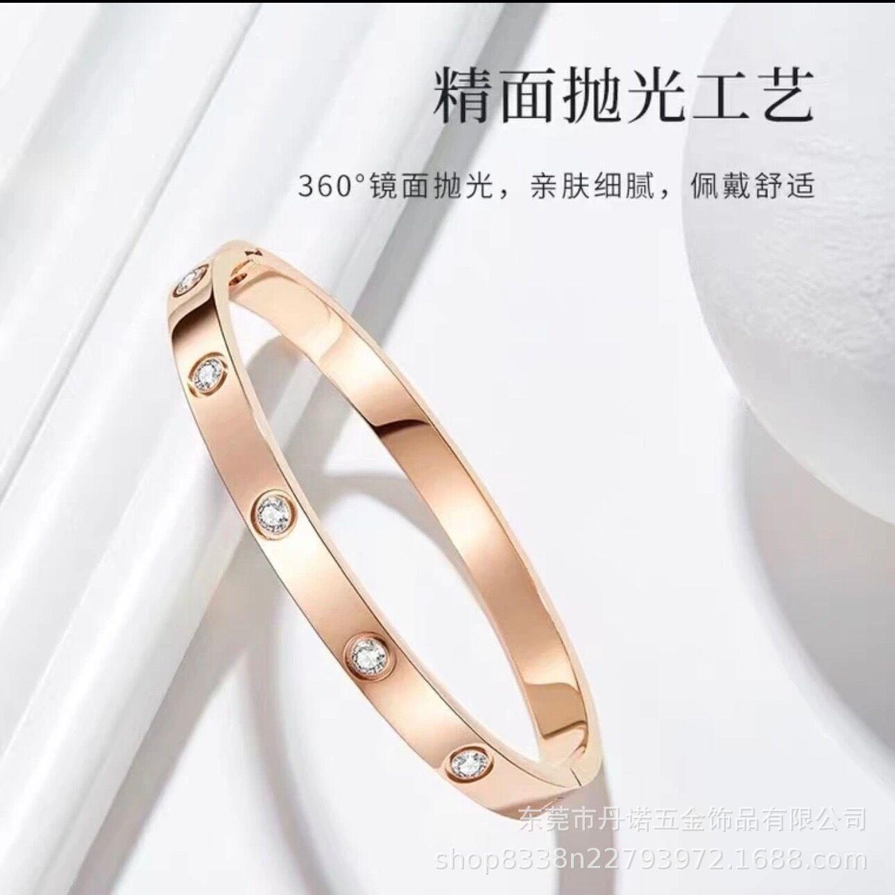 Popular pulsera de moda de acero de titanio con hebilla diez diamantes no se desvanece pulsera clásica versátil joyería de acero de titanio al por mayor