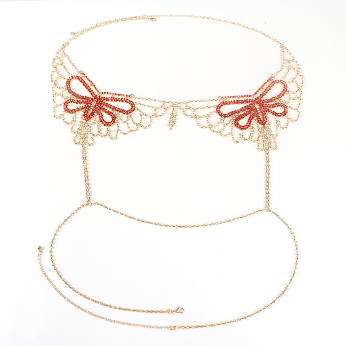Cadena Corporal Sexy Transfronteriza Europea y Americana de Mariposa Roja con Pedrería Cadena Corporal para Club Nocturno Playa Bikini Cadena para Sujetador Cadena Corporal