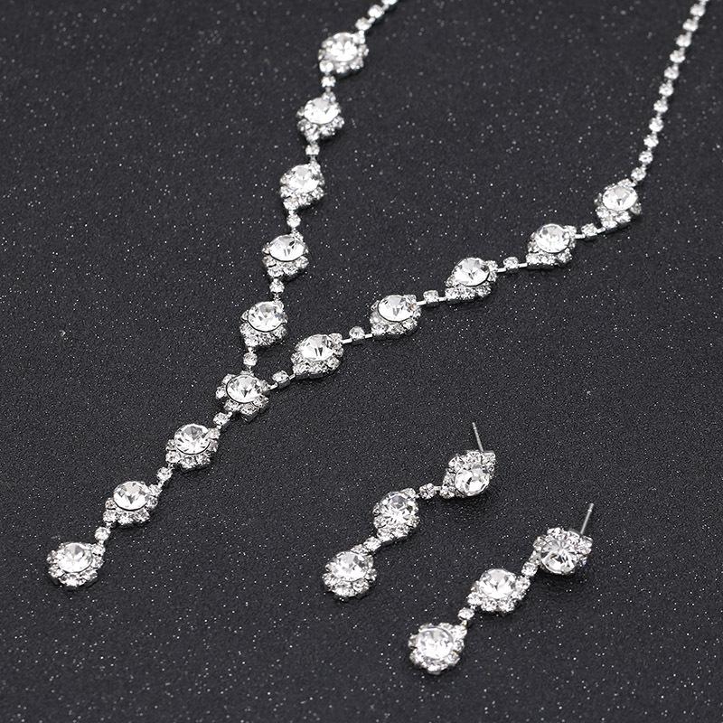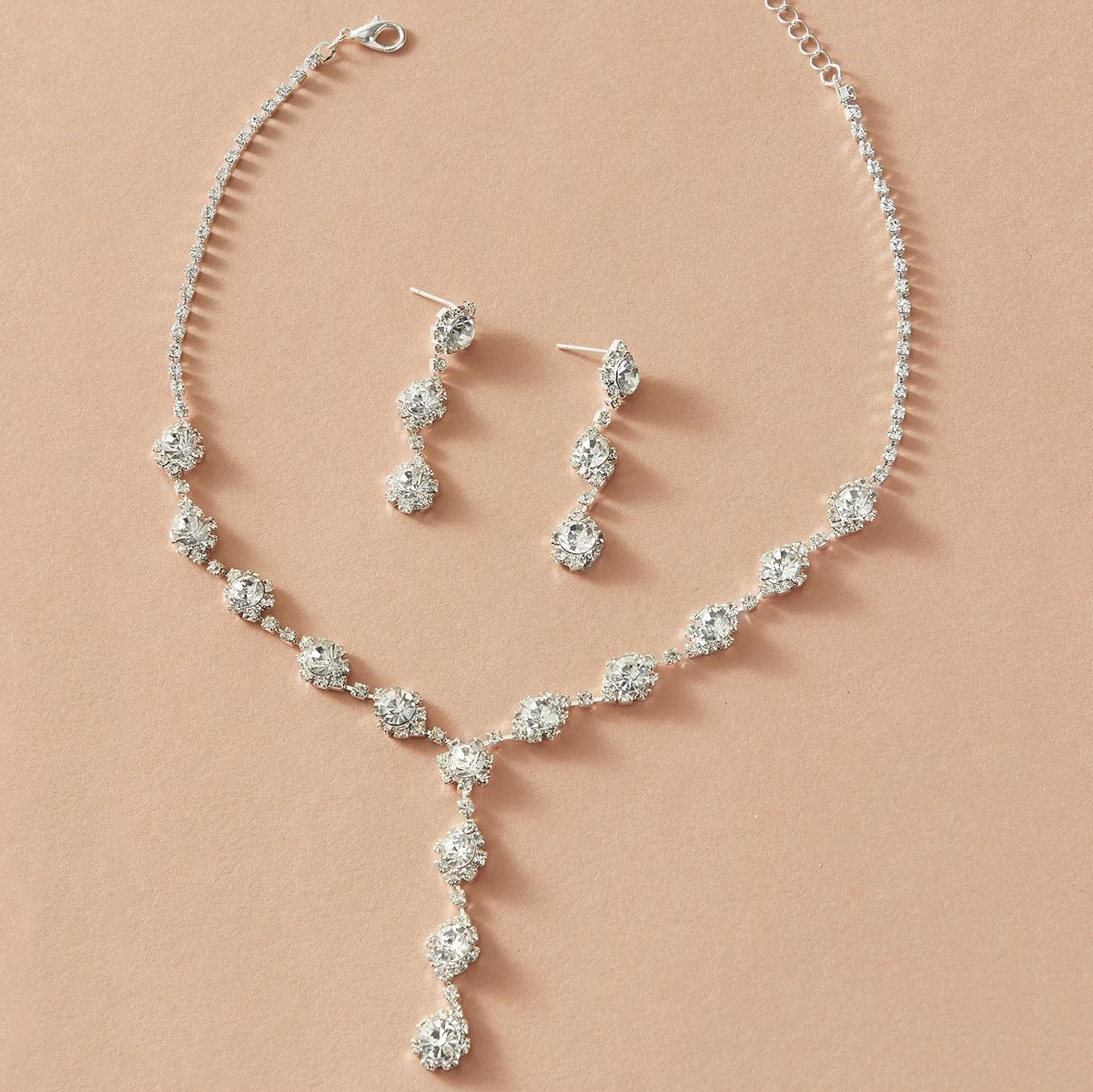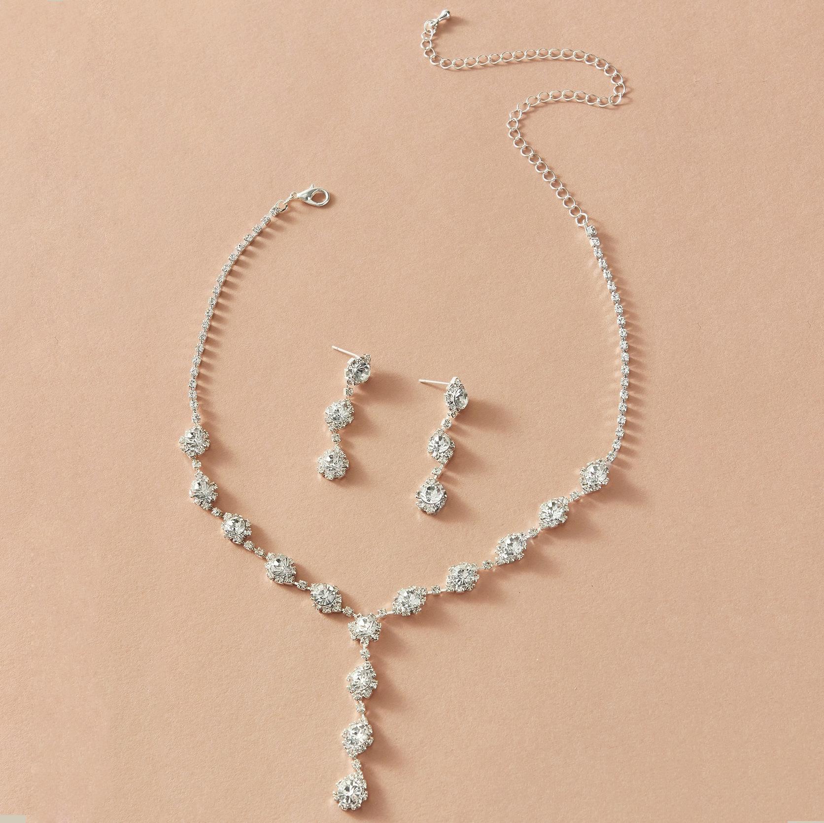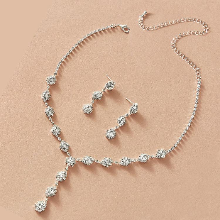 Joyería de boda, moda europea y americana, conjunto de dos piezas de diamantes, collar y pendientes para traje de novia, venta al por mayor N5699