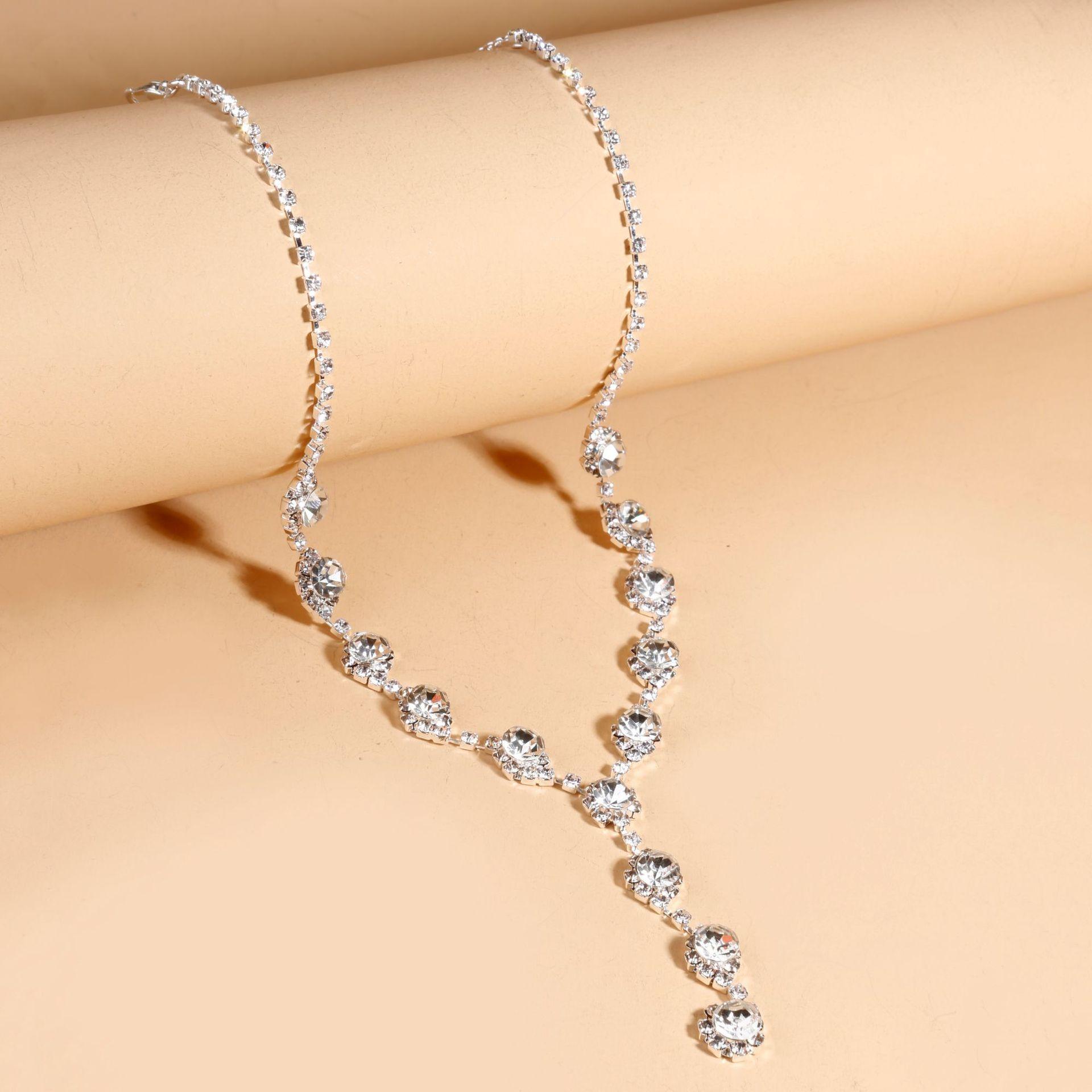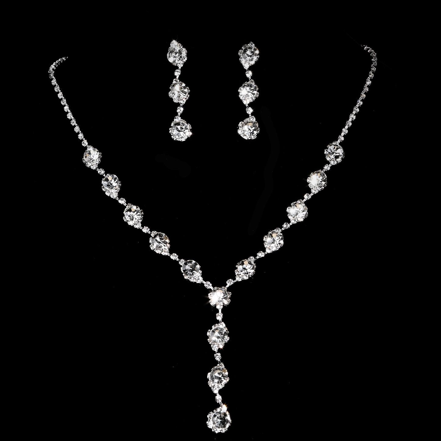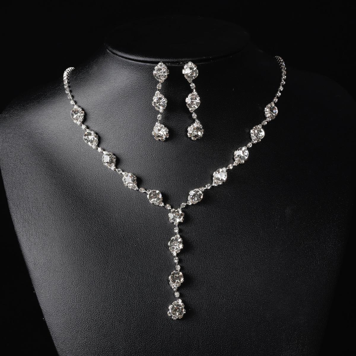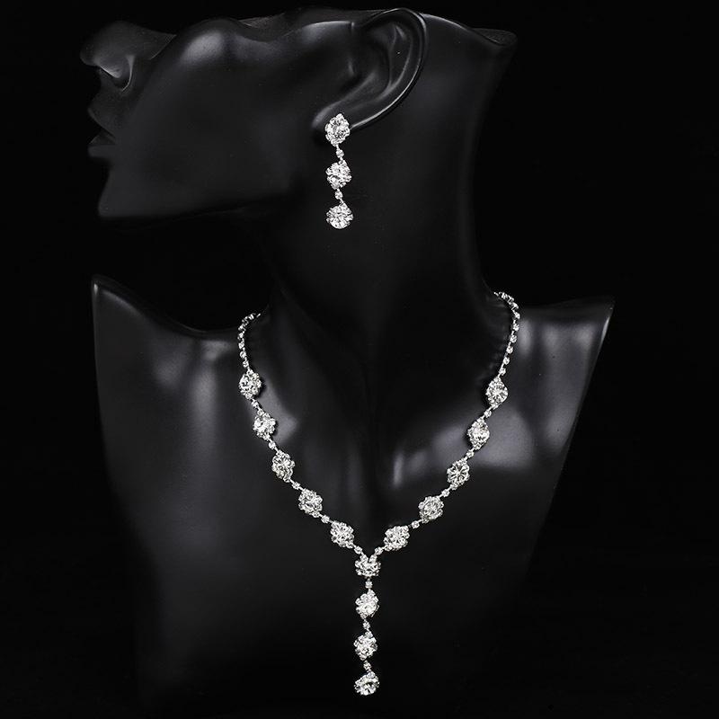 Joyería de boda, moda europea y americana, conjunto de dos piezas de diamantes, collar y pendientes para traje de novia, venta al por mayor N5699