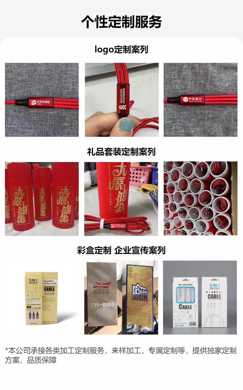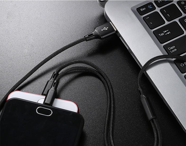 Cable de datos 1 a 3 al por mayor de fábrica para Huawei, Android, cable de datos 3 en 1, carga rápida de Apple, logotipo de regalo