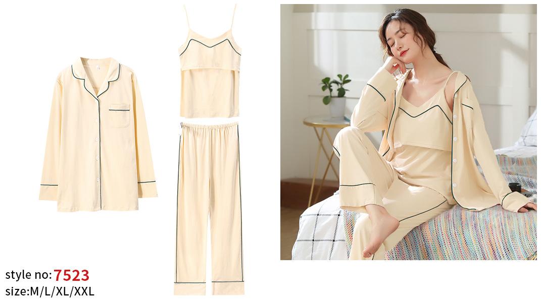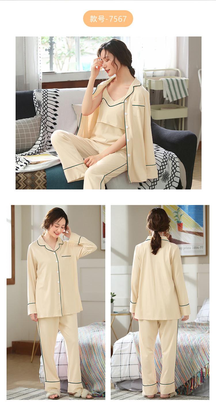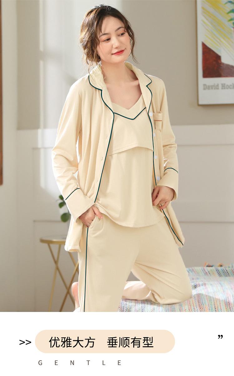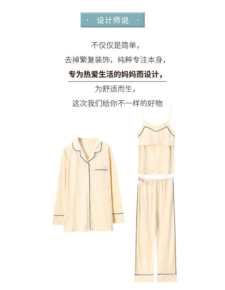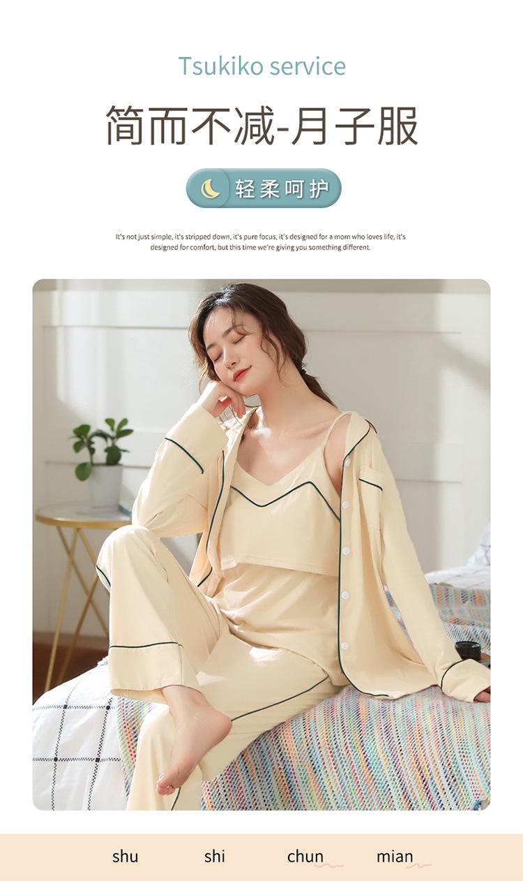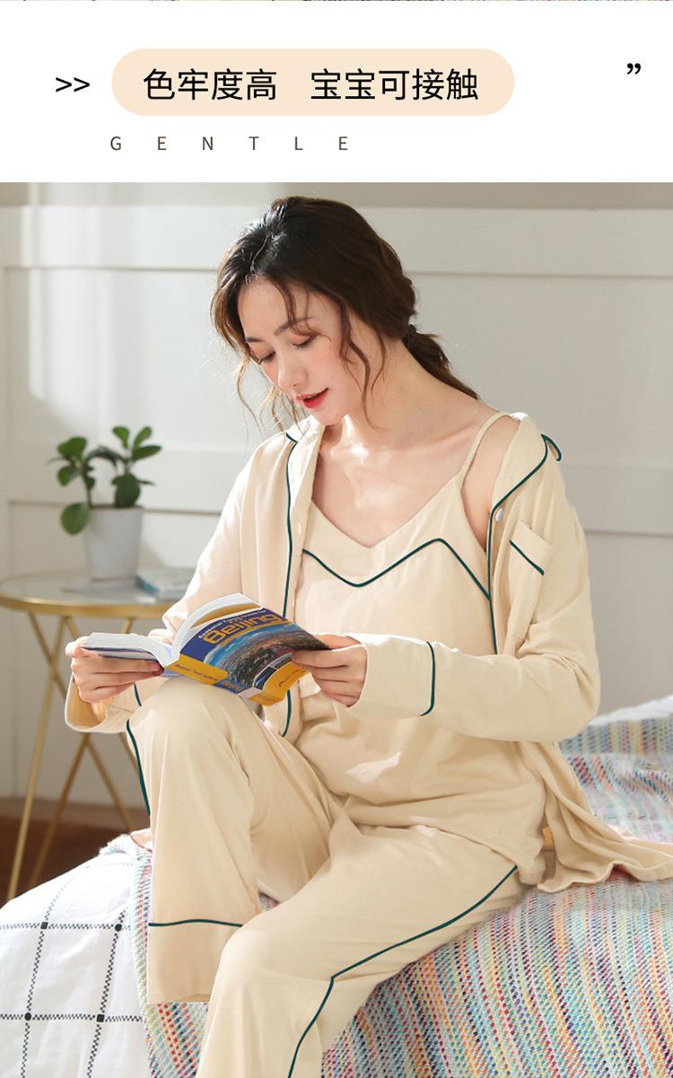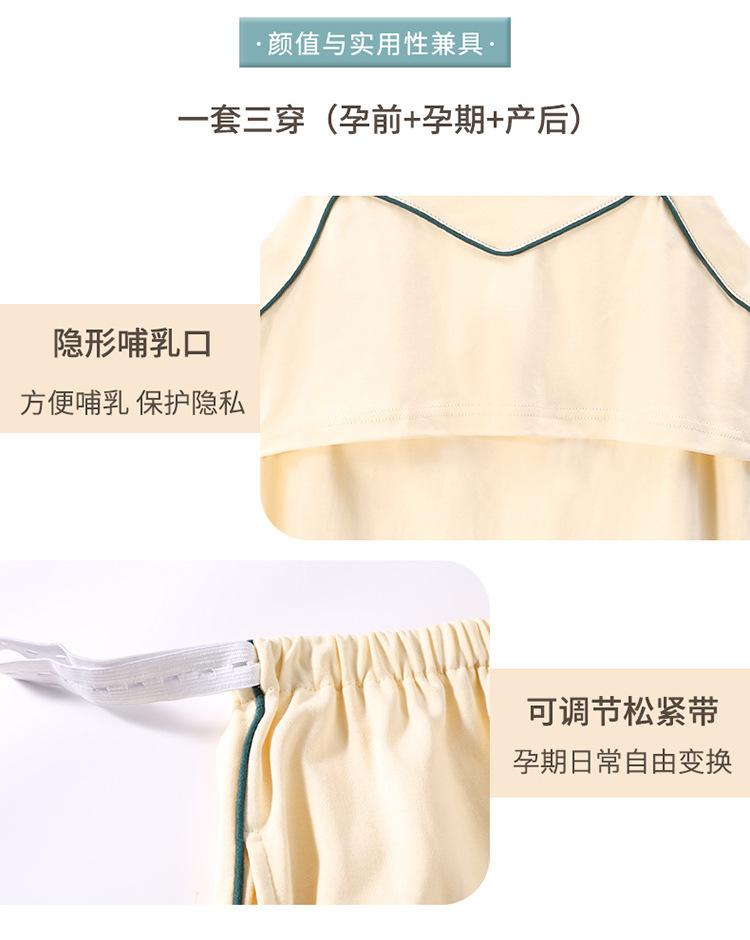 Verano Nuevo Algodón Puro Ropa de Luna Conjunto de Tres Piezas Ropa para el Hogar Algodón Abertura Lateral Lactancia Tirantes Pijama de Lactancia para Mujeres Embarazadas