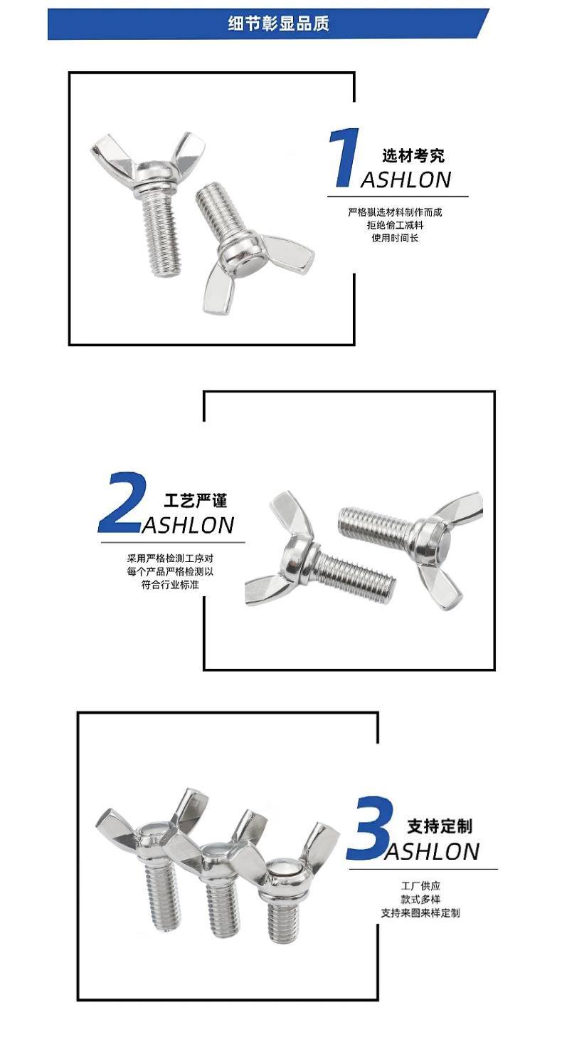 304 Tornillos de Mariposa Acero Inoxidable Tornillos de Mariposa Tornillos de Mano de Mariposa Pernos Din316 Tornillos de Cuerno de Lingote