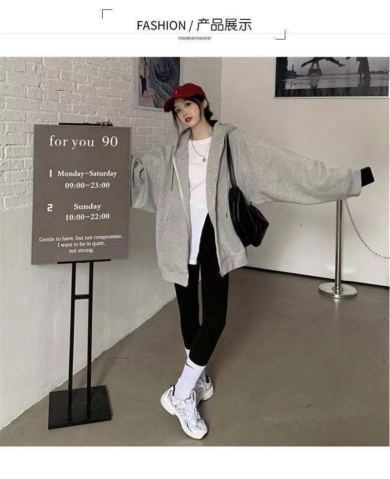Sudadera con capucha holgada de estilo coreano para mujer, abrigo con cremallera, chaqueta de comercio exterior, venta al por mayor, color gris, nueva primavera