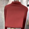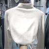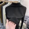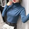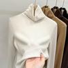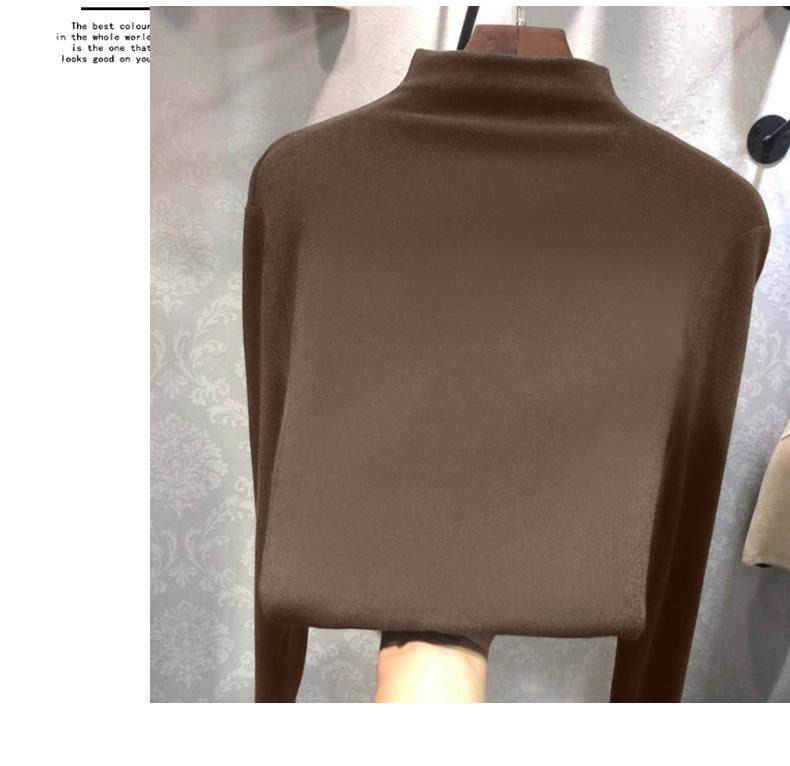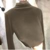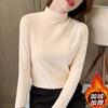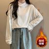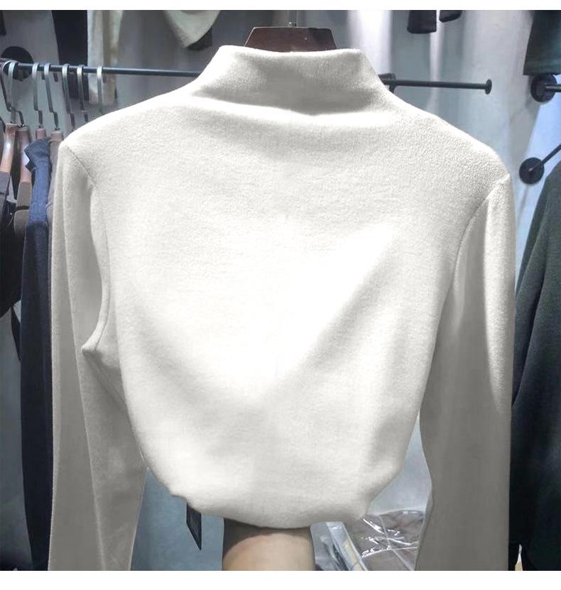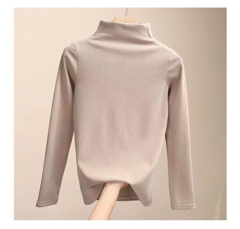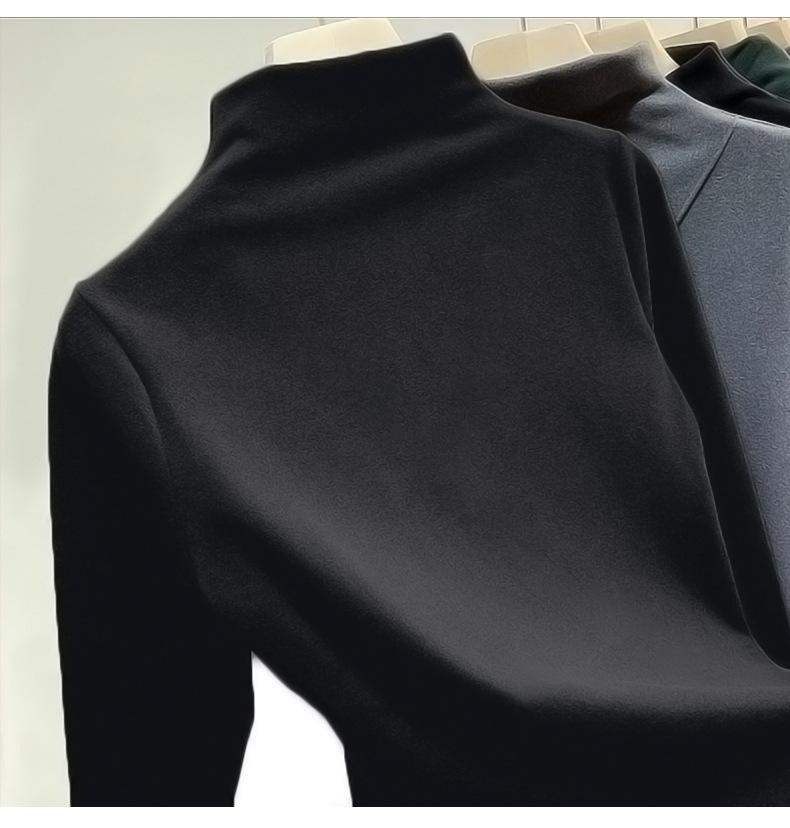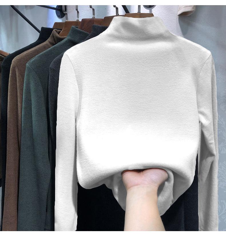 Camiseta de manga larga de color liso para mujer, ajustada, cálida, con cuello medio alto y lijado de terciopelo de doble cara, para otoño e invierno.