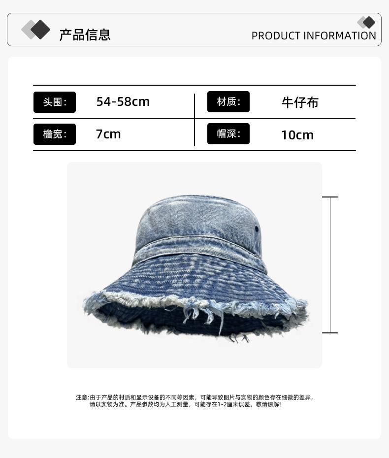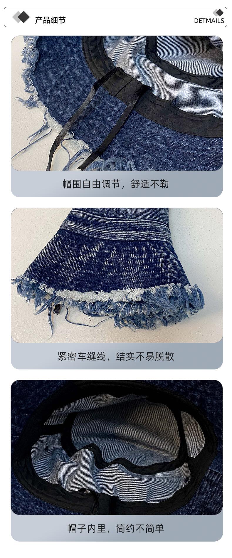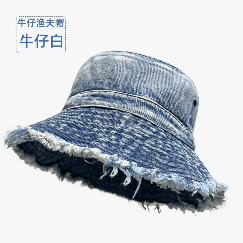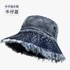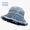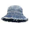 Sombrero de pescador de mezclilla de estilo coreano para verano, parasol versátil, sombrero de cubo de mezclilla lavado y desgastado con borde crudo, sombrero de pescador para deportes al aire libre, sombrero de mujer al por mayor