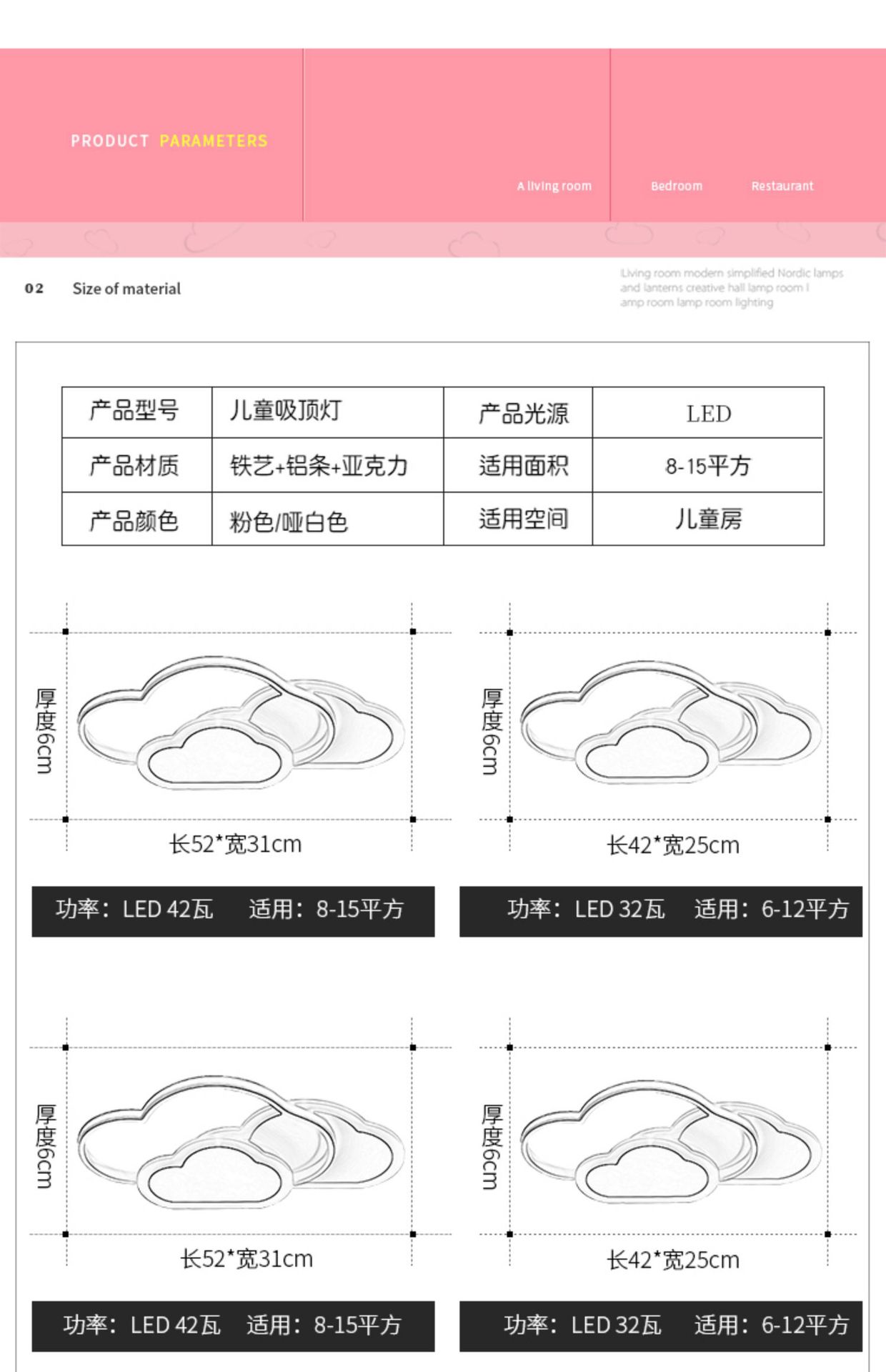 White cloud-50cm45w, Pink cloud-50cm45w, Bottom luminous white cloud-50cm24w, Bottom luminous pink cloud-50cm2...