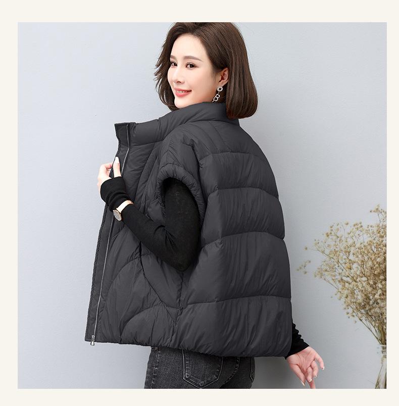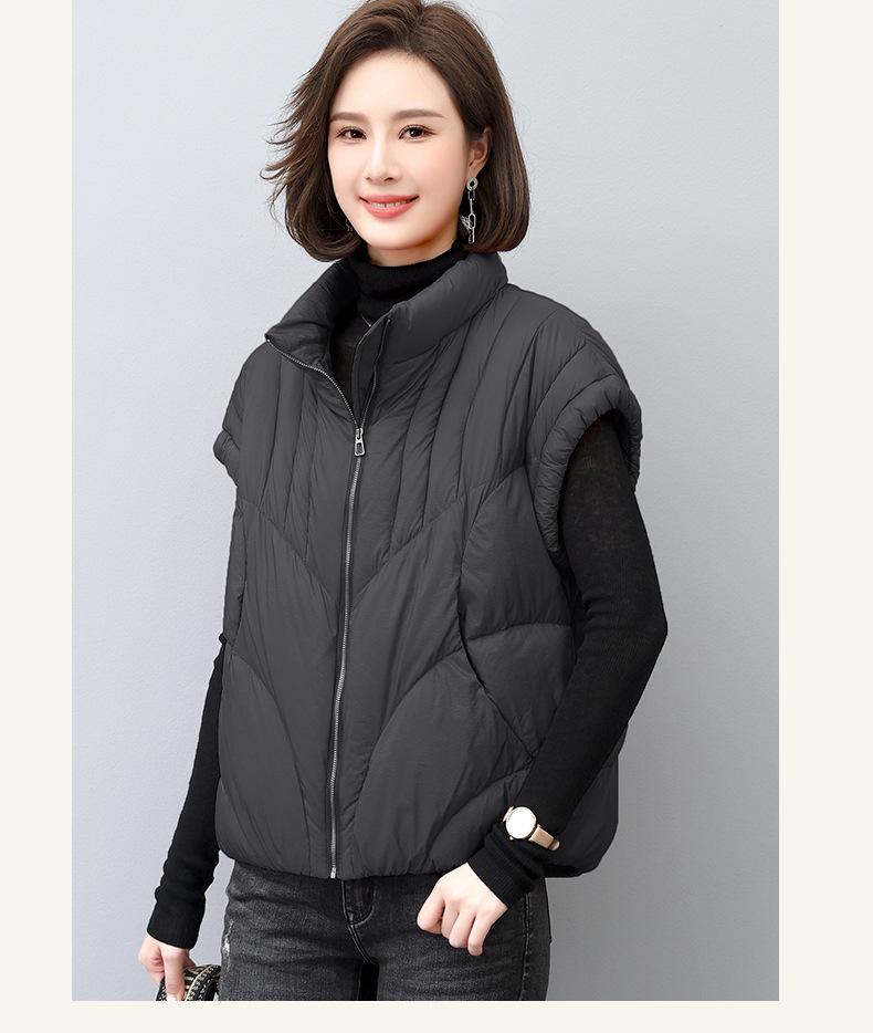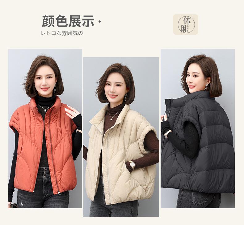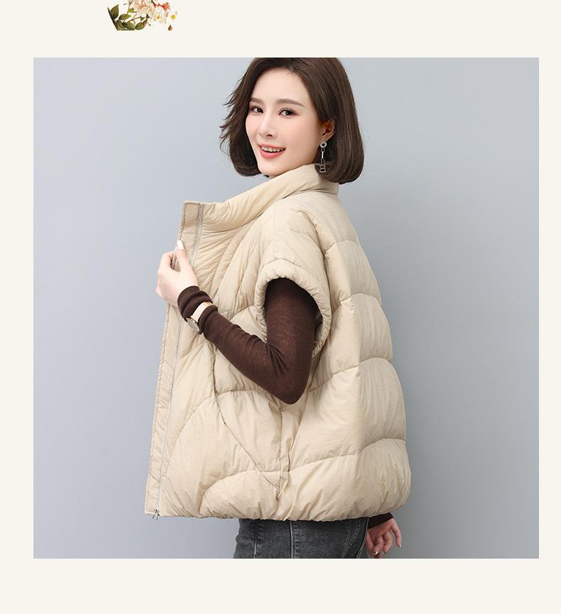 Chaleco de plumón informal de talla grande, nuevo invierno 2024, cuello de plumón de pato blanco de 90 pulgadas, chaleco de plumón, chaleco de media manga con hombros descubiertos.