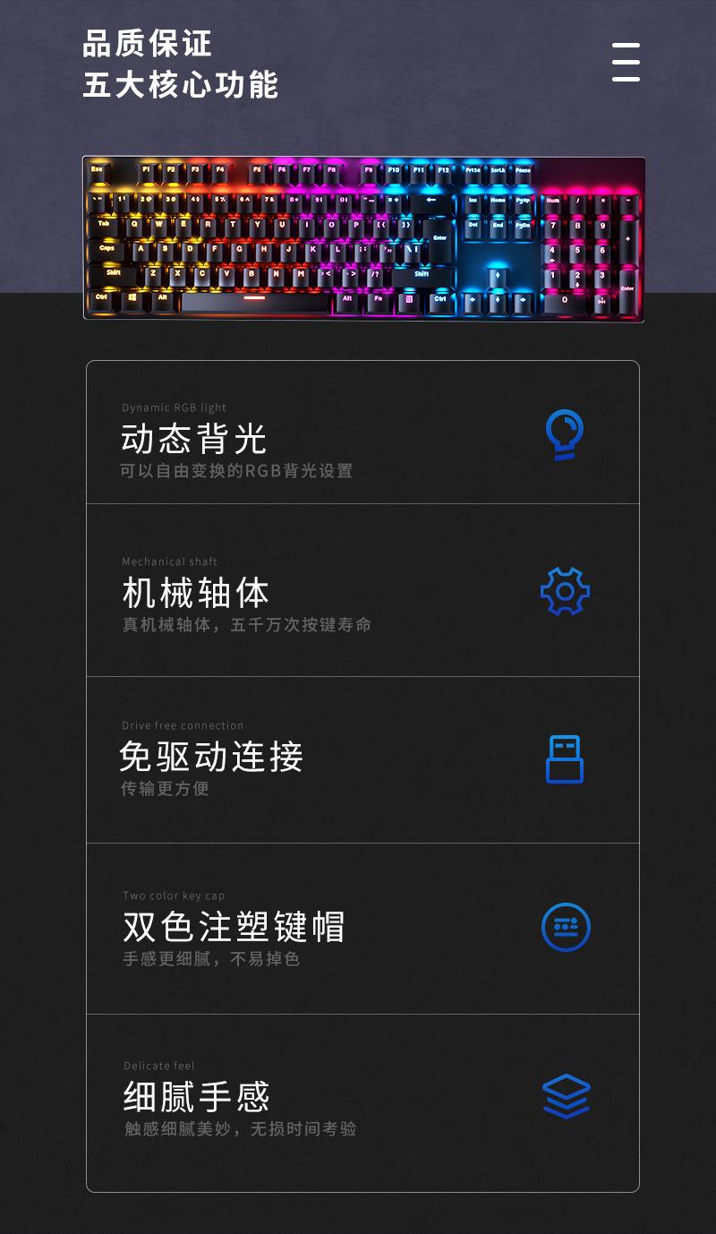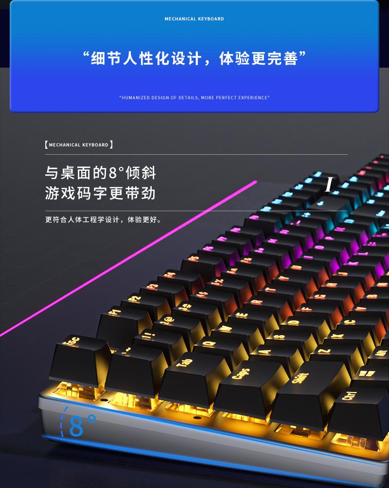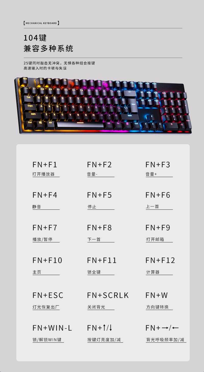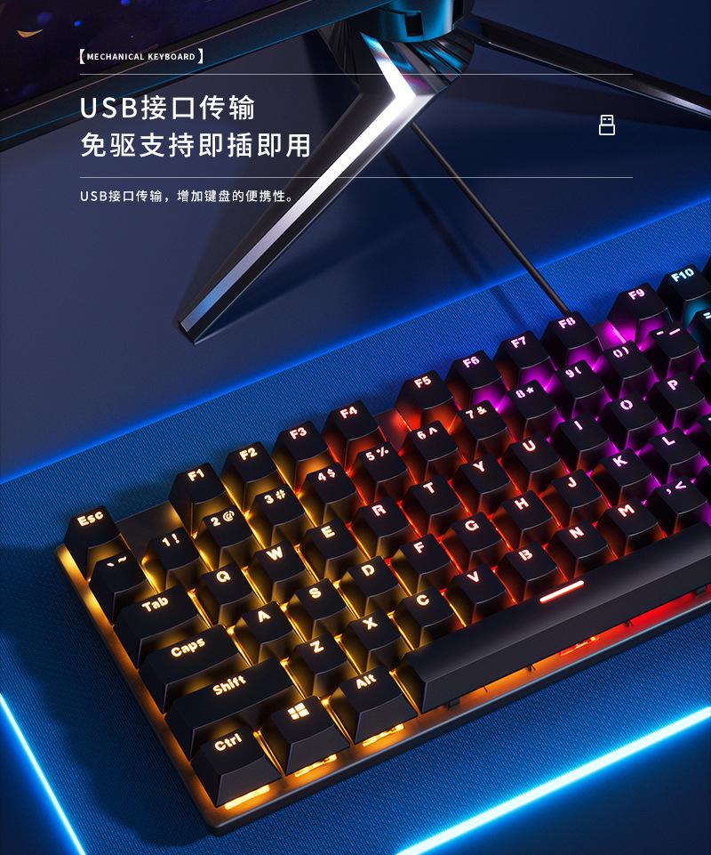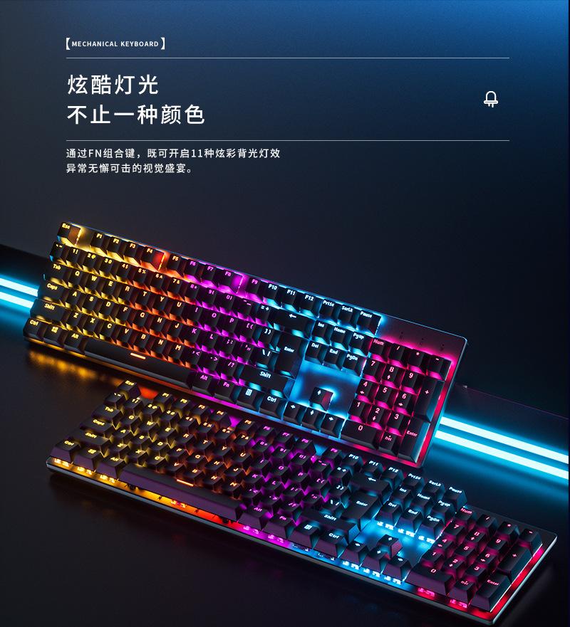 Teclado transfronterizo con cable USB para juegos, tacto mecánico, teclado para portátil luminoso y colorido.