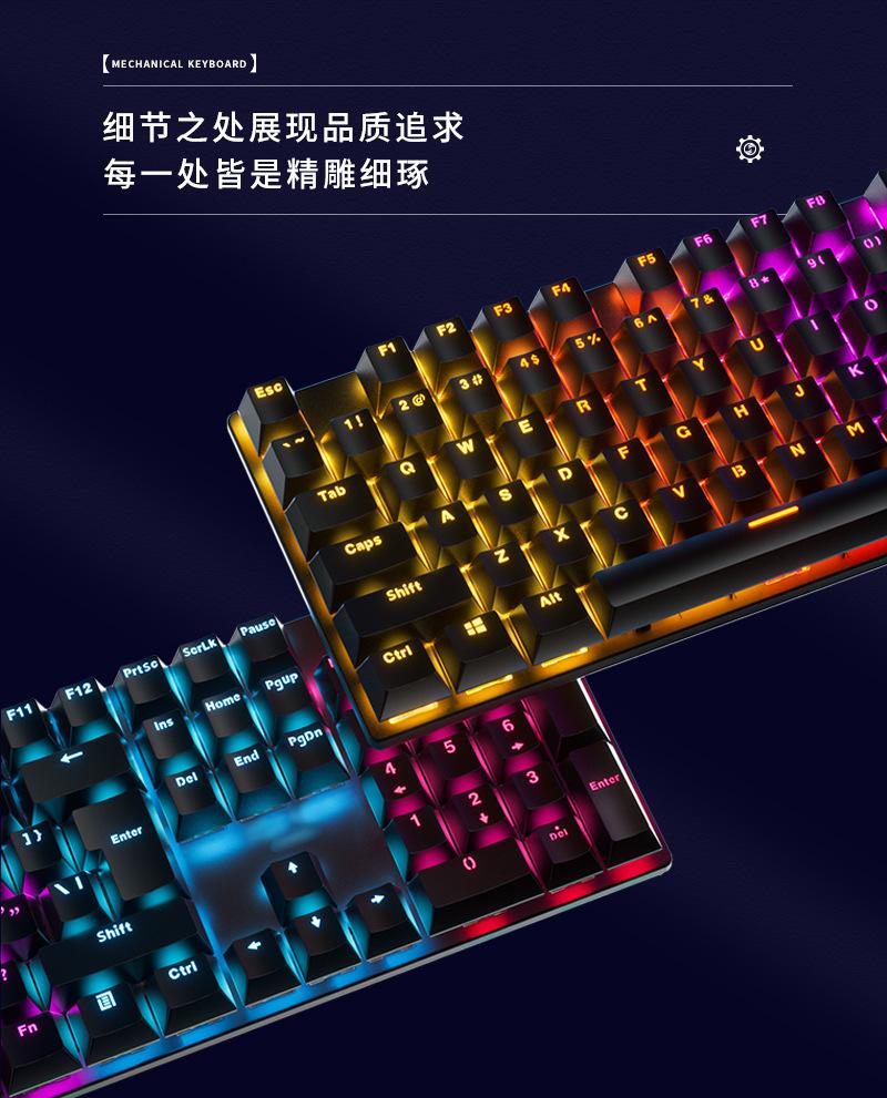 Teclado mecánico de 104 teclas al por mayor, teclado mecánico RGB para juegos de deportes electrónicos con cable, eje verde, teclado USB luminoso universal