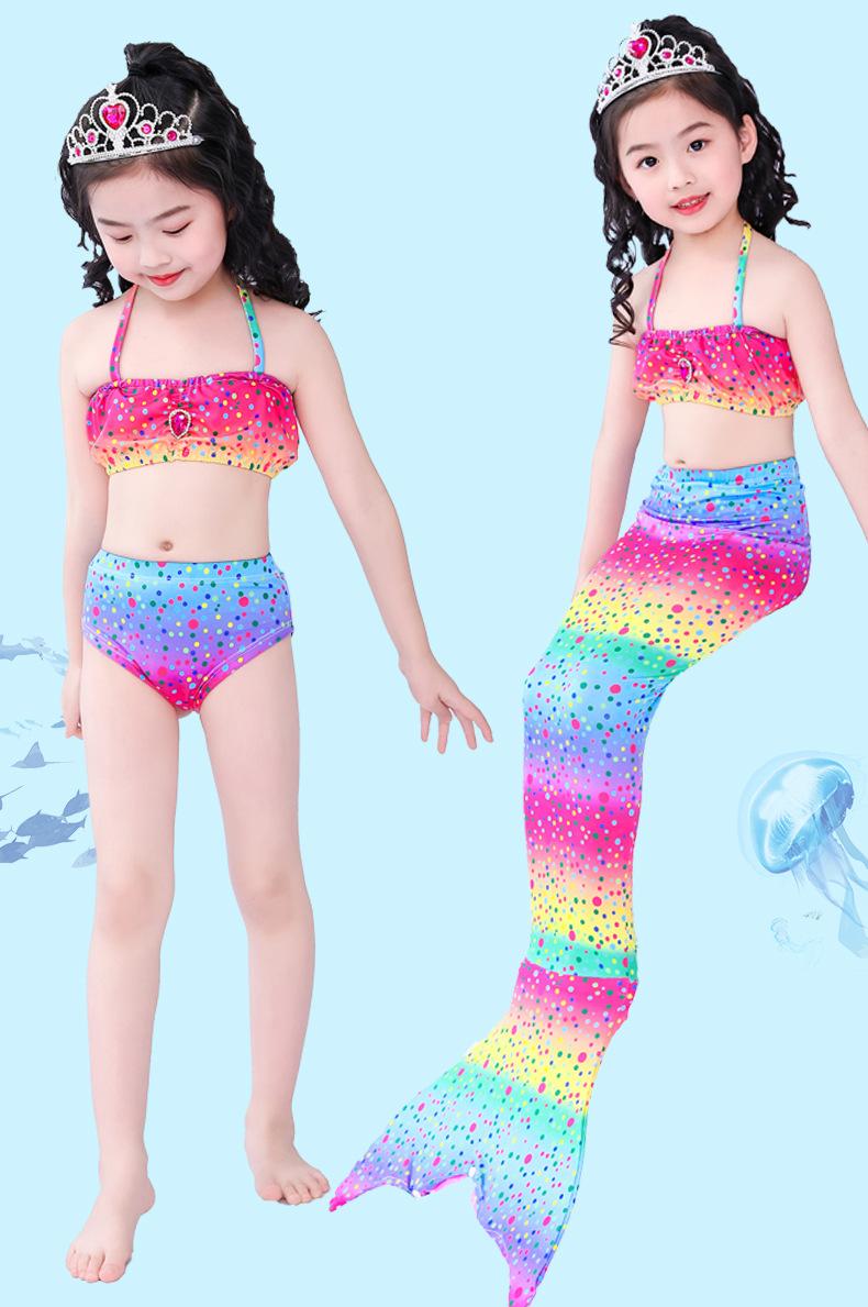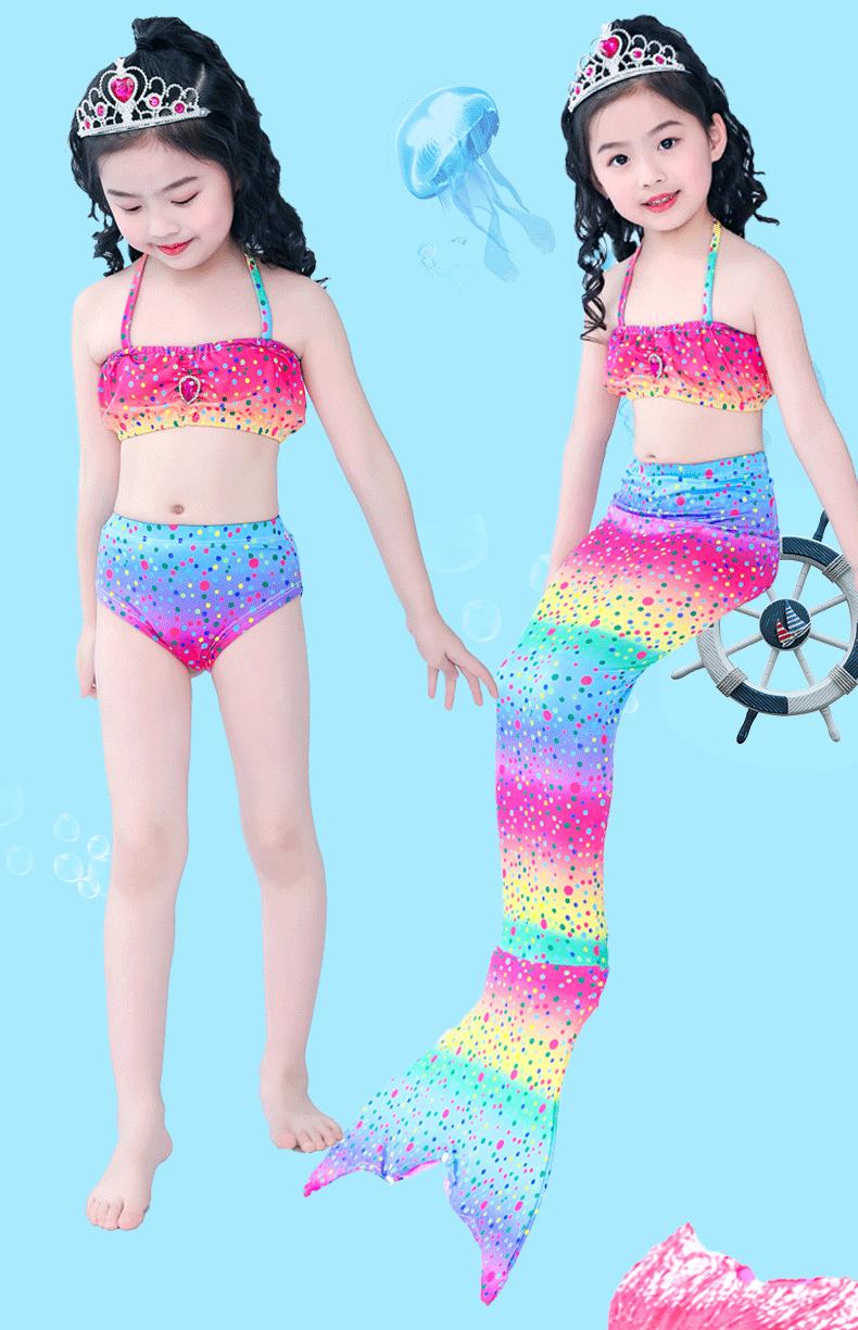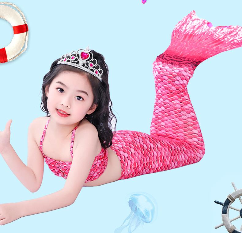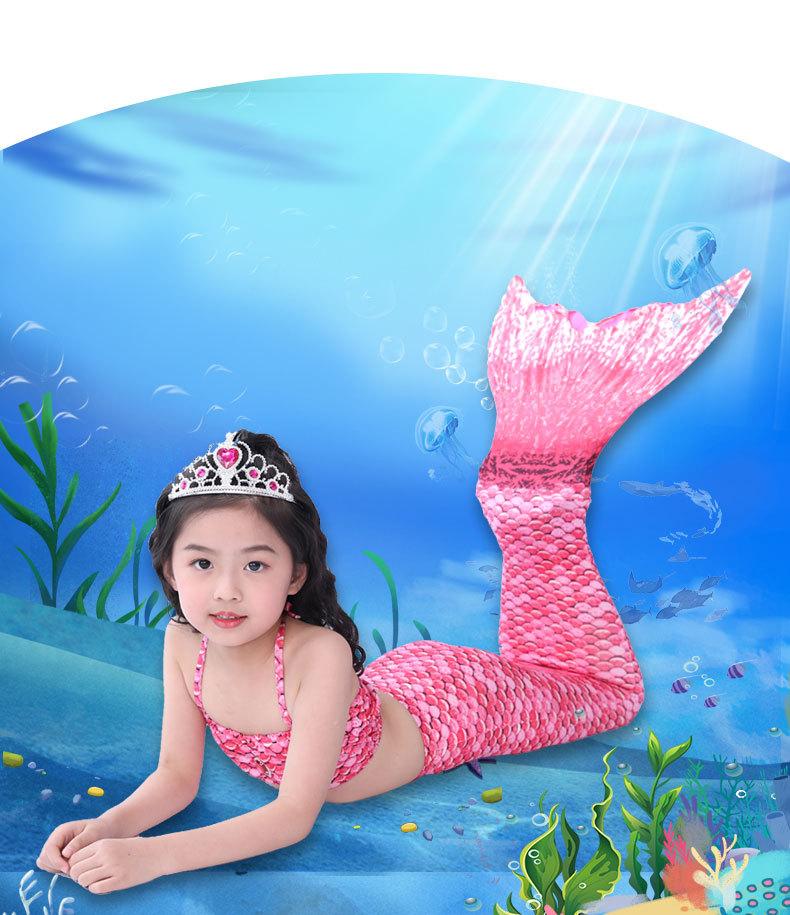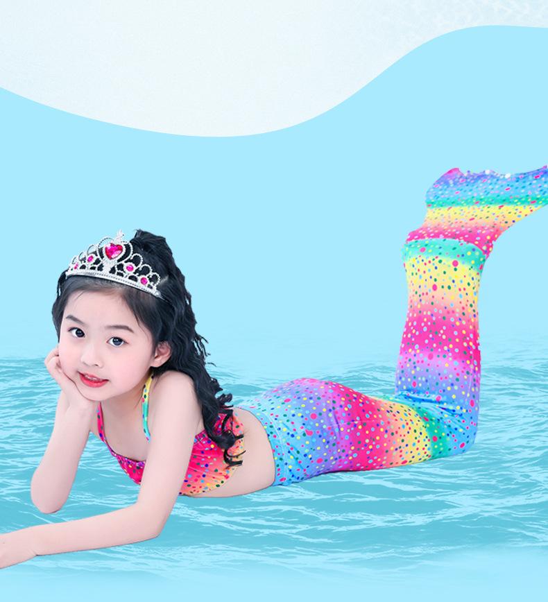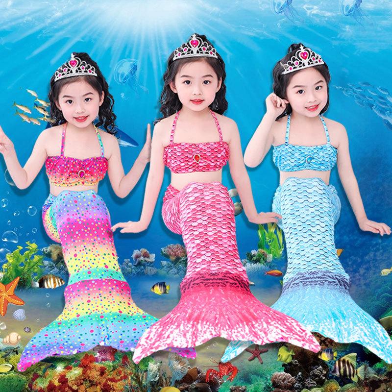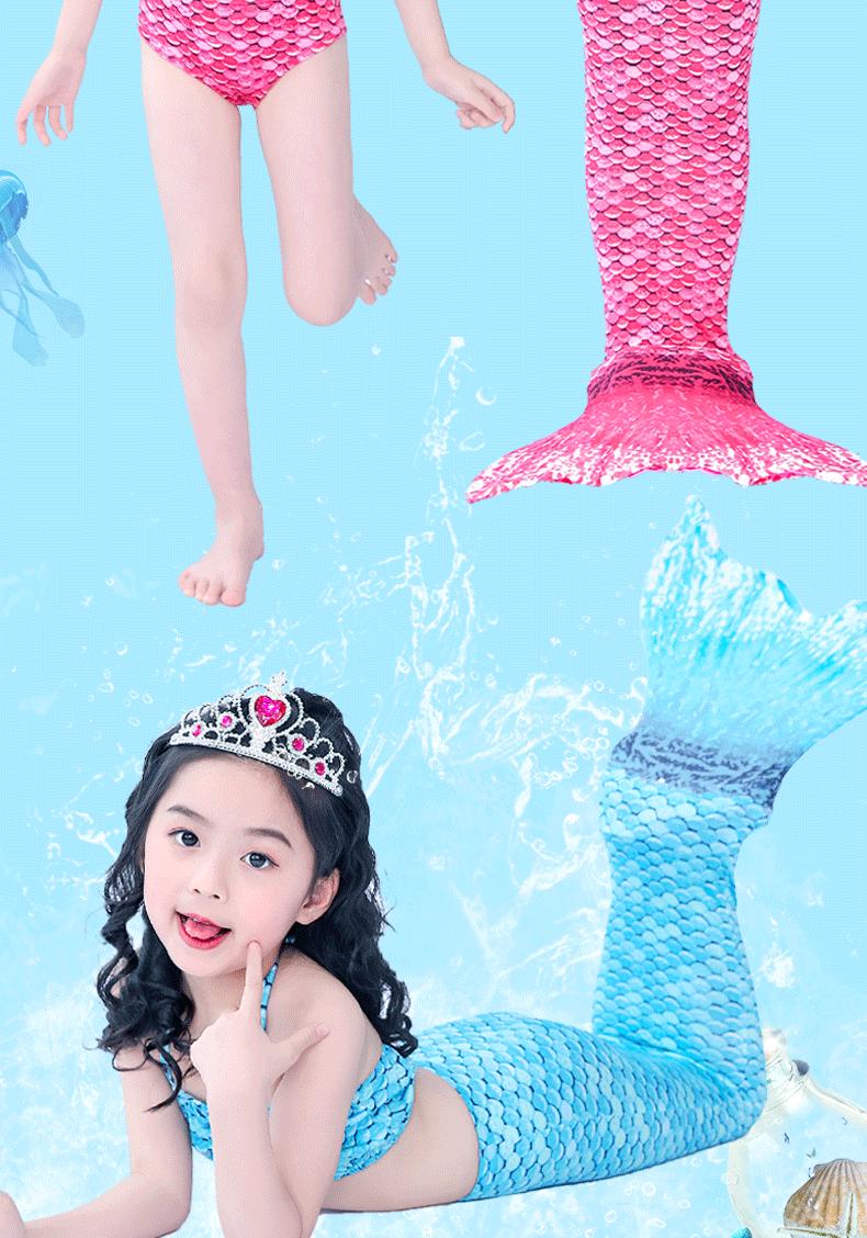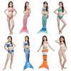 Traje de baño de sirena para niñas, conjunto de tres piezas con aletas de cola y vestido de cuatro piezas