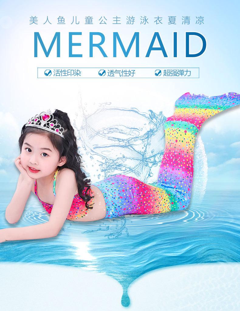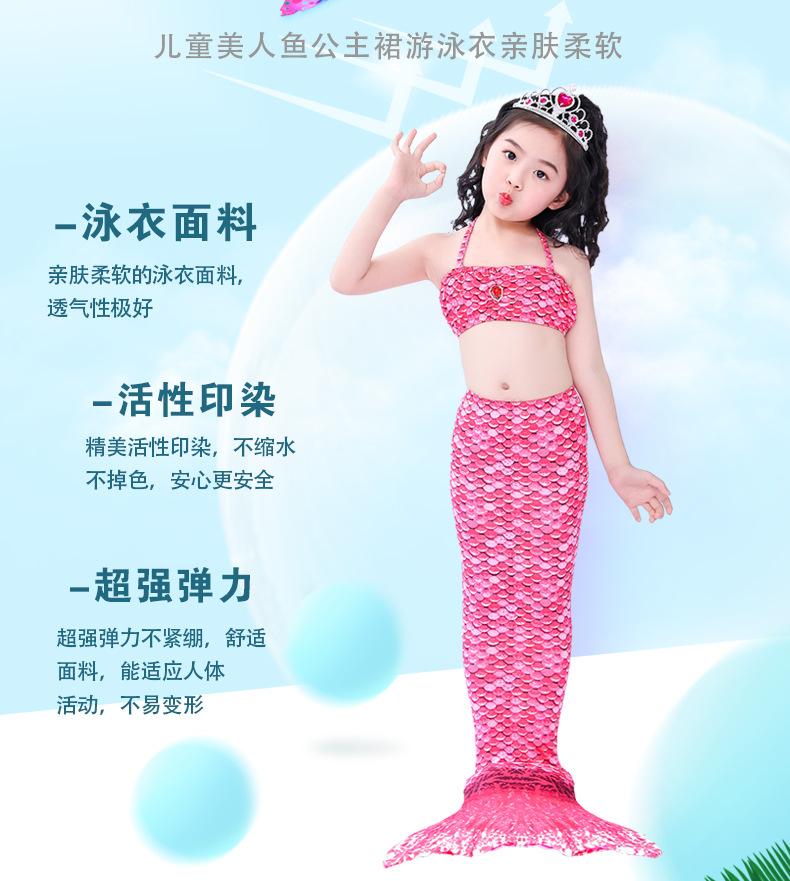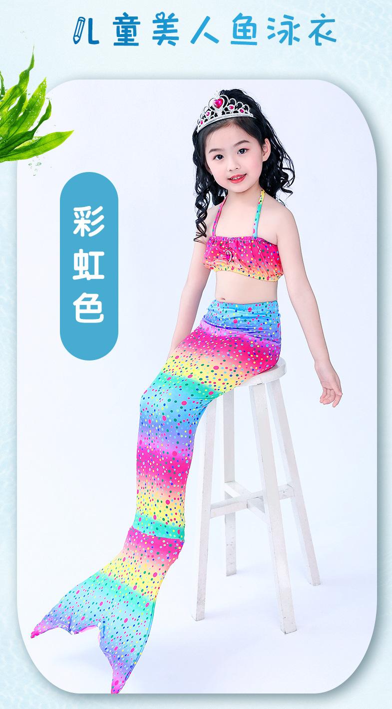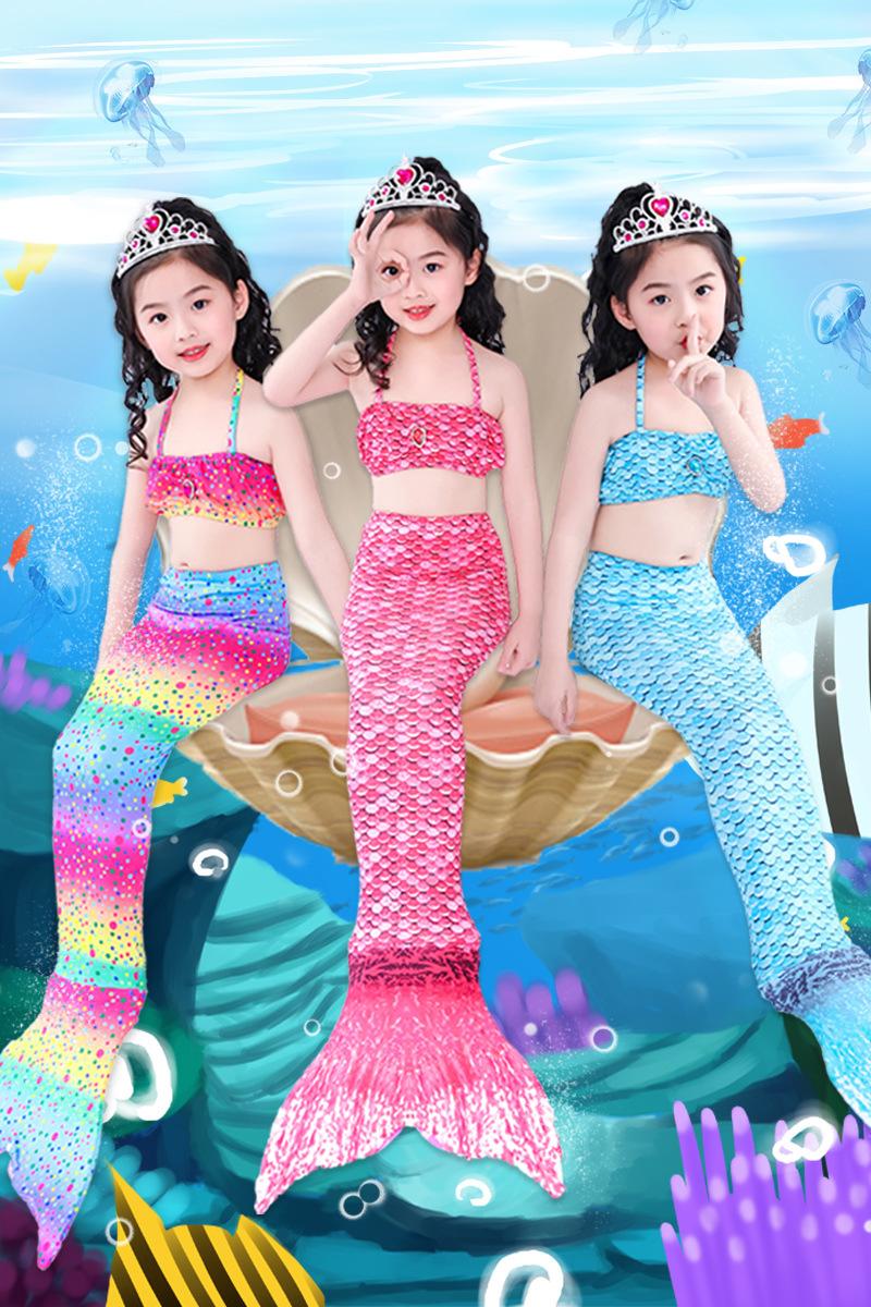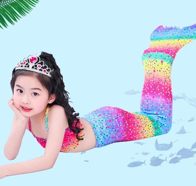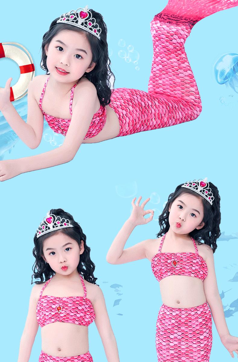 Traje de baño de sirena para niñas, conjunto de tres piezas con aletas de cola y vestido de cuatro piezas