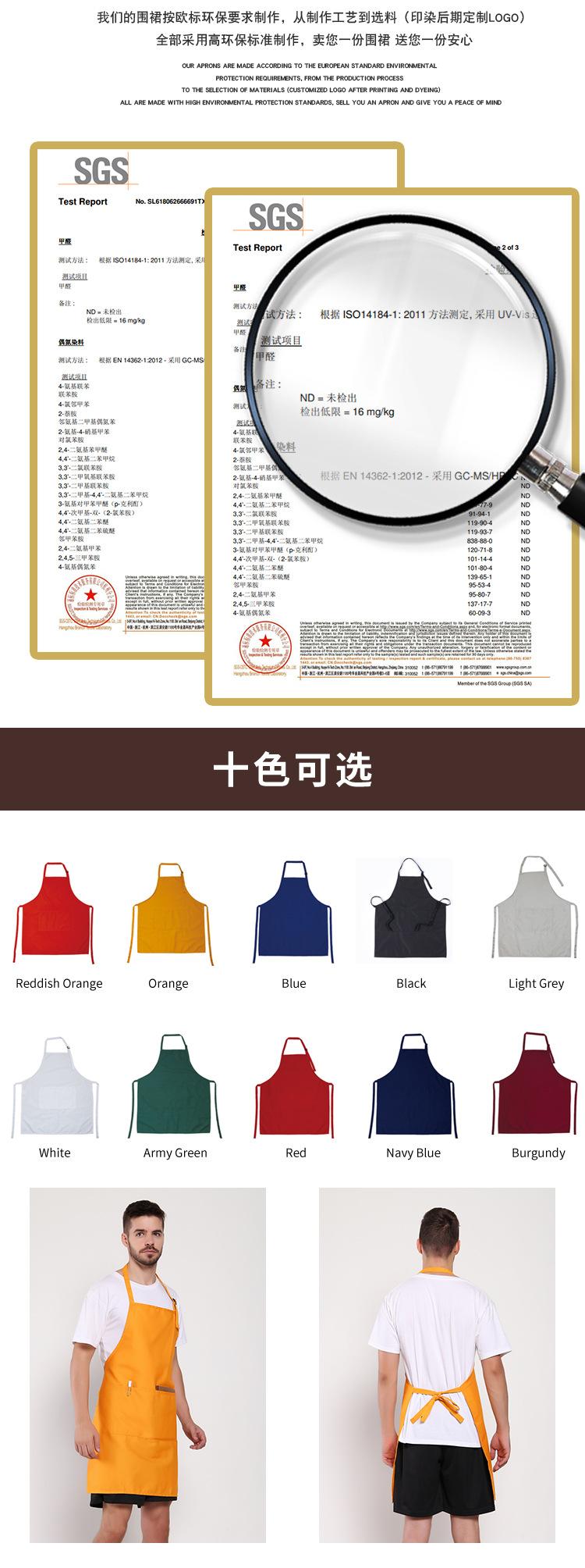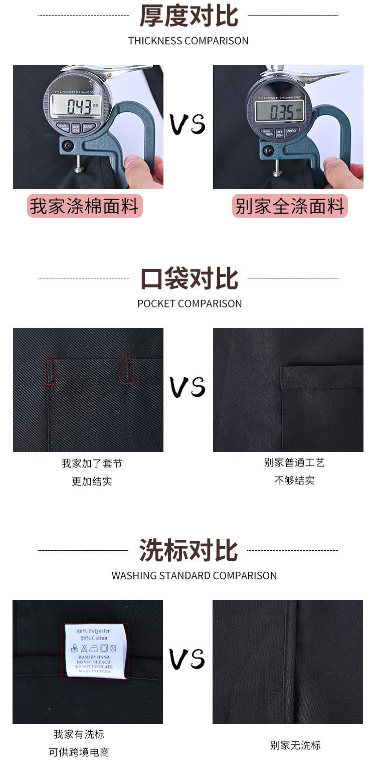 Peso del delantal: aproximadamente 180g, con etiqueta lavable, empaque OPP