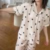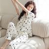 Pijamas para Mujer Verano Nuevo Estilo Seda de Hielo Lindo Lunares Manga Corta Traje Francés Delgada Imitación Seda Ropa para el Hogar Venta al por Mayor
