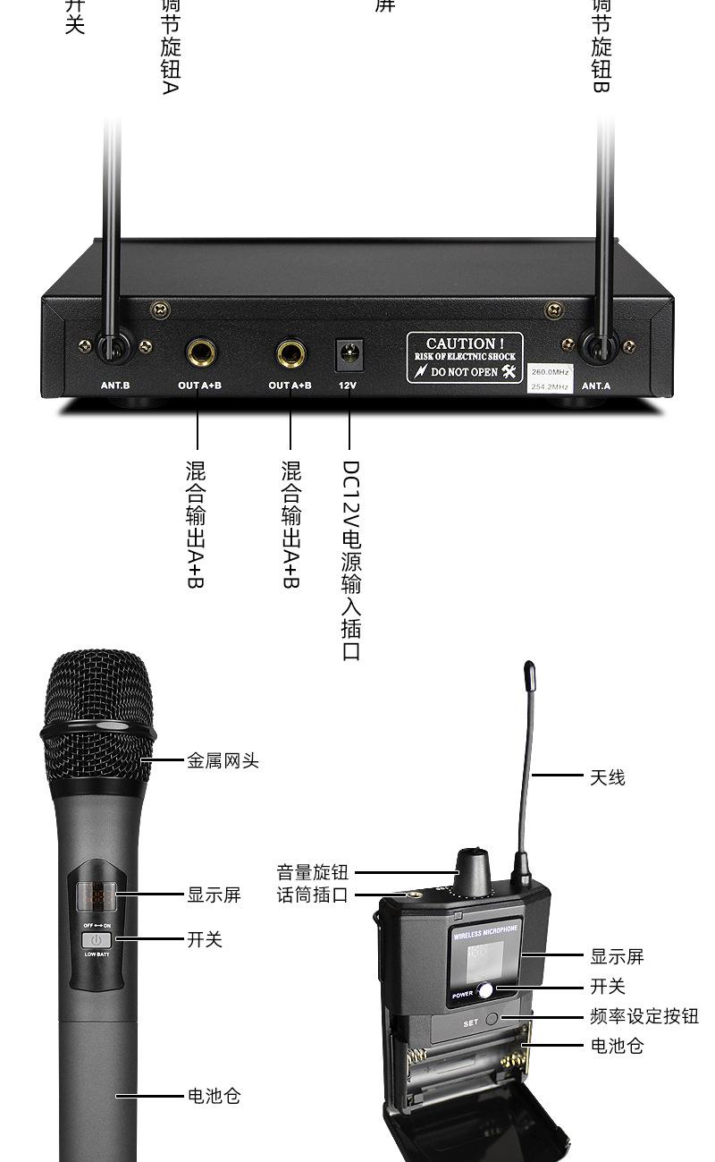 Micrófono Inalámbrico Mu-888, Uno a Dos, Micrófono de Mano Profesional, Receptor de Micrófono Inalámbrico para Karaoke