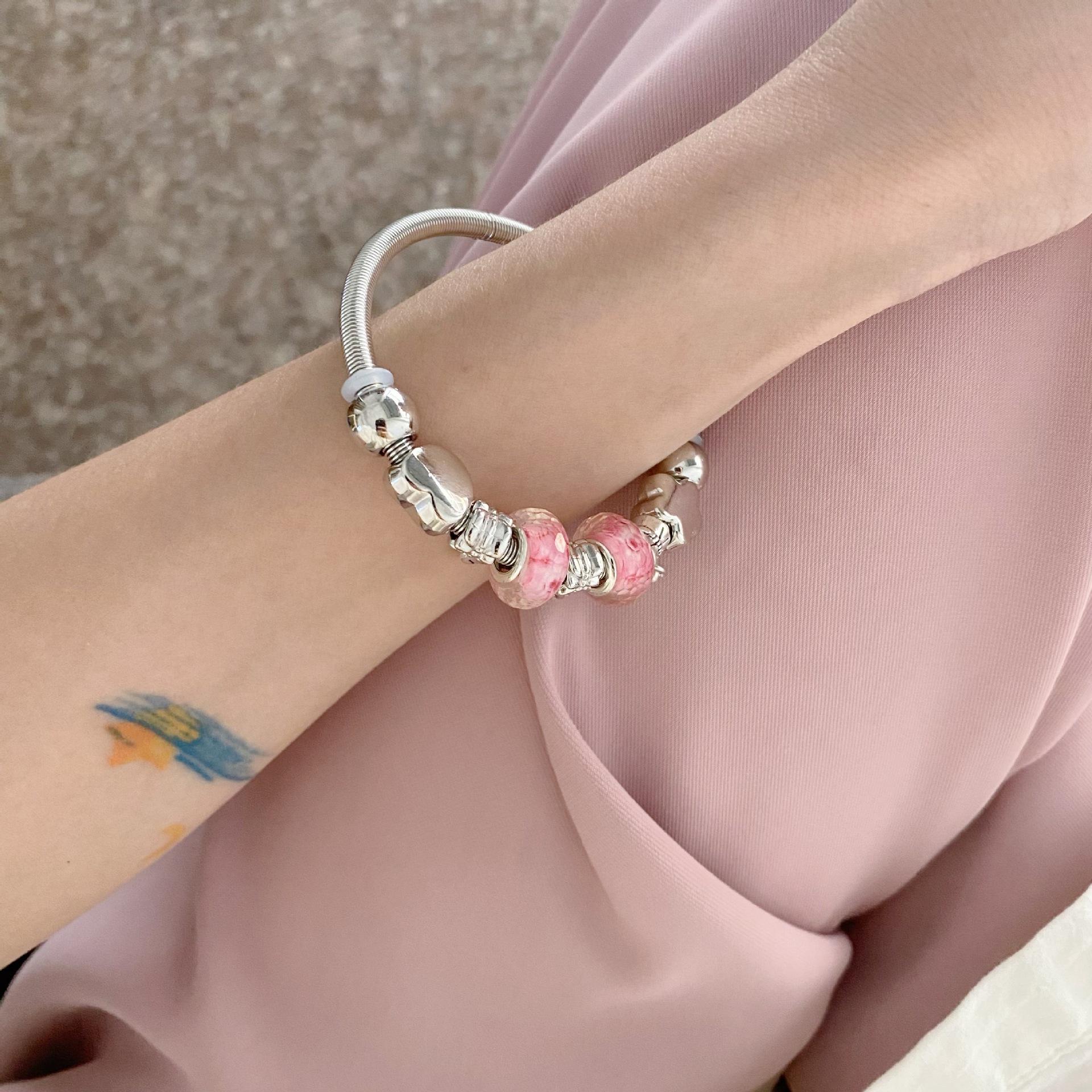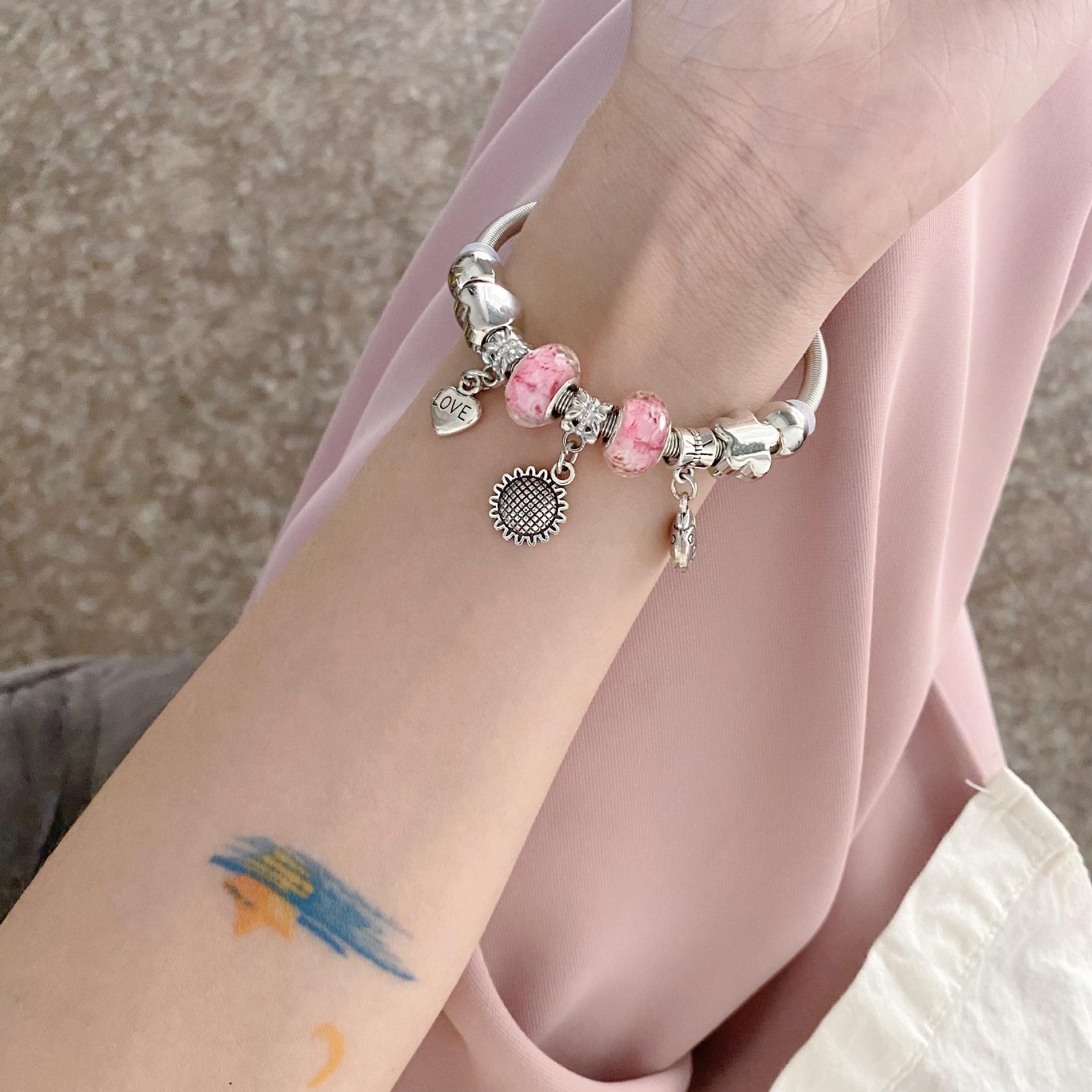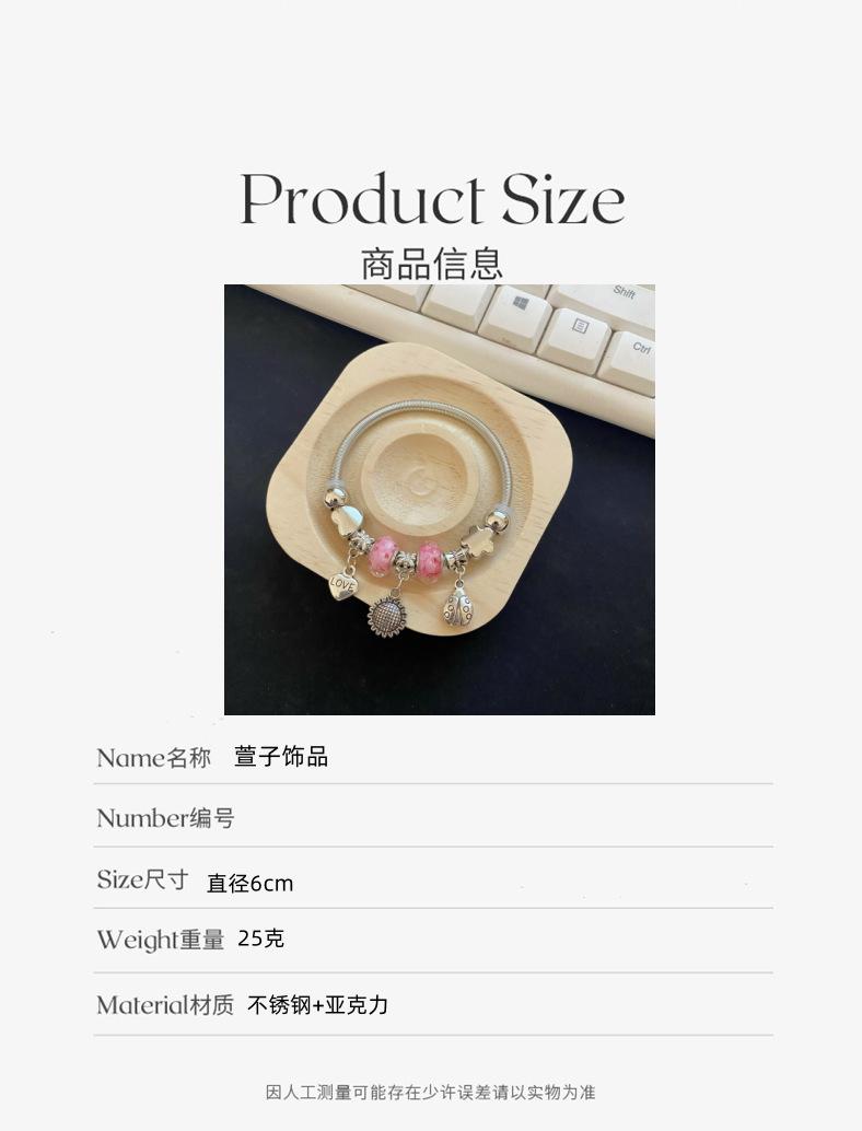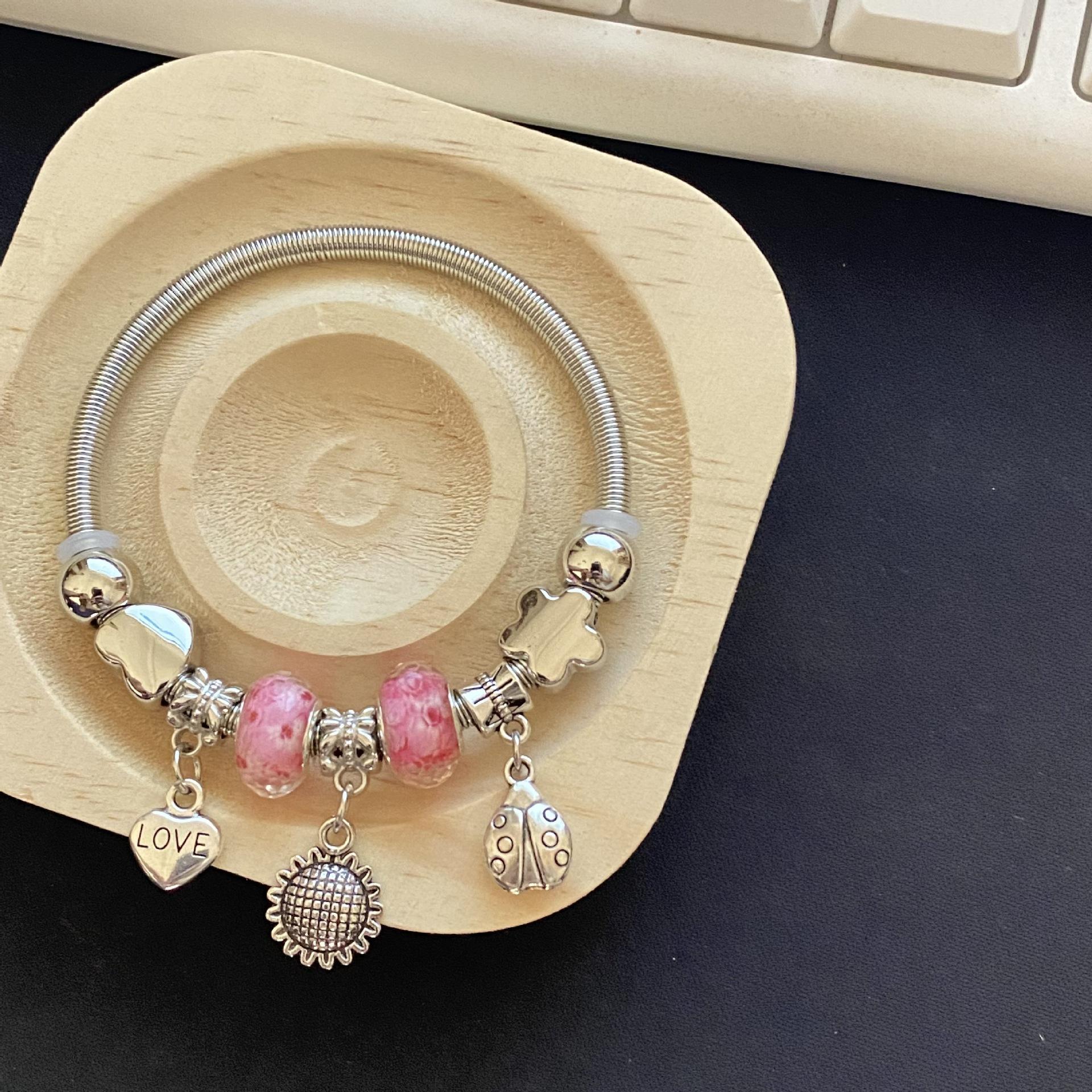 Pulsera Simple de Cuentas con Colgante de Corazón Rosa Estilo Coreano para Mujer, Girasol Estrella Cuentas de Vidrio Nicho Pulsera Retro para Mujer