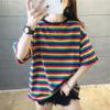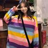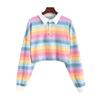 Sudadera con cuello polo arcoíris transfronterizo para mujer, nueva camiseta coreana de manga corta y larga para primavera y otoño de 2023