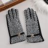 Guantes de terciopelo cálidos a prueba de viento para invierno con hebilla a cuadros para mujer, guantes de cinco dedos para montar al aire libre con pantalla táctil
