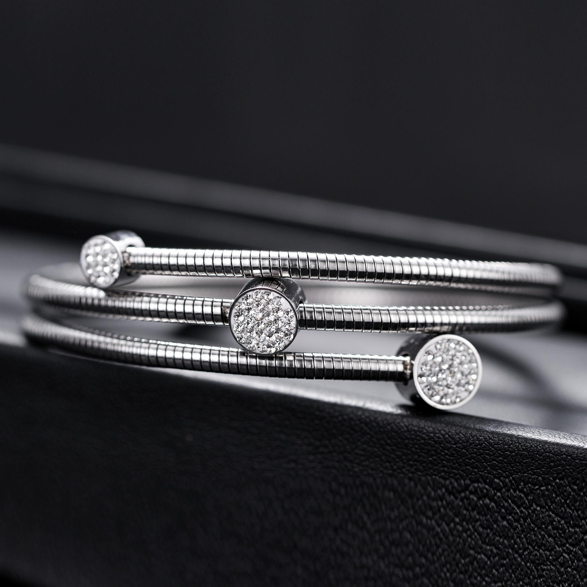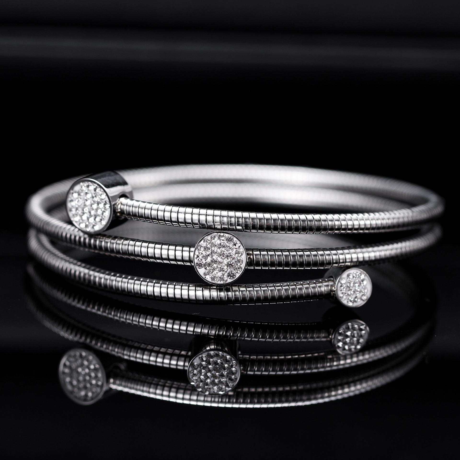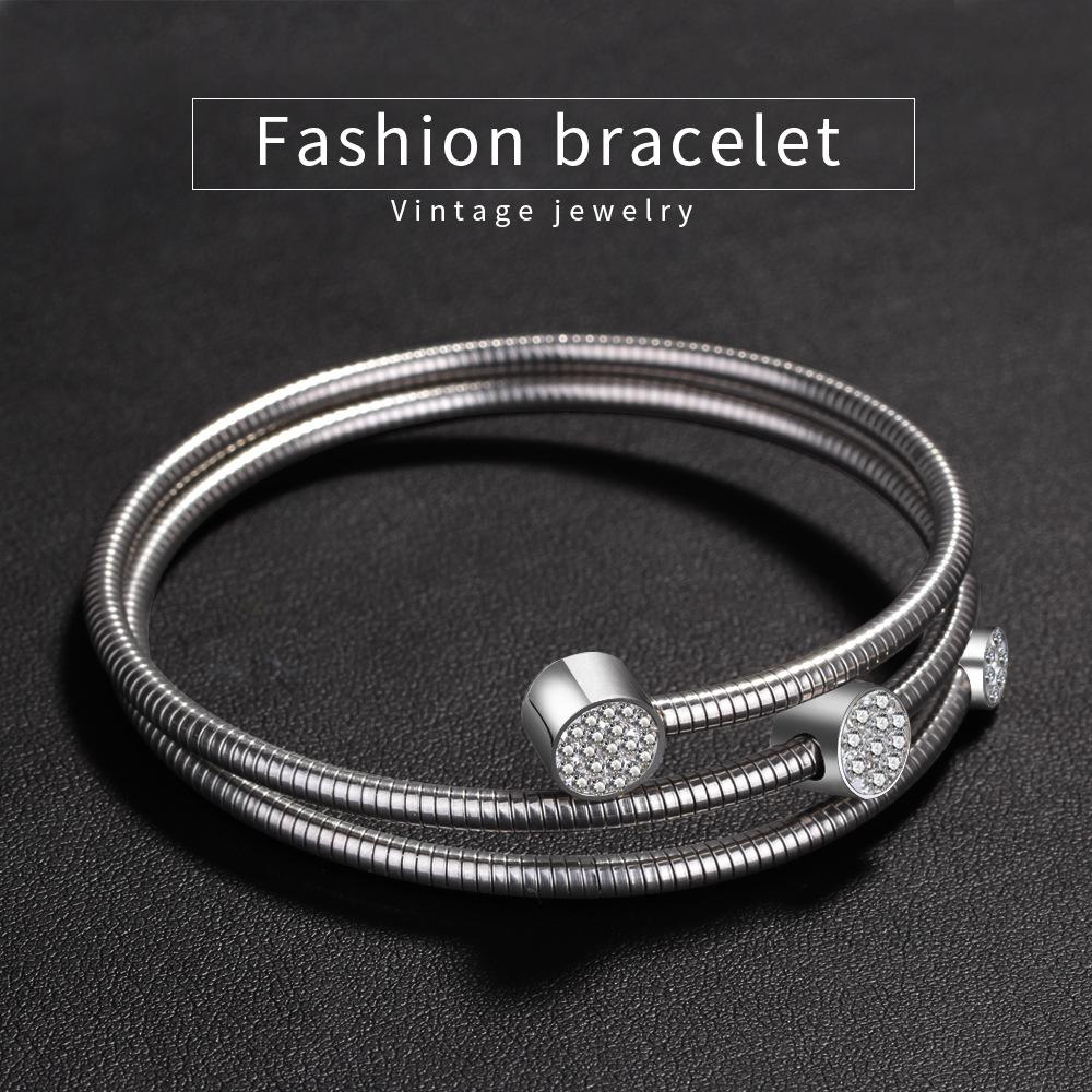 Pulsera de Cadena de Hueso de Serpiente de Acero Inoxidable Simple de Moda de Venta Nueva Caliente de Amazon Europeo y Americano con Diamante de 3 mm de Tres Redondos al por Mayor para Mujeres