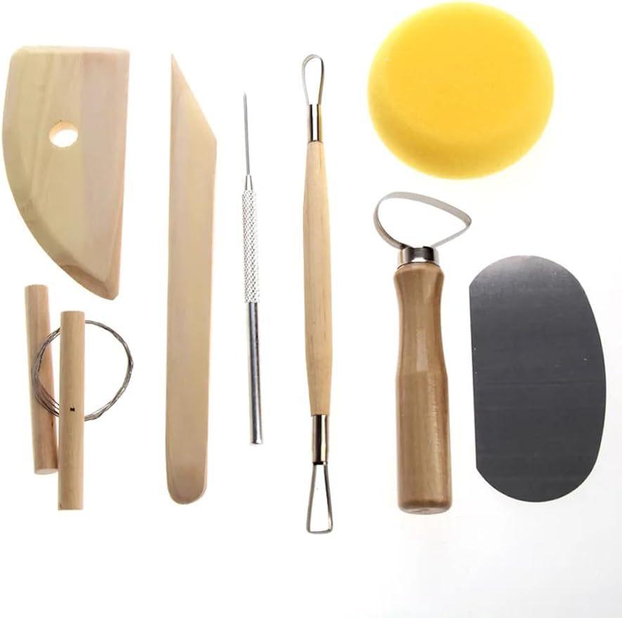 Juego de 8 herramientas para esculpir arcilla de madera, herramientas de cerámica artística, herramientas para esculpir arcilla, herramientas para principiantes, herramientas de bricolaje hechas a mano, cruz