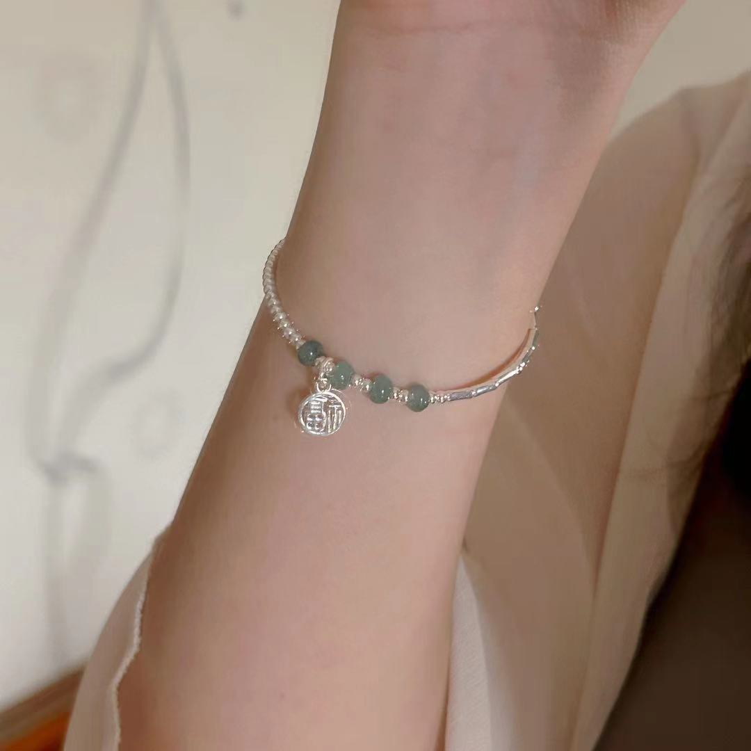 Pulsera de plata, nueva cadena de bambú hecha a mano de estilo chino, Lucky Brand, pulsera de estilo nacional moderno con nicho que combina con todo.