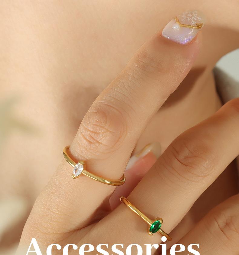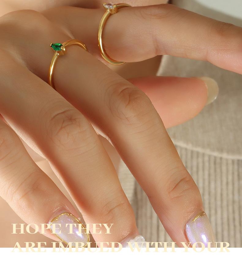 A425-Golden White zircon ring, A425-gold green zircon ring