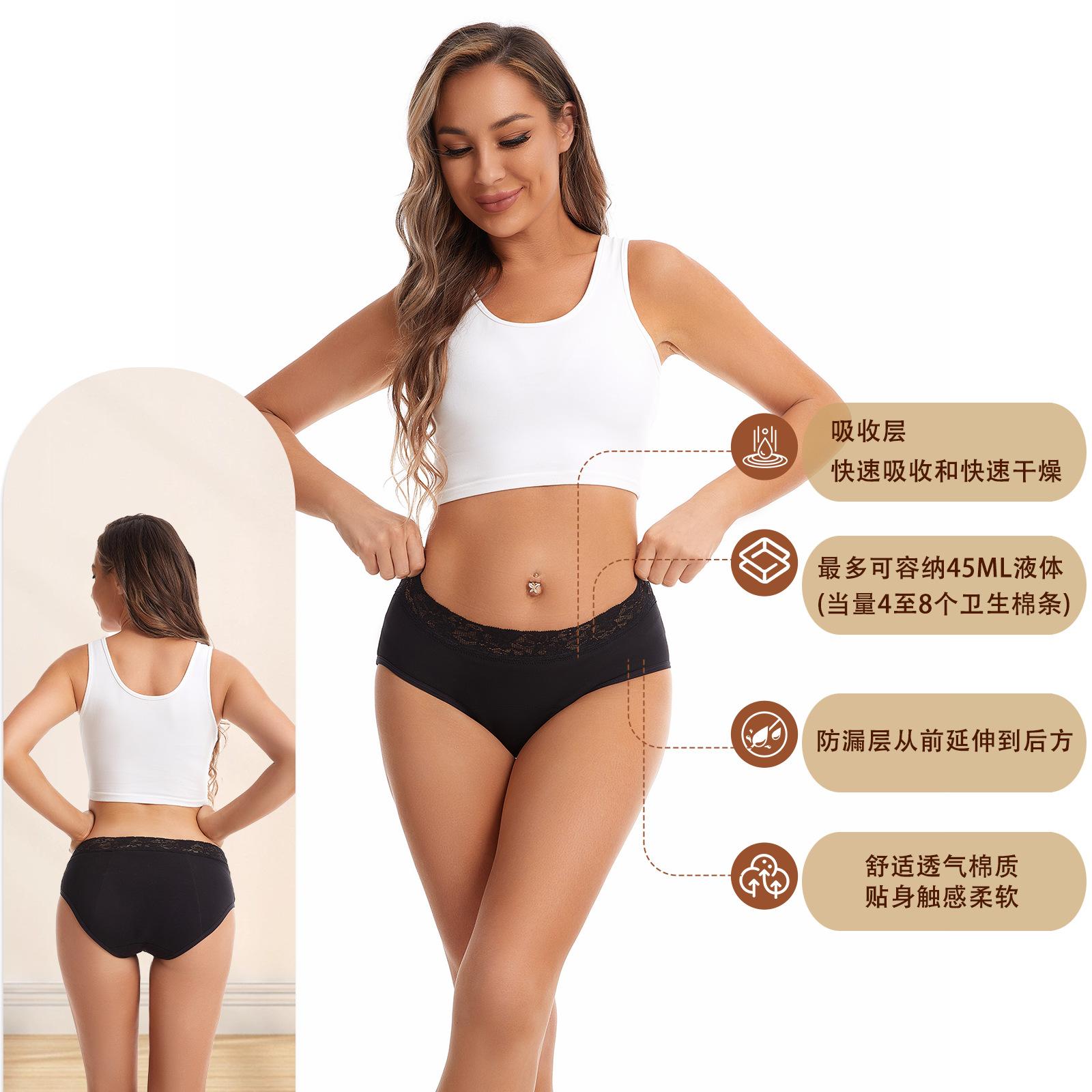 Ropa interior fisiológica de encaje de comercio exterior transfronterizo para mujer, talla grande, algodón, cuatro capas, compresa sanitaria a prueba de fugas, ropa interior para tía