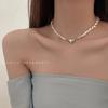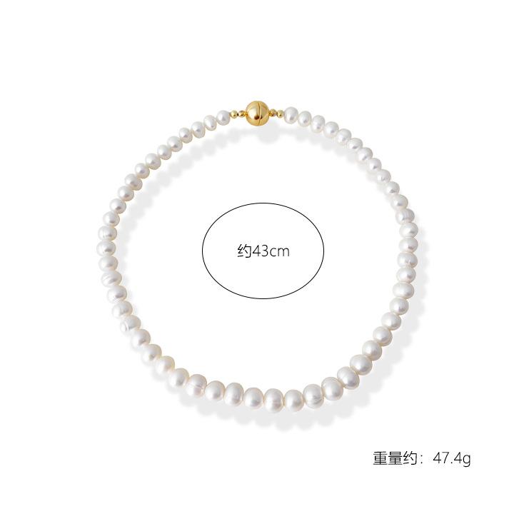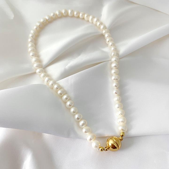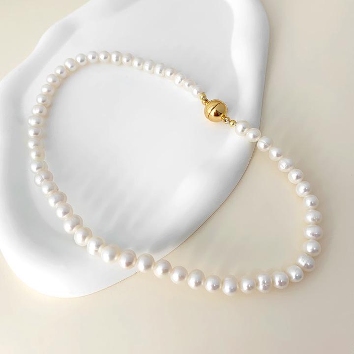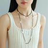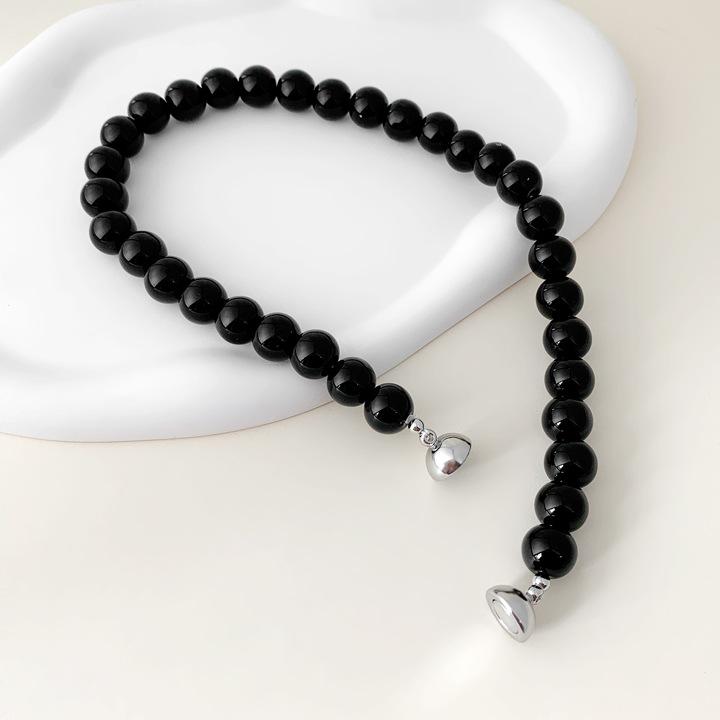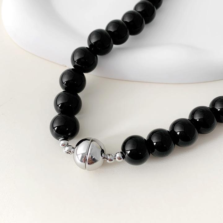 Collar Minimalista de Diseño Coreano Sencillo de Ágata Negra con Cuentas Cadena Clavicular de Perla de Agua Dulce para Mujer Cadena para Suéter