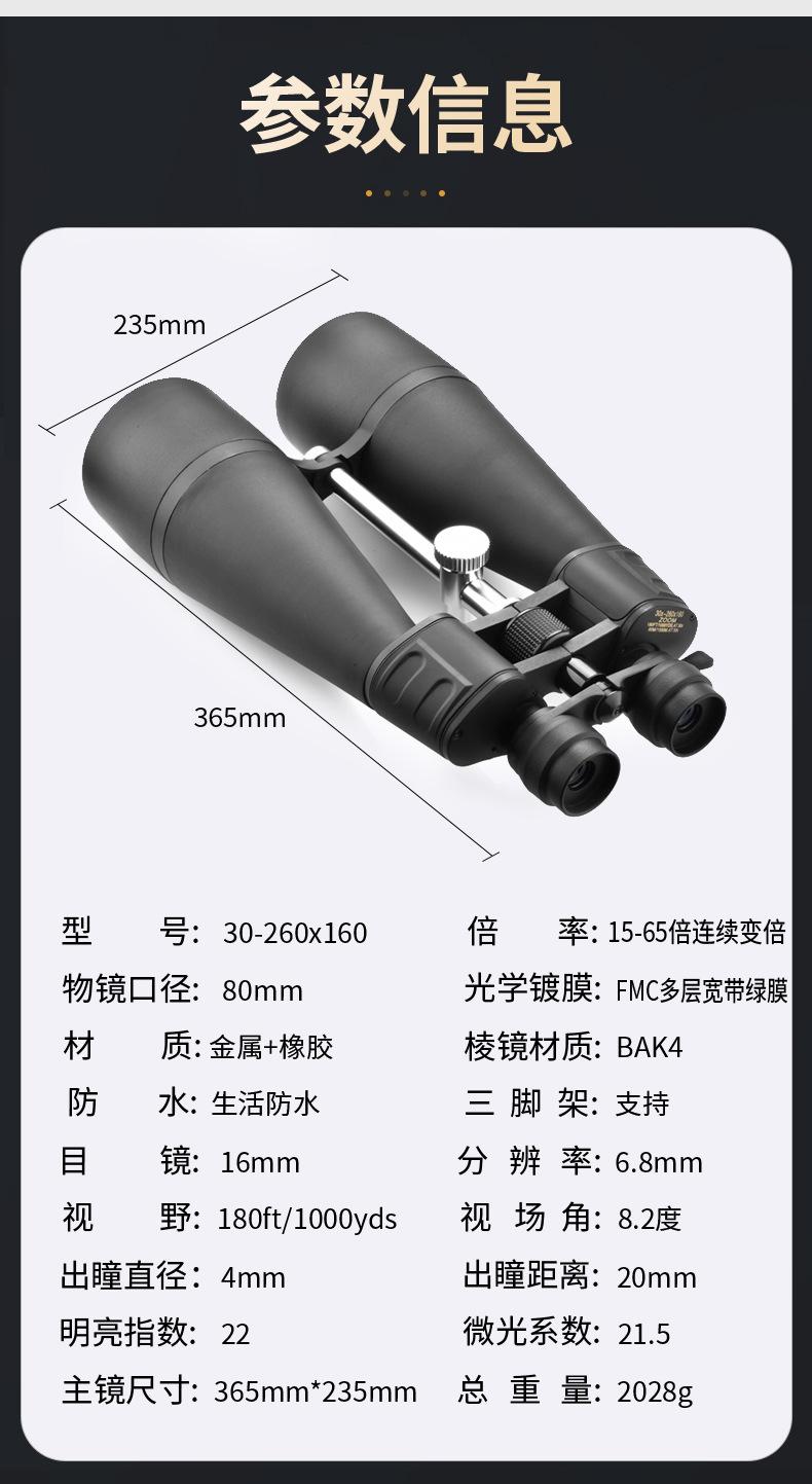 Telescopio de doble tubo con zoom 30-260*160 de alta potencia HD 80, telescopio de un solo tubo para observación nocturna Hornet